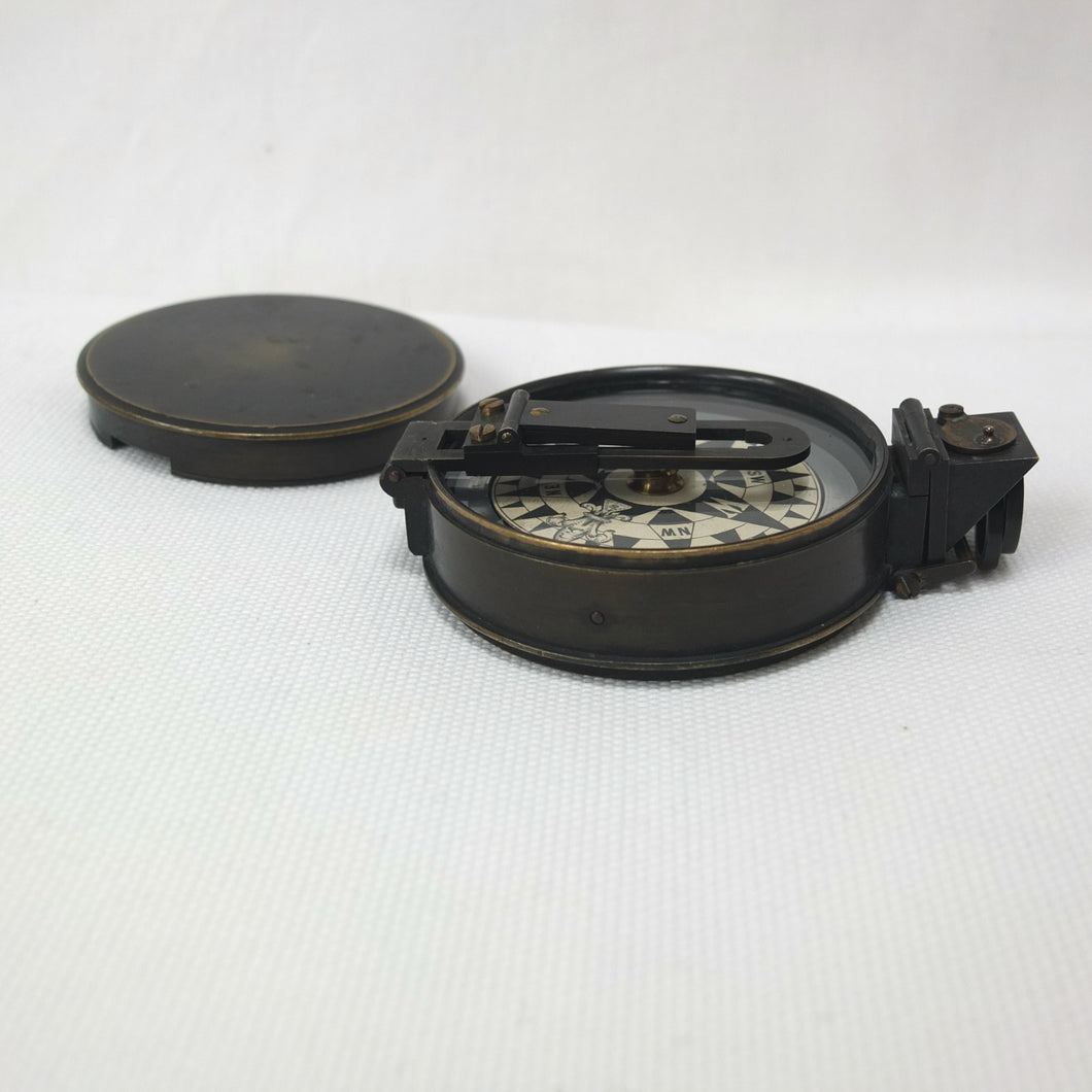 In very good condition and full working order. The compass finds North well. The brass case has some wear to the original bronzed finish. The dial, glass, prism and sights are all in very good condition.