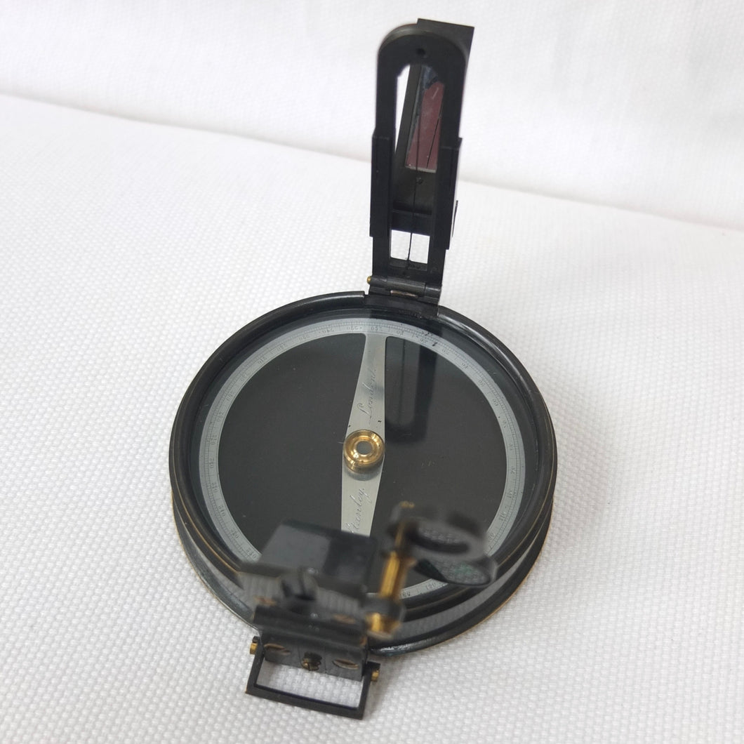 The compass is in excellent condition, full working order and finds North very well. The original blackened finish of the case is in excellent condition. The glass, prism, sights, filters, and compass card are in excellent condition.