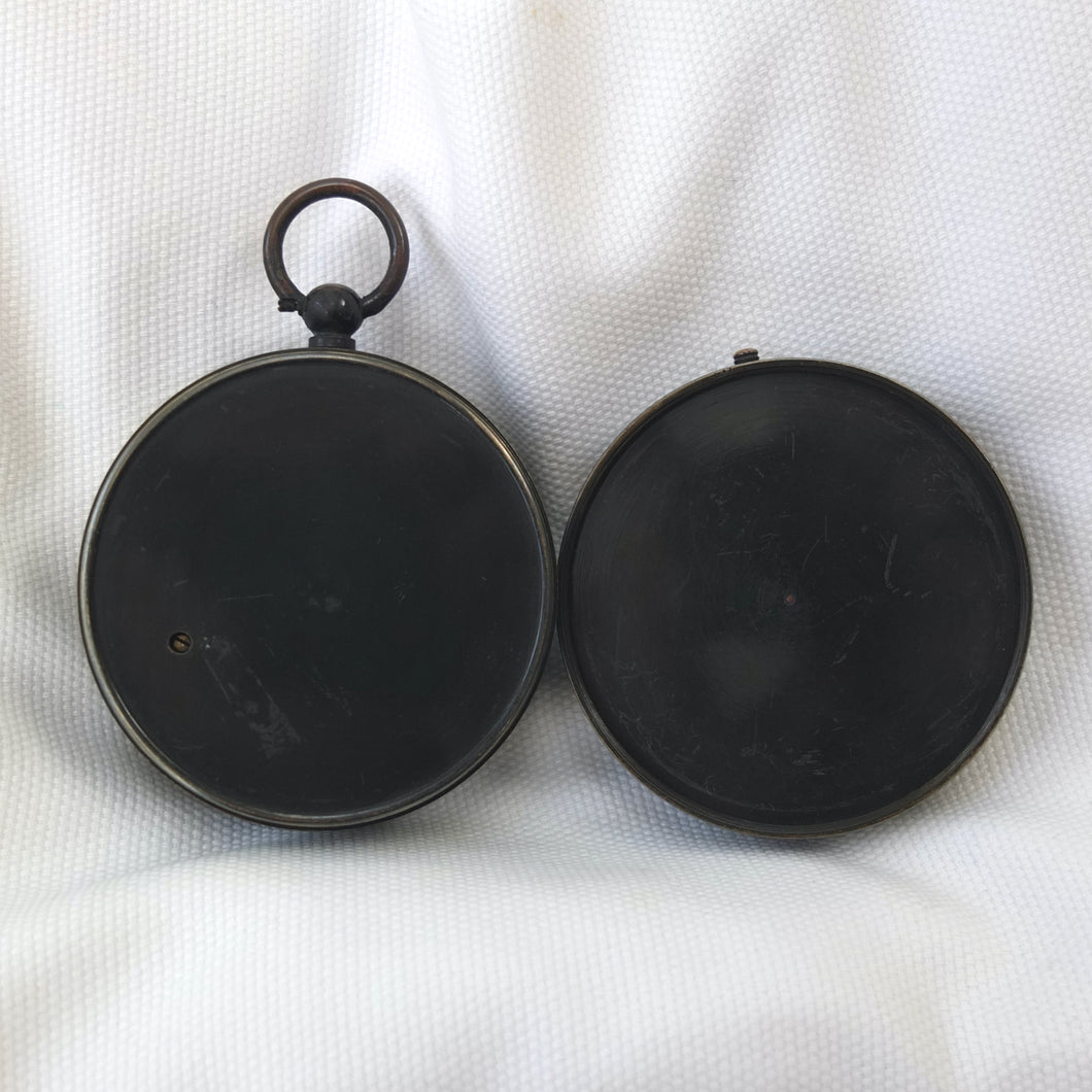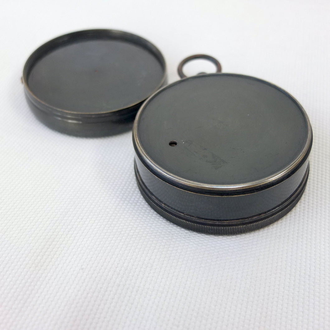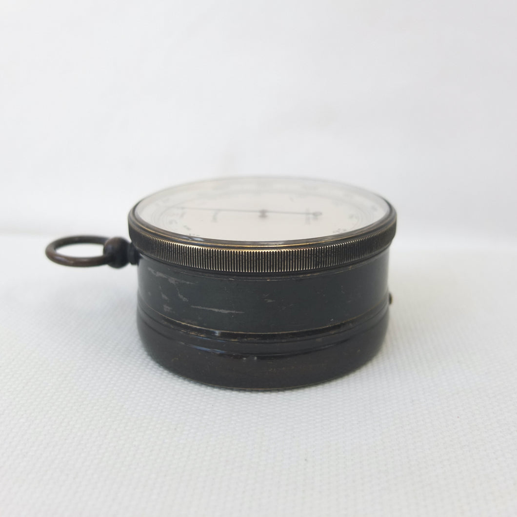 This instrument was made in 1903 - the date is engraved on the internal mechanism. It is quite an unusual Watts design, with the compass card being different to their standard Singer's type, and it may have been made to special order. (An identical instrument featured in the 1890 catalogue of G. S. Woolman, a New York importer and retailer of scientific instruments, where it was described as a 'Geological Aneroid'). It features an aneroid barometer, with a rotating bezel scale calibrated to 10,000 feet. The compass has an English bar needle, and a transit lock operated by a sliding button on the side of the case. The 'bronzed' finish brass case is screw-threaded and unscrews to separate into two parts, allowing the barometer and compass to be used independently. The bronzed finish of the case is particularly well preserved - this type of finish often wears away over time or is damaged by polishing. Both the barometer and compass are in perfect working order, having been fully serviced and calibrated in February 2025 by barometer specialists Vavasseur Antiques in Devon.