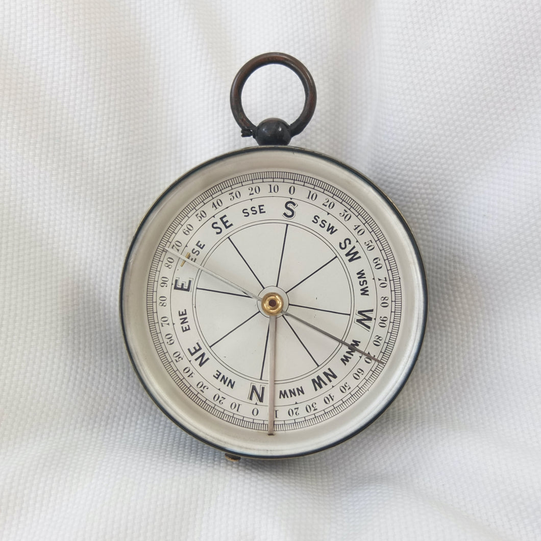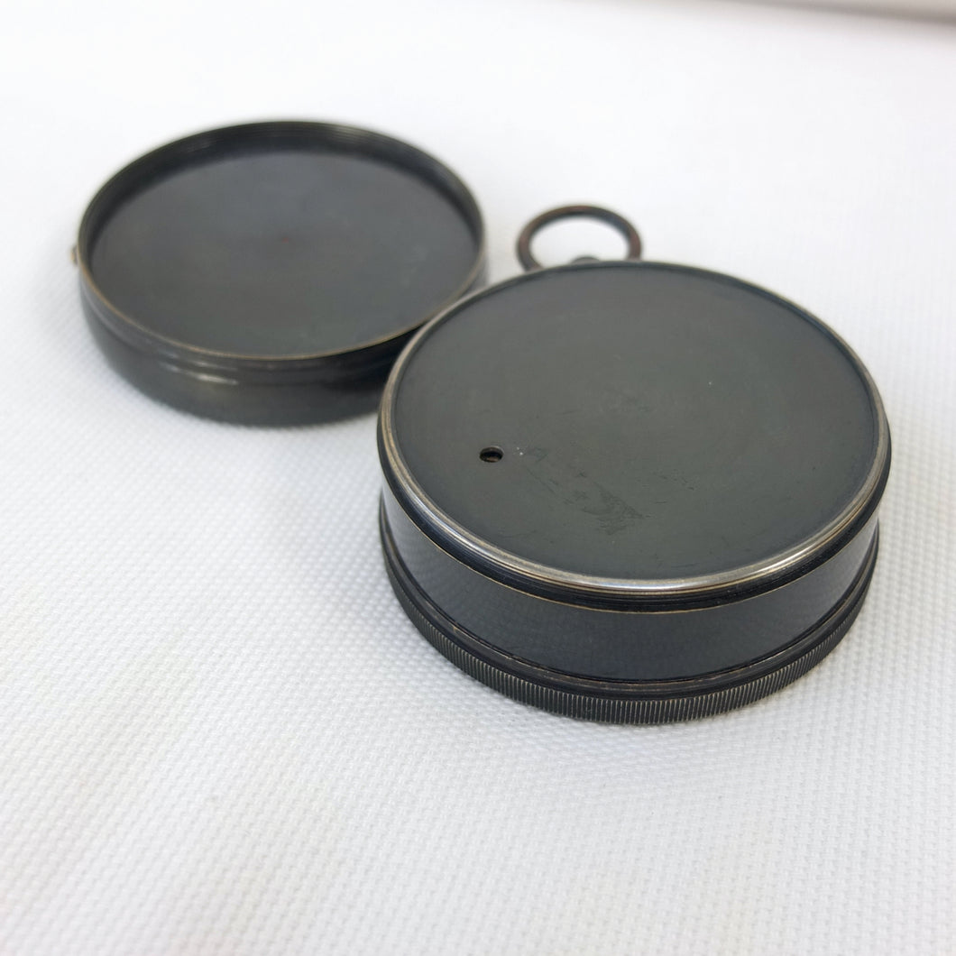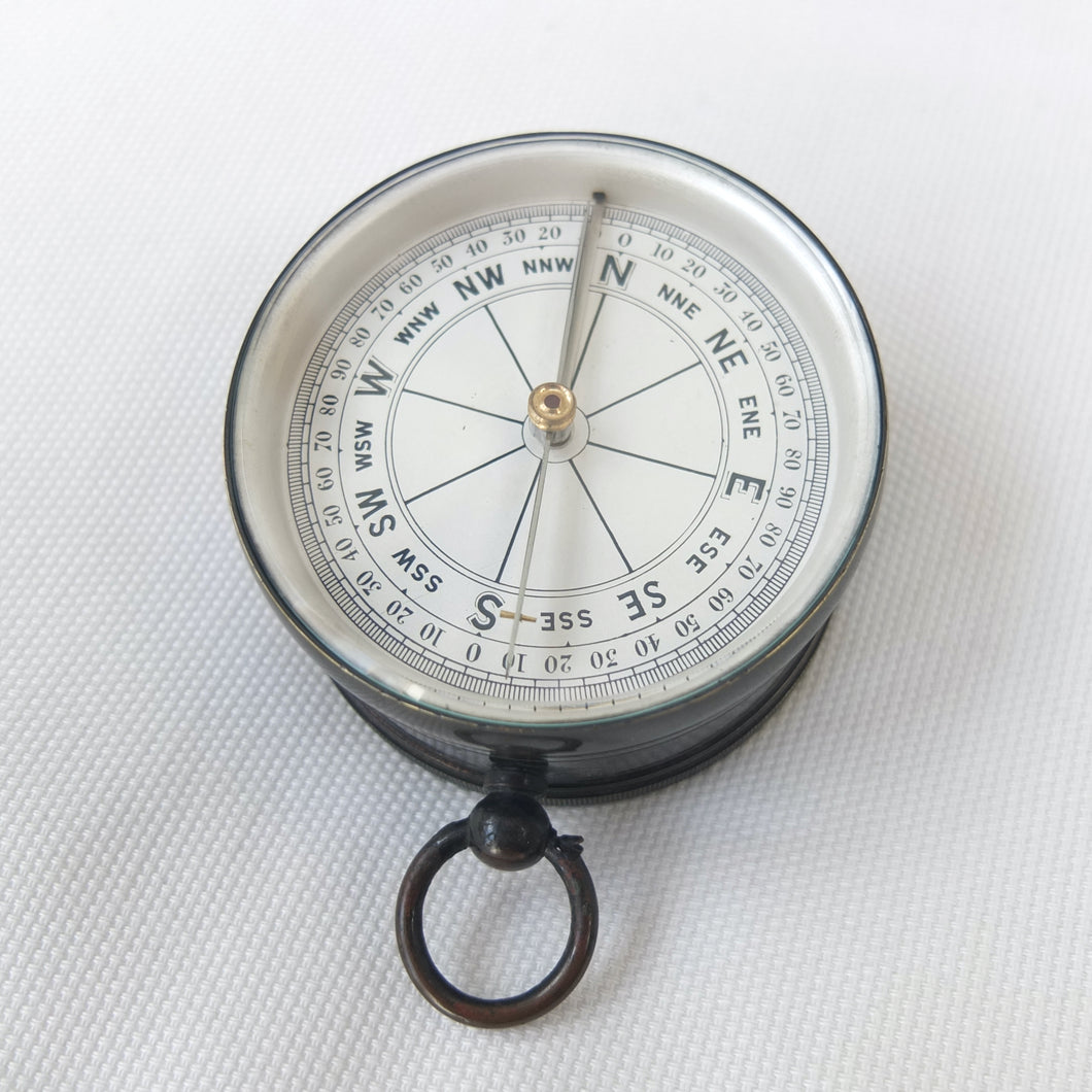 This instrument was made in 1903 - the date is engraved on the internal mechanism. It is quite an unusual Watts design, with the compass card being different to their standard Singer's type, and it may have been made to special order. (An identical instrument featured in the 1890 catalogue of G. S. Woolman, a New York importer and retailer of scientific instruments, where it was described as a 'Geological Aneroid'). It features an aneroid barometer, with a rotating bezel scale calibrated to 10,000 feet. The compass has an English bar needle, and a transit lock operated by a sliding button on the side of the case. The 'bronzed' finish brass case is screw-threaded and unscrews to separate into two parts, allowing the barometer and compass to be used independently. The bronzed finish of the case is particularly well preserved - this type of finish often wears away over time or is damaged by polishing. Both the barometer and compass are in perfect working order, having been fully serviced and calibrated in February 2025 by barometer specialists Vavasseur Antiques in Devon.
