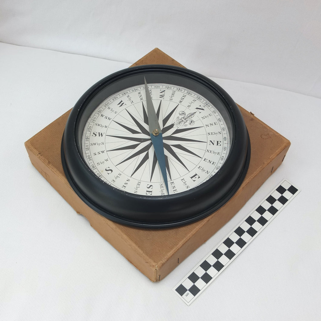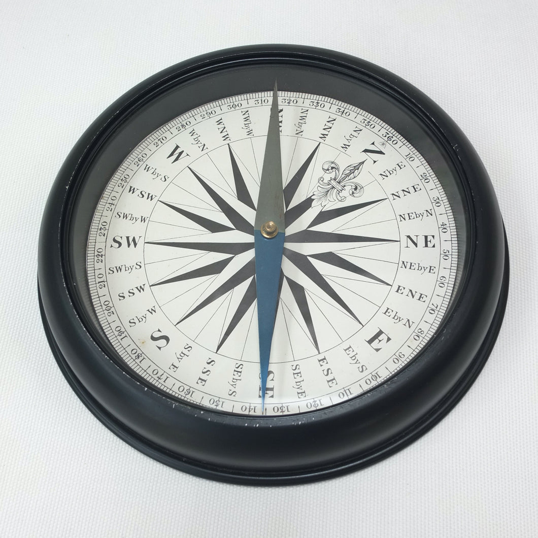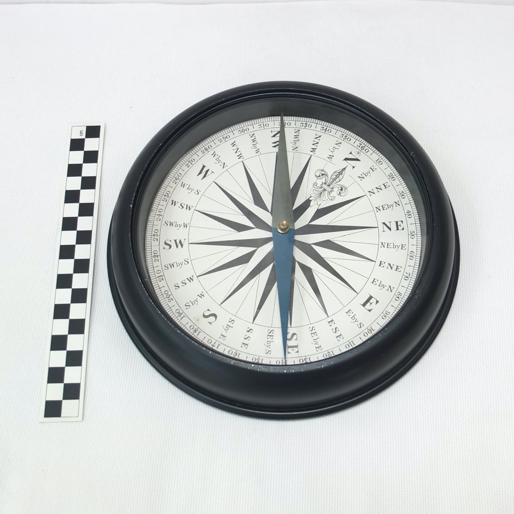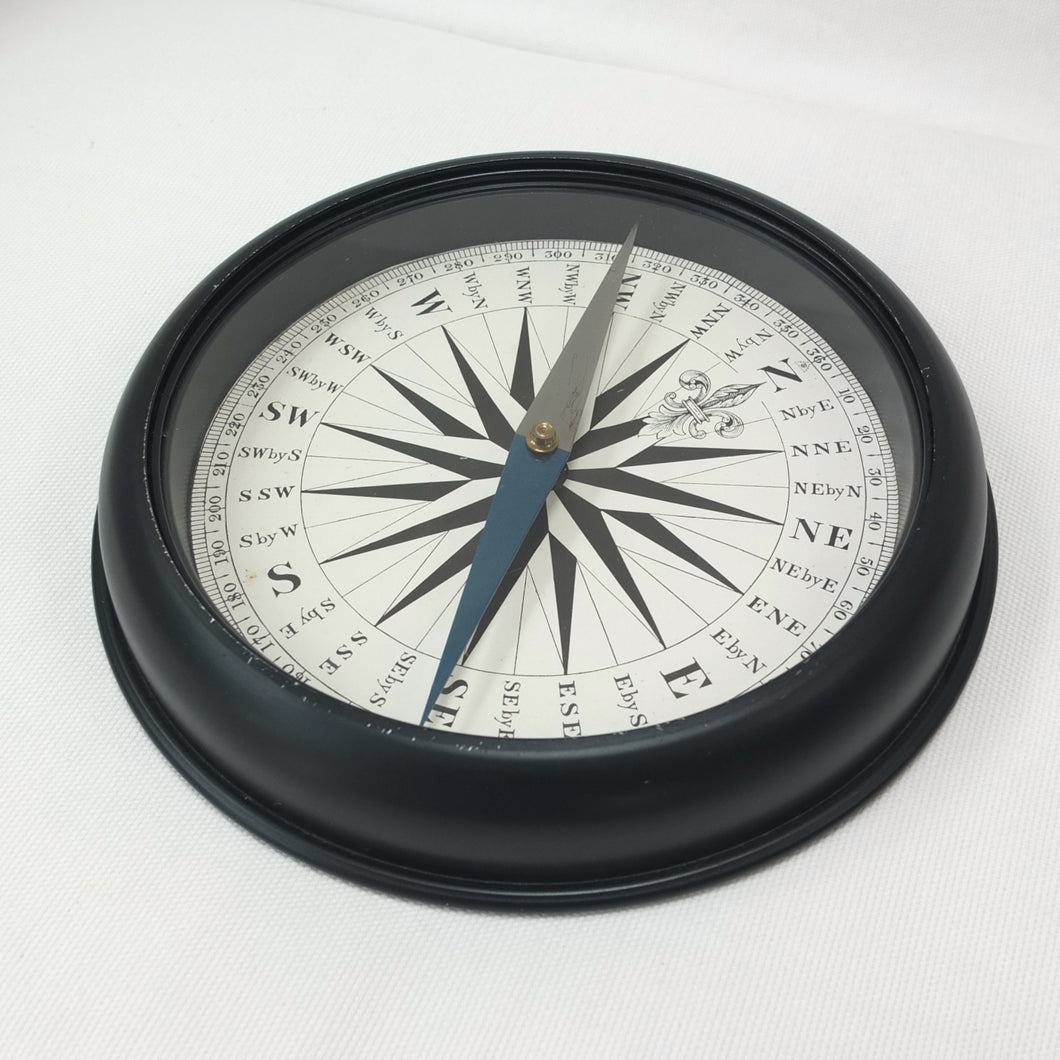 In very good condition and full working order, it finds North well. There is some very minor wear to black painted finish on the edges of the case. The glass, compass card and needle are all in very good condition.