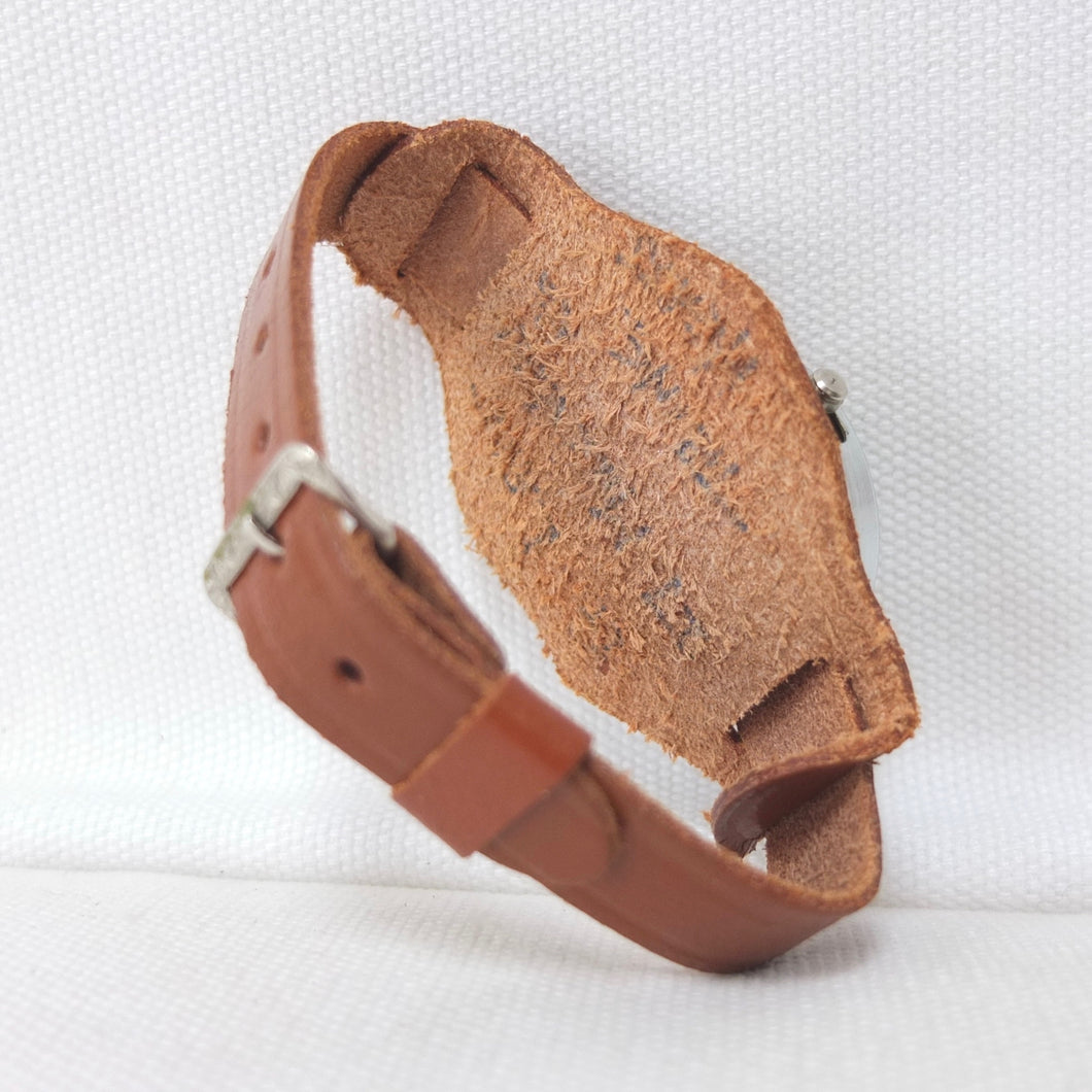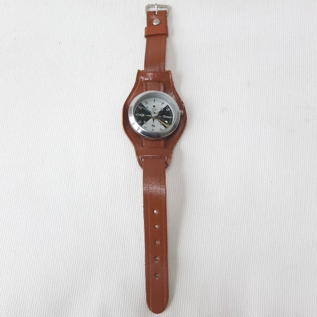 The compass is in very good condition and finds North very well. The transit lock is working and the luminous paint markers glow in the dark. The leather strap is in very good condition, with some wear to the rear. The cardboard box is a little worn and one of the end flaps is missing.