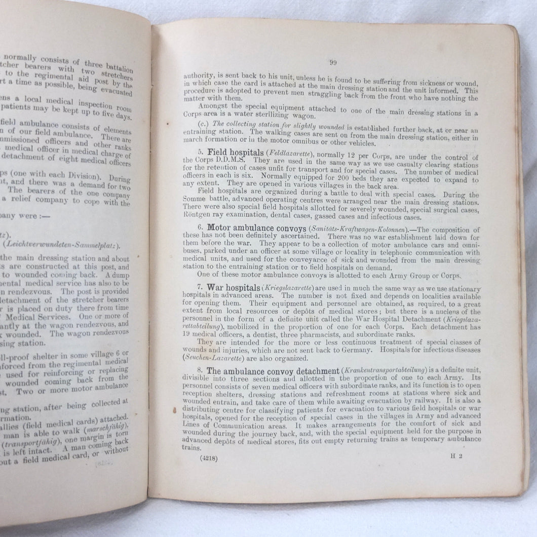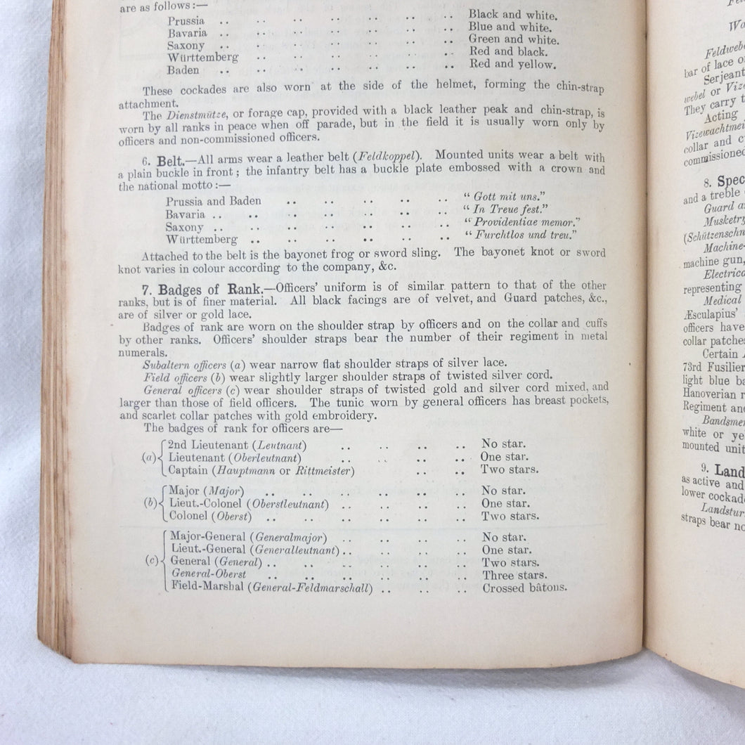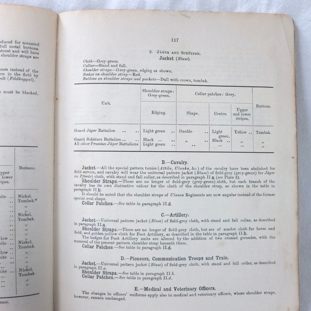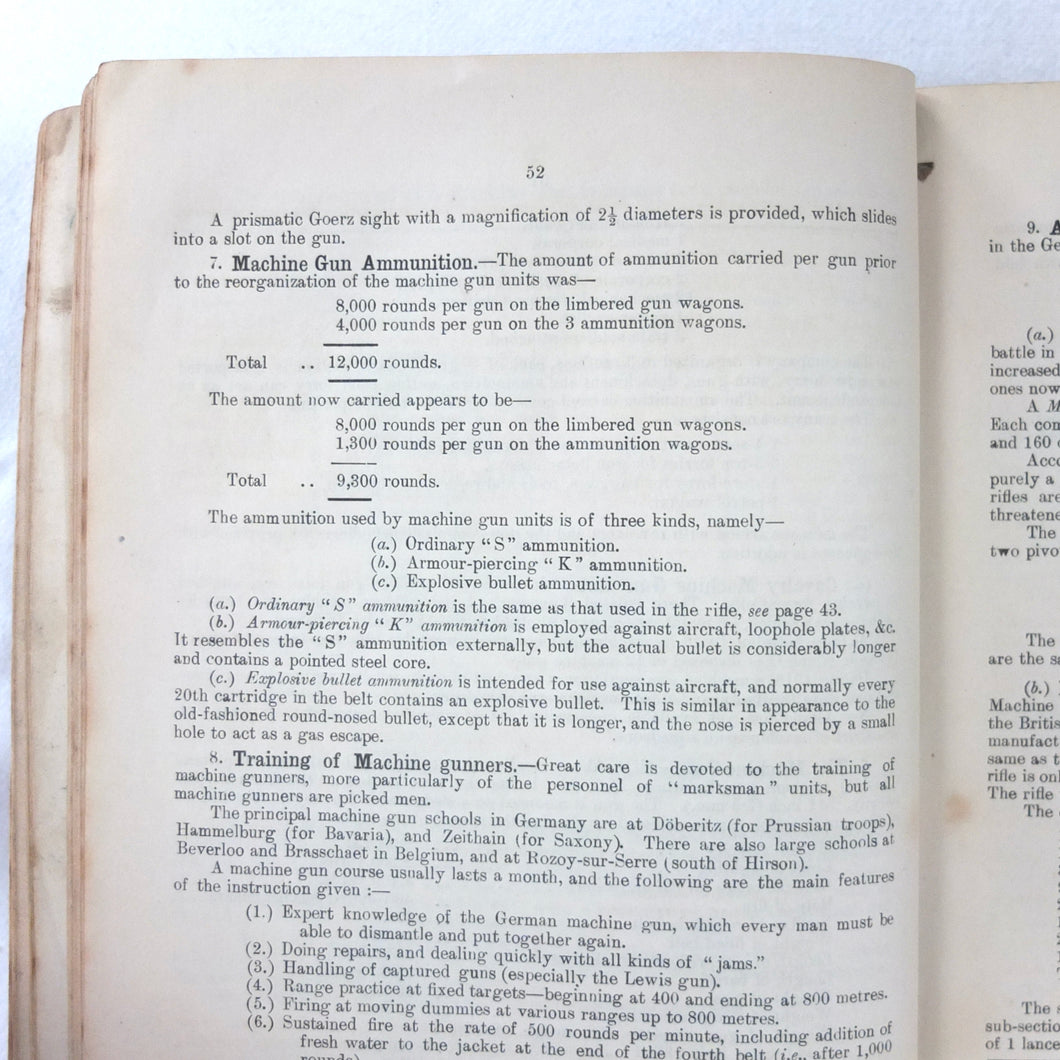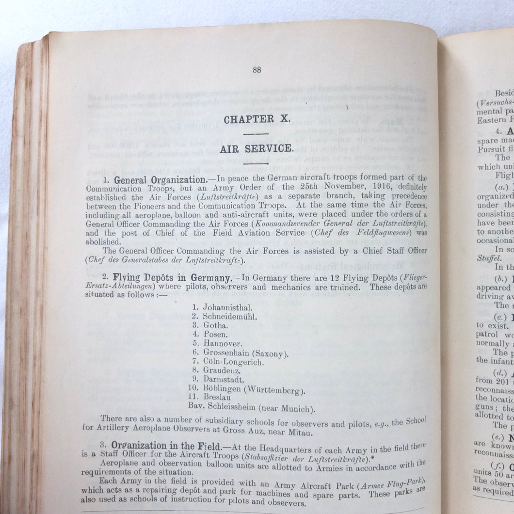 A very rare 1917 edition of Handbook of the German Army in War, a British Army General Staff manual, published by the War Office during the First World War. The handbook is a detailed survey of the units, organisation, personnel, weapons, and equipment of the Imperial German Army. Subjects covered include: Recruiting, Officers and NCOs, Staff and High Command, Infantry, Machine Guns and Automatic Rifles, Cavalry, Artillery, Field Guns, Howitzers, Trench Artillery, Ammunition Supply, Technical Troops, Air Service, Medical Services, Landsturm Units, Uniforms and Equipment. Illustrated with charts, photographs and line drawings