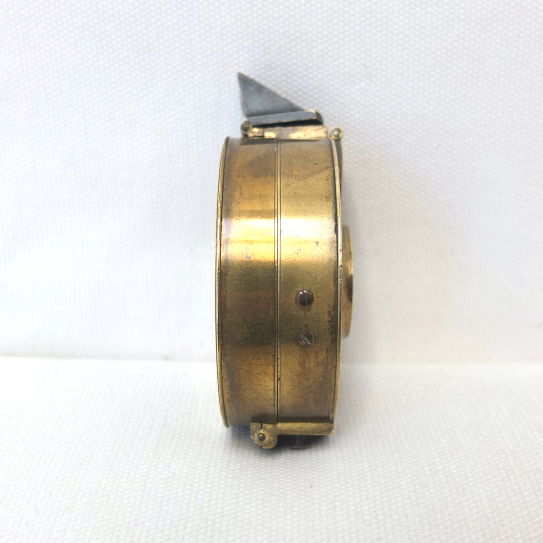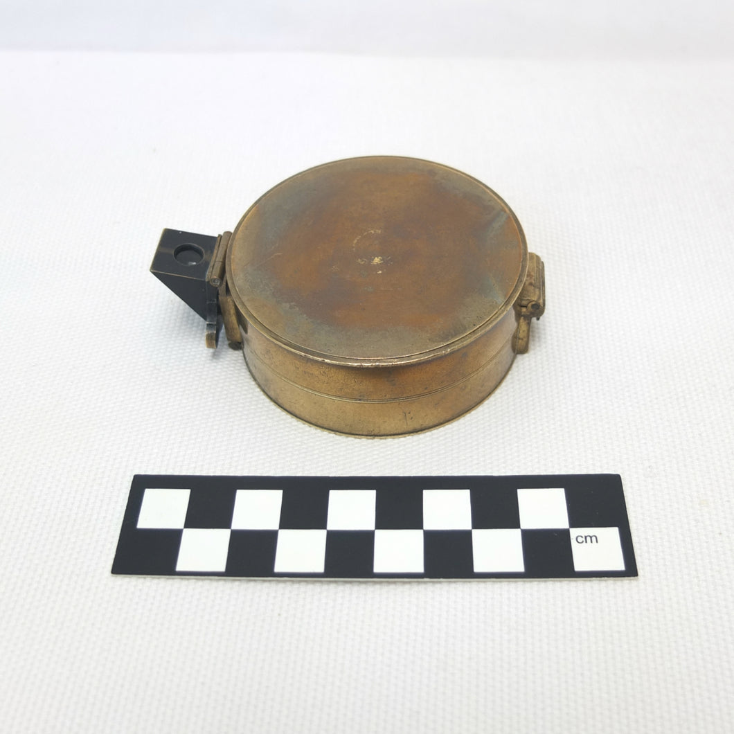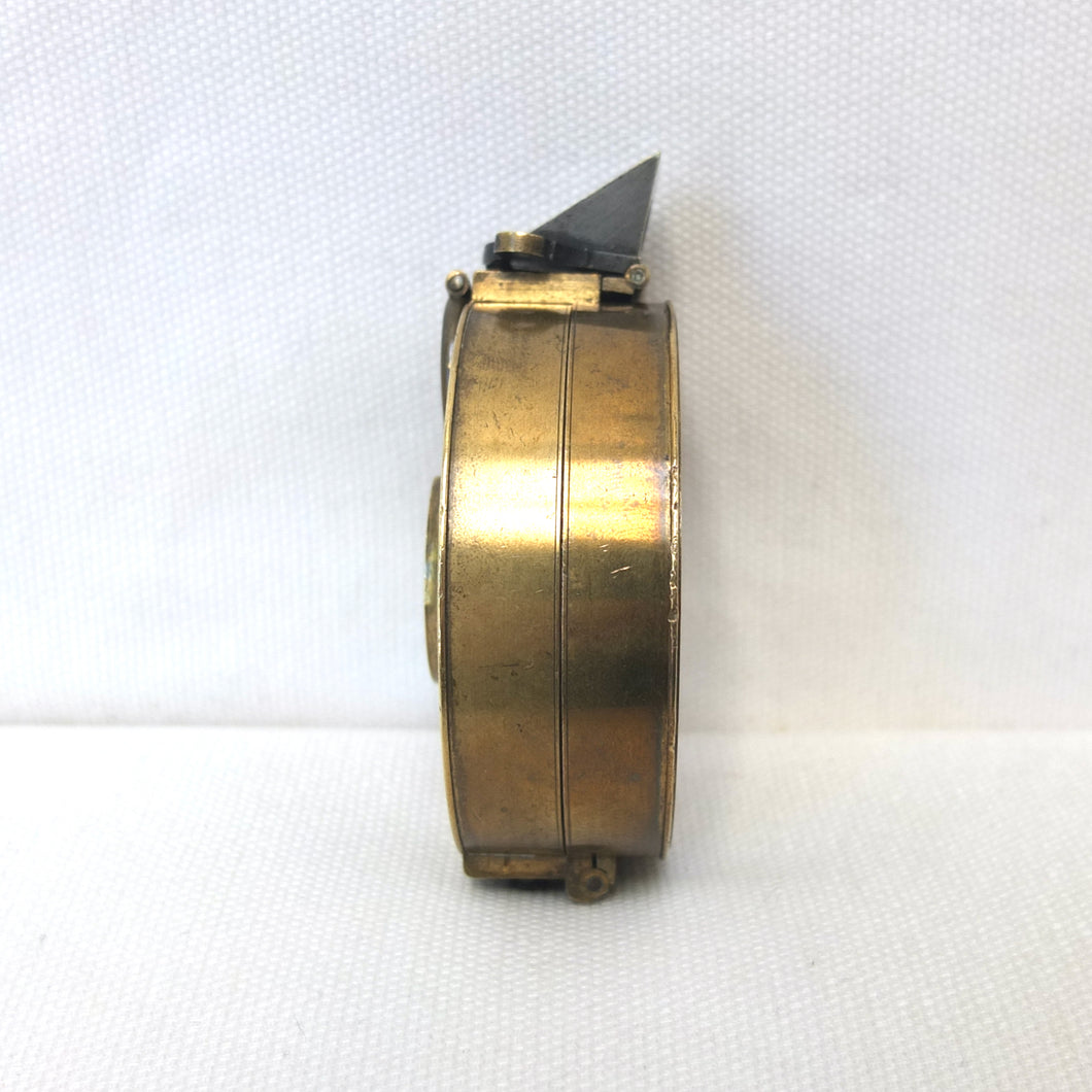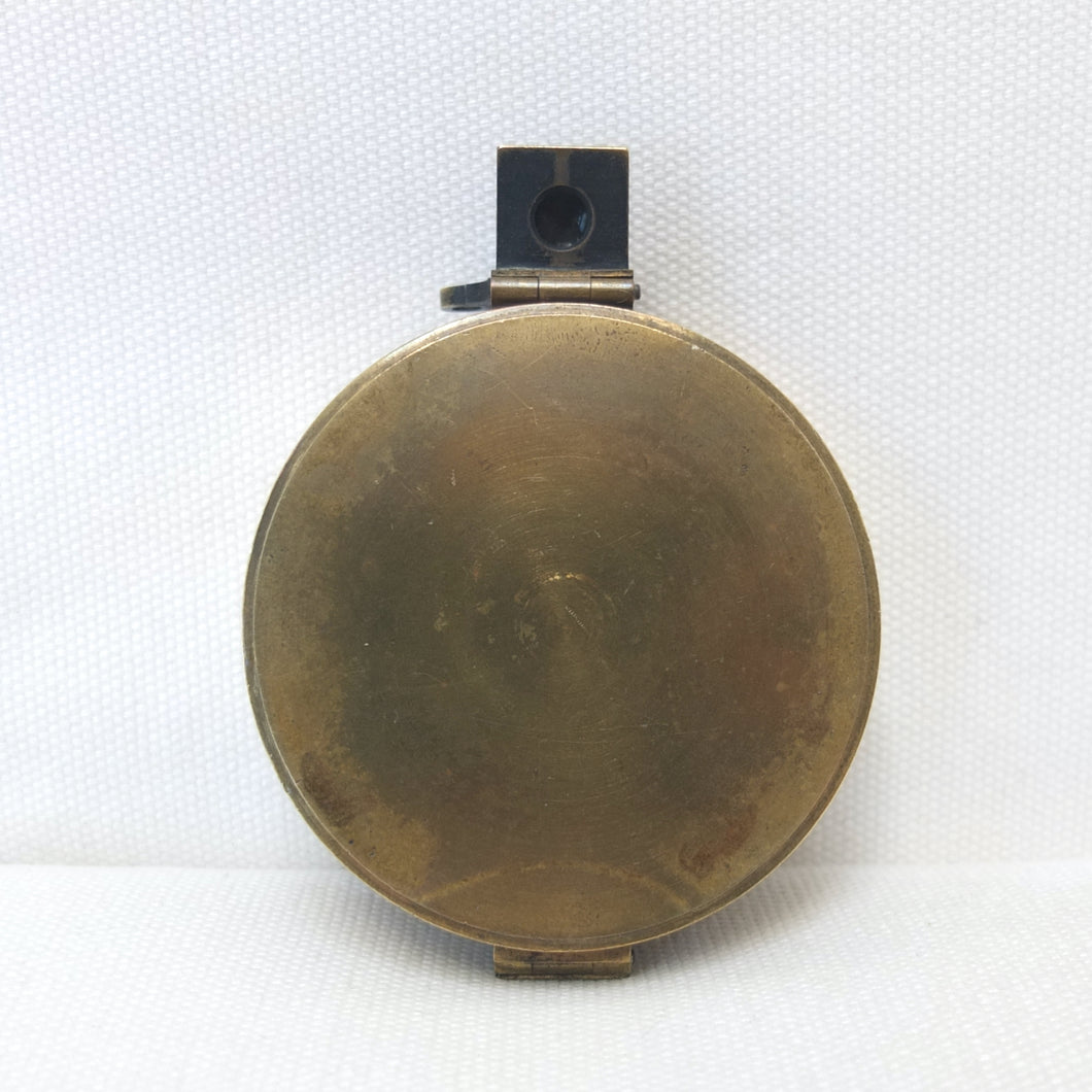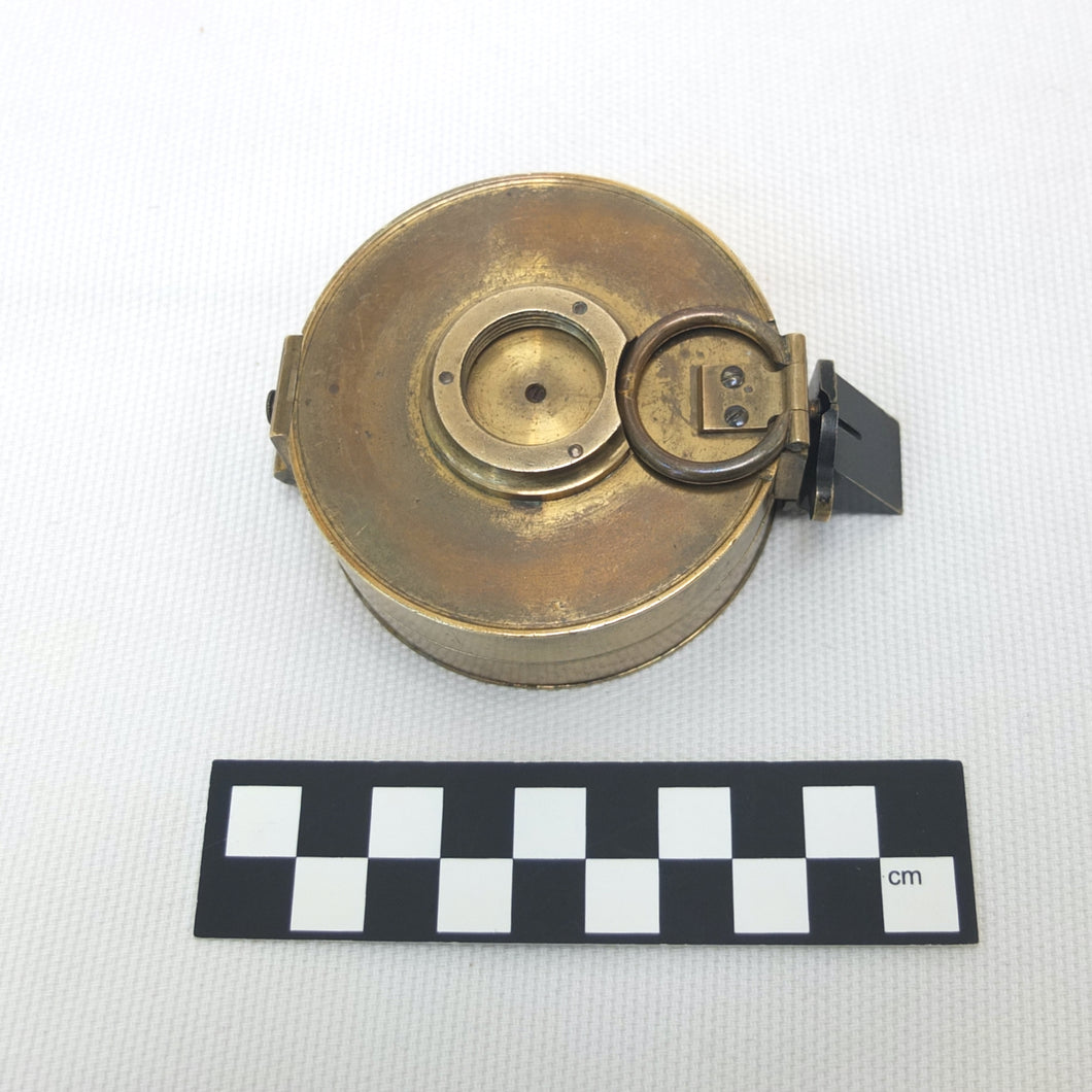 In very good, virtually 'museum', condition, and full working order. The compass finds North well. The original glass and prism are in very good condition, with an excellent view of the card through the prism. The compass card is in excellent condition. There is some wear and a few marks to the original lacquered finish of the brass case.