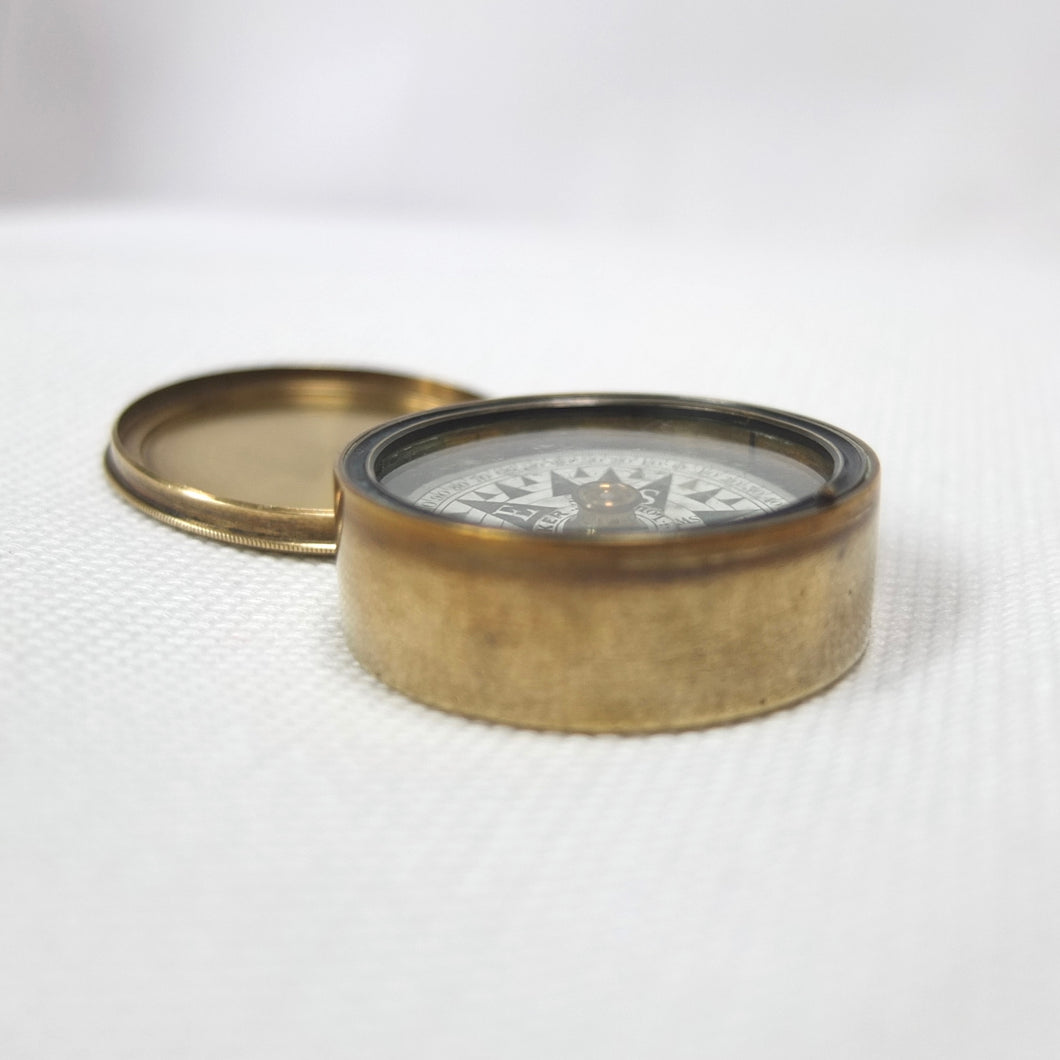 The compass is in very good condition, full working order and finds North well. The brass case is in very good condition, with some of the original lacquered finish still present inside the lid. The glass is in very good condition. The hand drawn paper compass card is in very good condition. The lid fits very well. The transit lock is in working order.