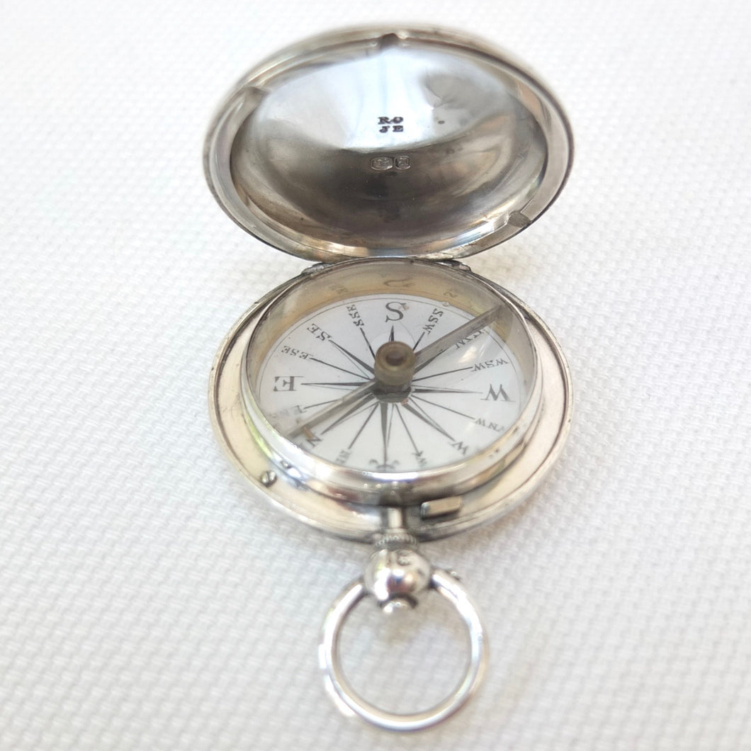 The compass is in very good condition, full working order and finds North well. The hallmarked silver case is in very good condition. The glass is in very good condition. The enamel compass card is in very good condition, with a minor hairline crack near the 'S' marker.