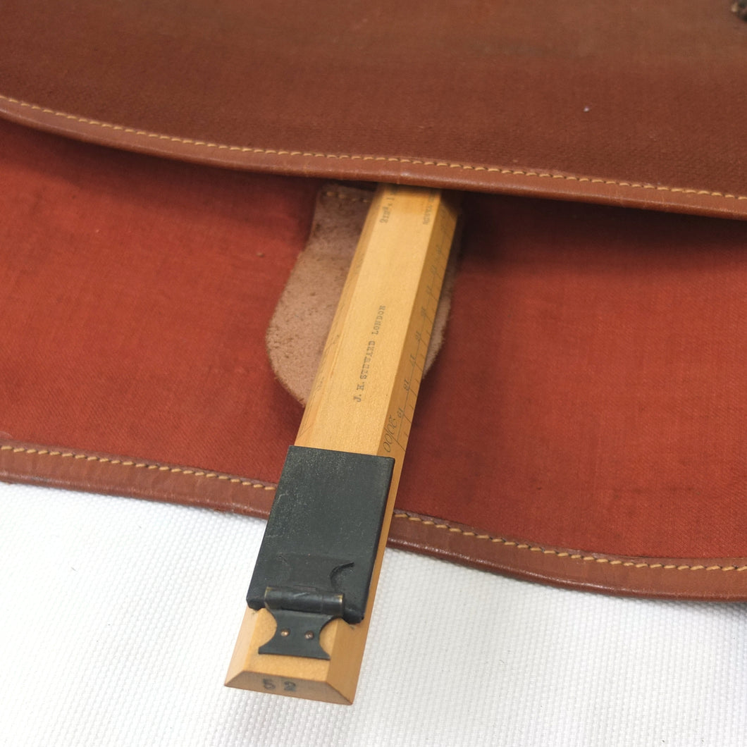 A rare J. H. Steward Military 'New' Plane Table Sketching Board, dating from c.1910. The 'New' Plane Table appeared in Steward miltary instrument catalogues from 1901 to 1910. Made of mahogany, with brass fittings and tripod attachment point, it comes with its original accessories -  the 'Simpson Reflecting Sight Ruler', and the 'Waterproof Canvas Case'. The Simpson Ruler first appeared in the 1910 Steward catalogue, and was no longer listed in the 1916 edition, so this plane table can be accurately dated to around 1910. The design of this Plane Table is almost identical to the standard Verner's Patent Cavalry Sketching Board (various different versions were patented by Willoughby Verner between 1887-1891), but this example is much larger, 12 inches x 17.5 inches, with a working surface area of 10 inches x 14 inches. Most military Plane Tables were fairly basic boxwood drawing boards which could be fitted onto a tripod for use in the field. The Steward 'New' version included an integral compass, and side rollers to hold the drawing paper, that were more often seen on the Verner's sketching boards. It was described in the 1910 Steward catalogue as: 'a light plane table, made of mahogany, with wooden rollers to carry 3 yards of paper. The rollers have tension clamps to ensure the paper being kept flat. A bar needle compass is countersunk in the head of the board, with revolving direction line for setting to the working meridian'. The canvas case has leather reinforced edges, a leather shoulder strap, and a leather pouch for the Simpson Sight Ruler sewn into the interior of the case.
