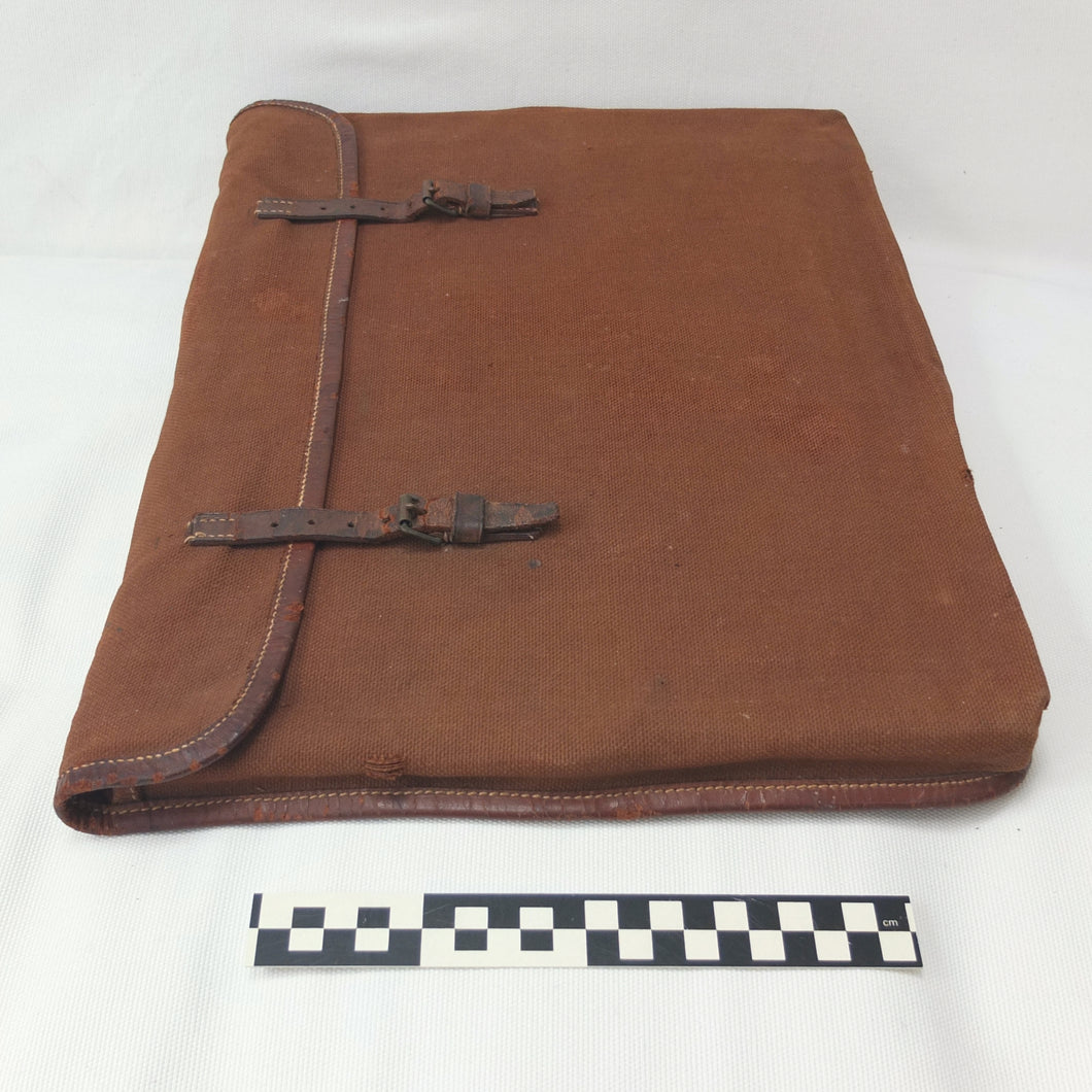 Cavalry Sketching Boards were essentially smaller and more portable versions of the plane table. Originally designed by Colonel W. H. Richards, who taught military surveying at the Royal Military Academy, Sandhurst c.1880, the sketching board was improved by Major Willoughby Verner who was also briefly Professor of Topography at Sandhurst. Verner patented his own improvements in 1887 and 1891 and the sketching board became generally known as the ‘Verner's'. W. J. Bosworth patented further improvements in 1897, and versions of the board remained in use until around 1930. They were produced by several scientific instrument makers, including Adie, J. H. Steward, Aston & Mander, Lawrence & Mayo, A. Edgell & Co., and Houghton’s. Cavalry Sketching Boards were designed to be strapped to the arm of an officer or cavalryman on the bridle arm. The board was attached to the arm by a leather strap with a swivel joint. This enabled the user to twist the whole board on their arm to align the compass accurately. The board incorporated a compass for taking bearings, and the sketch was made on a paper roll which was wound around the side rollers. As a sketch was completed, the paper roll was advanced to supply more paper. Sketching boards were widely used during the Boer War and WW1. During WW1 the sketching board was often used by the artillery, cavalry, and pilots and observers of the Royal Flying Corps to make sketches of enemy positions and trenches.