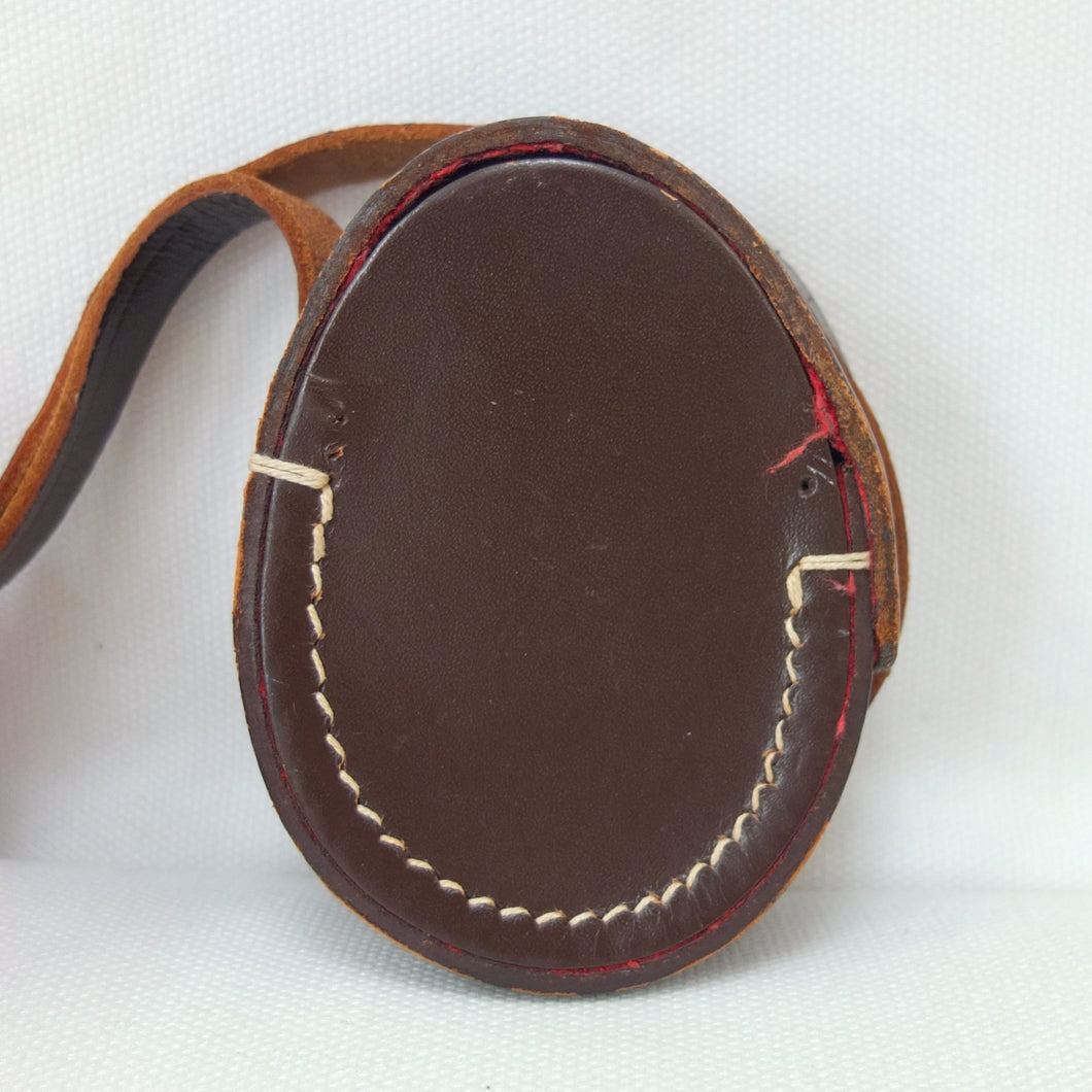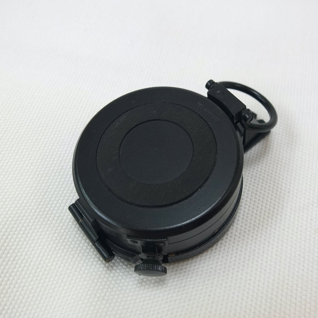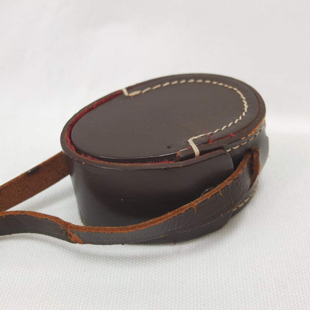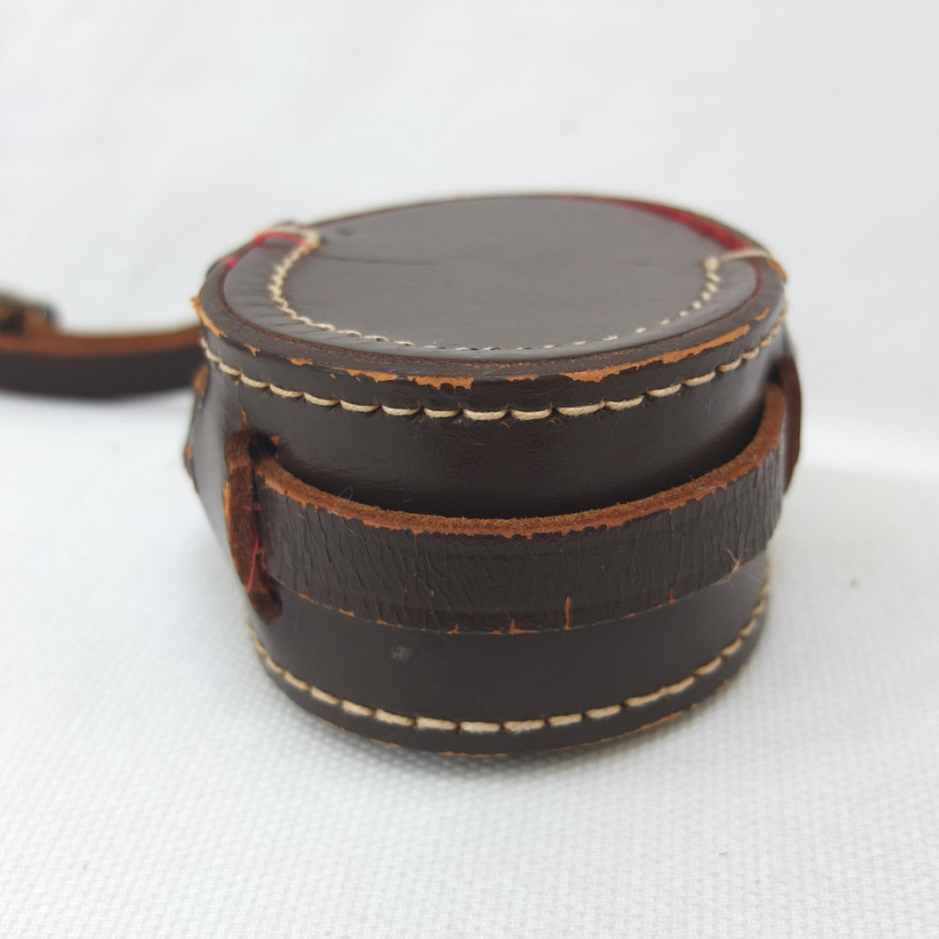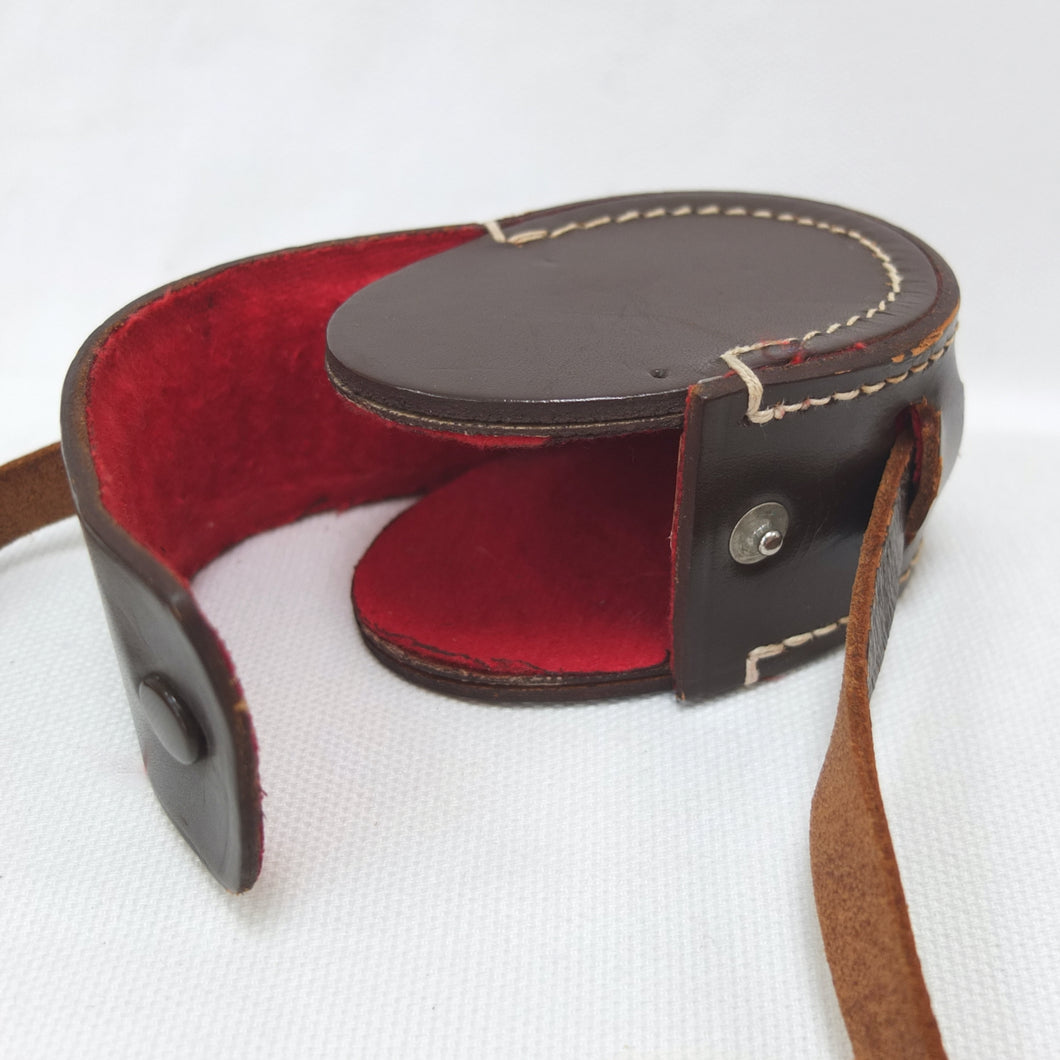 The compass is in very good condition, in full working order, and finds North very well. There are no bubbles in the fluid. There is some very minor wear to the black painted finish of the brass case. The luminous night lights have now expired and would need to be renewed if the compass was to be used in total darkness. The leather case is in very good condition, with some wear to the shouder strap.