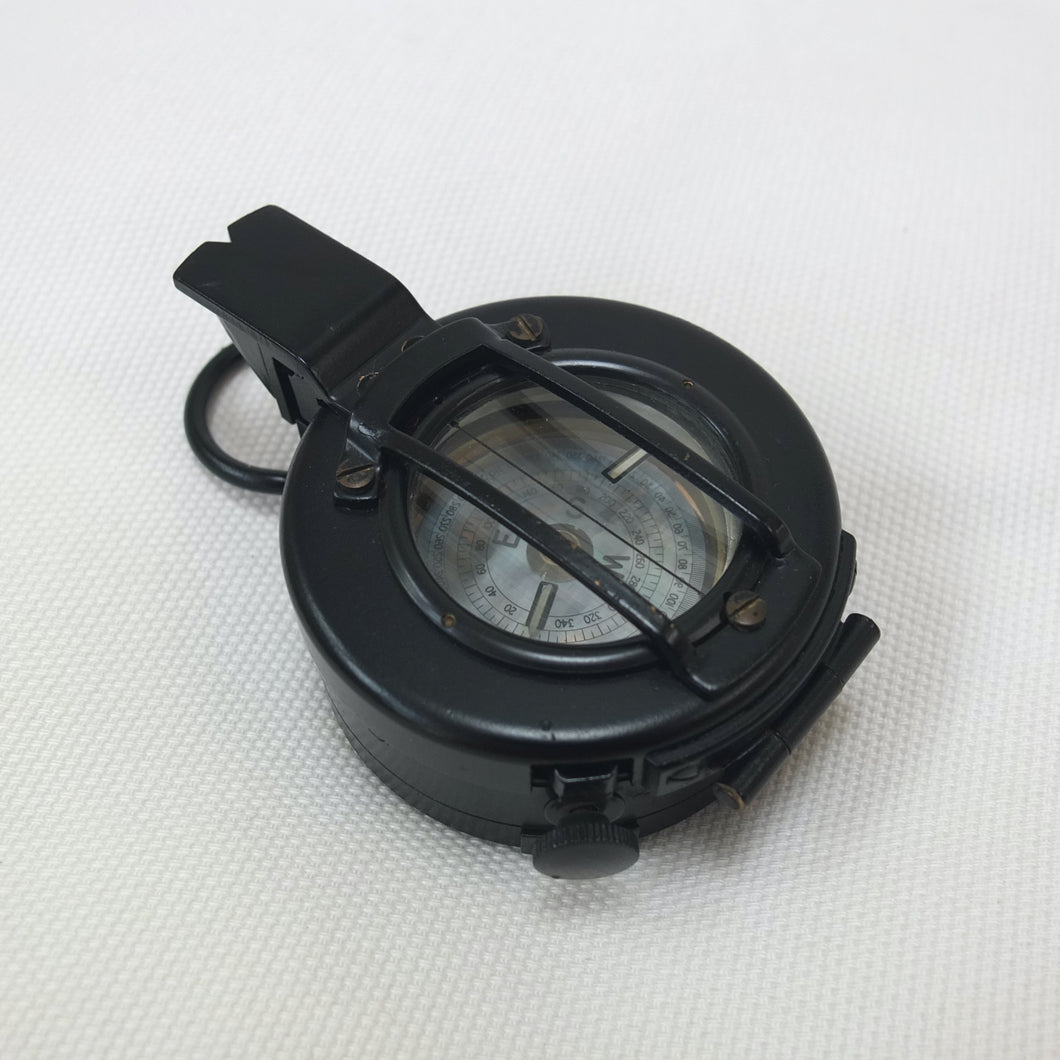 A rare Francis Barker M-72 liquid filled military prismatic compass, complete with its original leather case. The Barker M-72 compass was a direct descendant of the legendary MK III that was in use with the British armed forces throughout the second world war. Produced in the UK in 1972, it was a development of the M-71 which was introduced in 1971 and was one of the last Barker compasses to feature a mother of pearl card. The M-72 was only made during 1972, in very limited quantities, before being replaced by the M-73 in 1973. The M-73 remains in production today, is still regarded as the world's finest liquid prismatic compass, and is standard military issue with many armed forces.