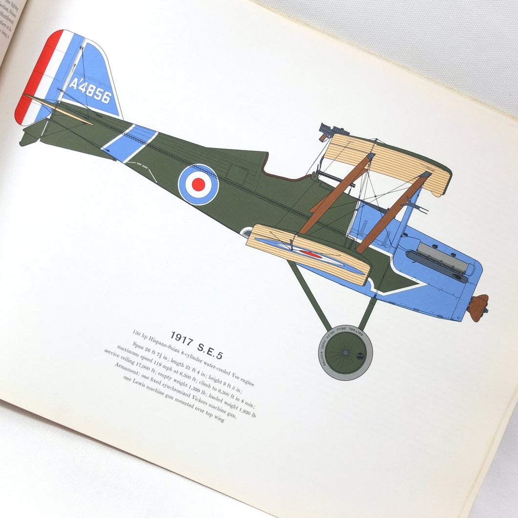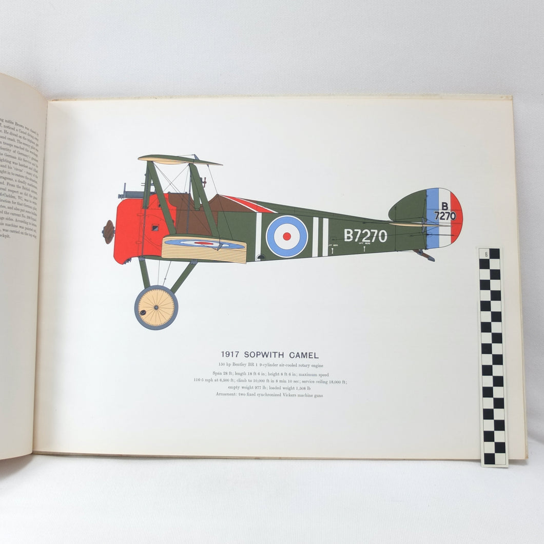 The 1962 first edition of Early Aeroplanes 1907-18 by the well-known British aviation artist Roy Cross. This is a large format book, measuring 14 by 19 inches (380 x 480mm) illustrated with 12 full page color plates by the author. Many iconic WW1 aircraft types are included, alongside the very earliest aeroplanes like the Wright and the Bleriot.