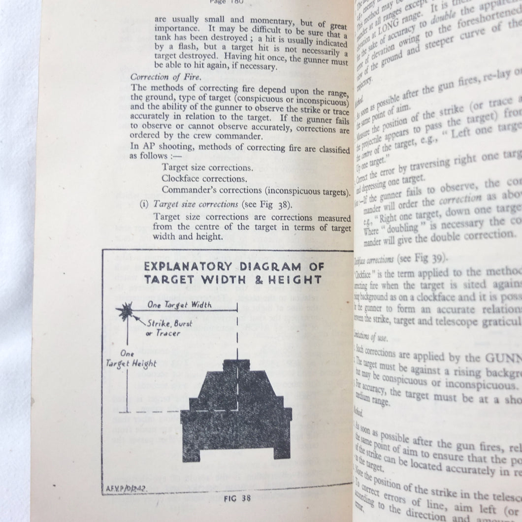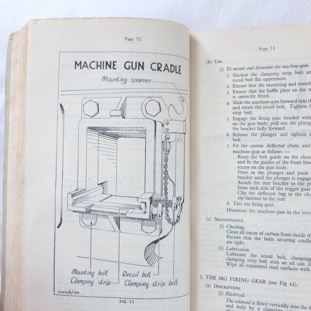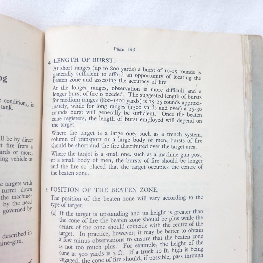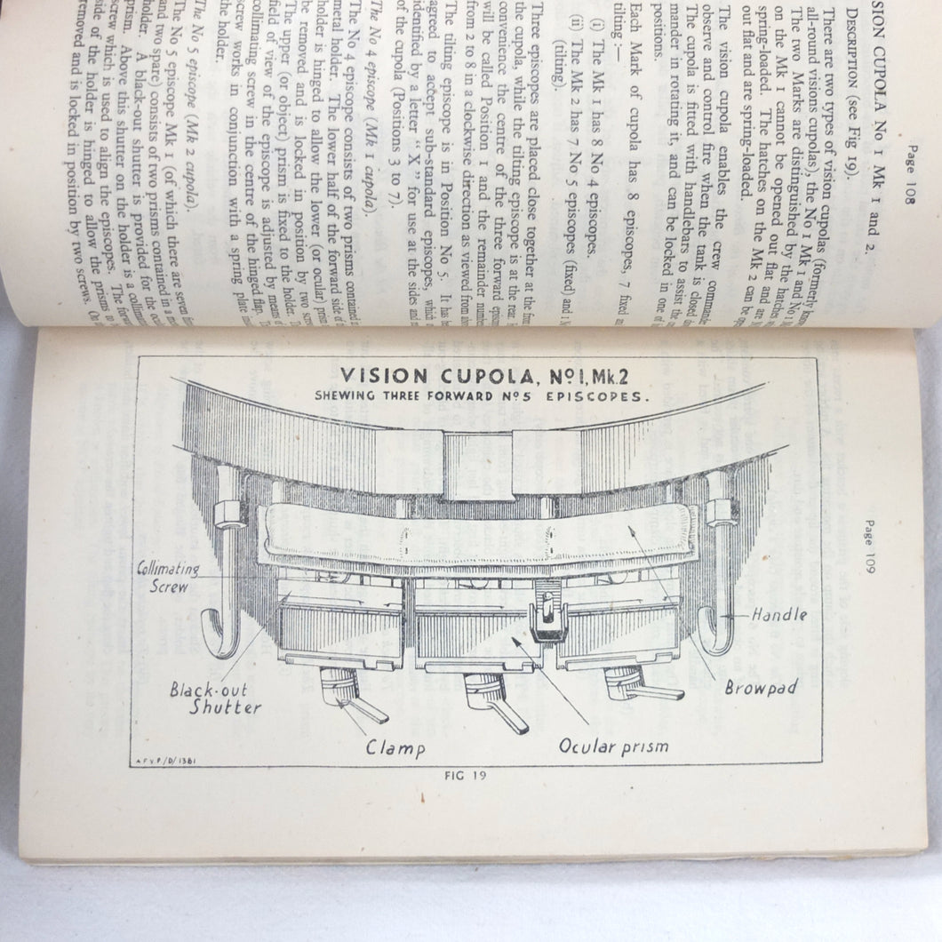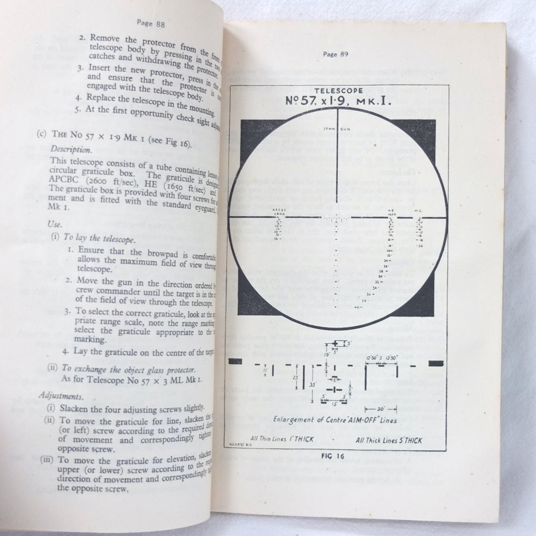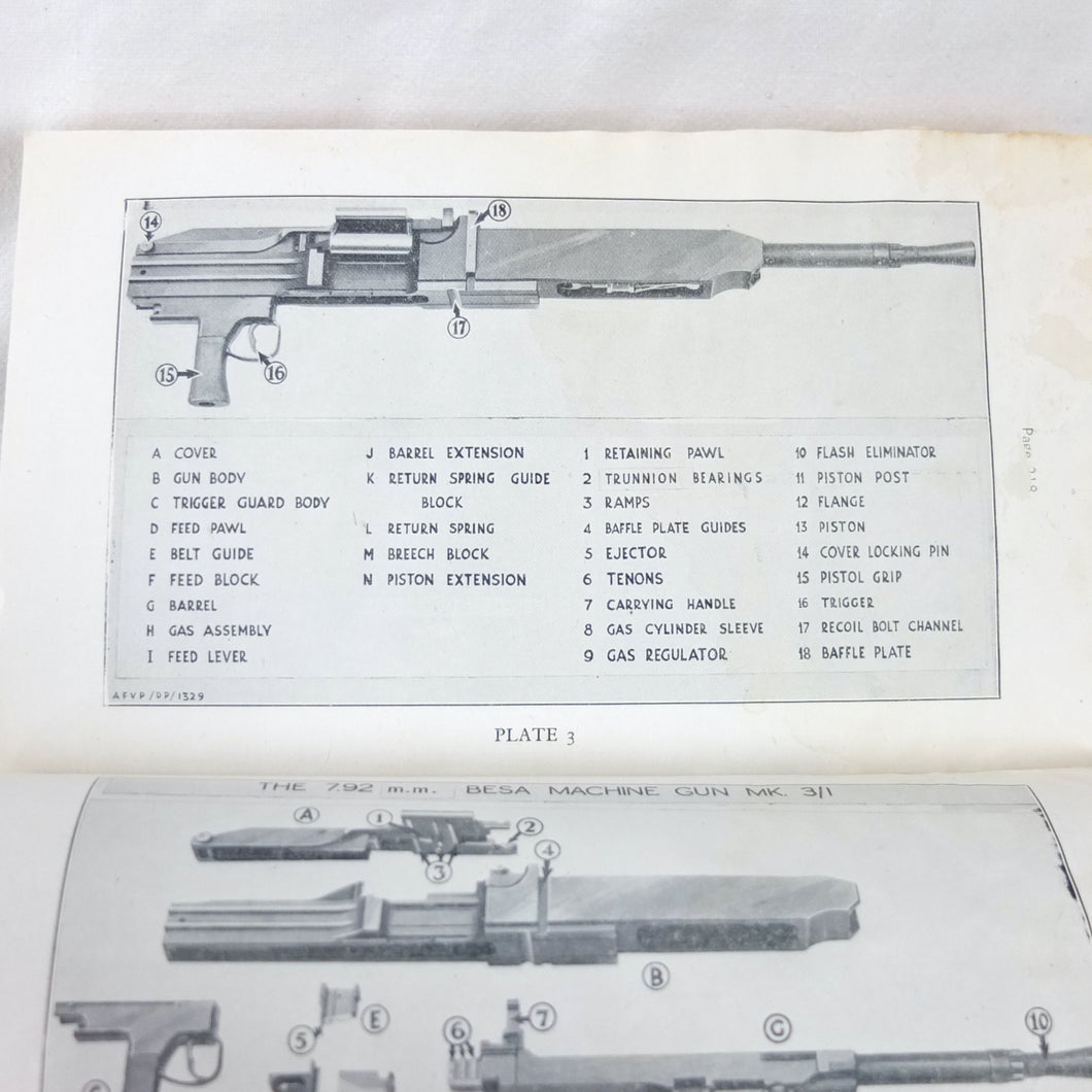 A rare original Royal Armoured Corps handbook for the Comet Tank, published in March 1946. Produced by the R.A.C., the handbook is a well illustrated guide to the use and maintenance of the armament and ammunition of Mk I Comet Tank. Subjects covered include: introduction to armament, 77mm gun, 7.92 BESA MG, smoke weapons, co-axial mountings, machine gun shooting, shooting at moving targets, shooting on the move, fire discipline, tools and spares, aiming, sighting equipment, ammunition, techniques of shooting, stationary targets, etc.