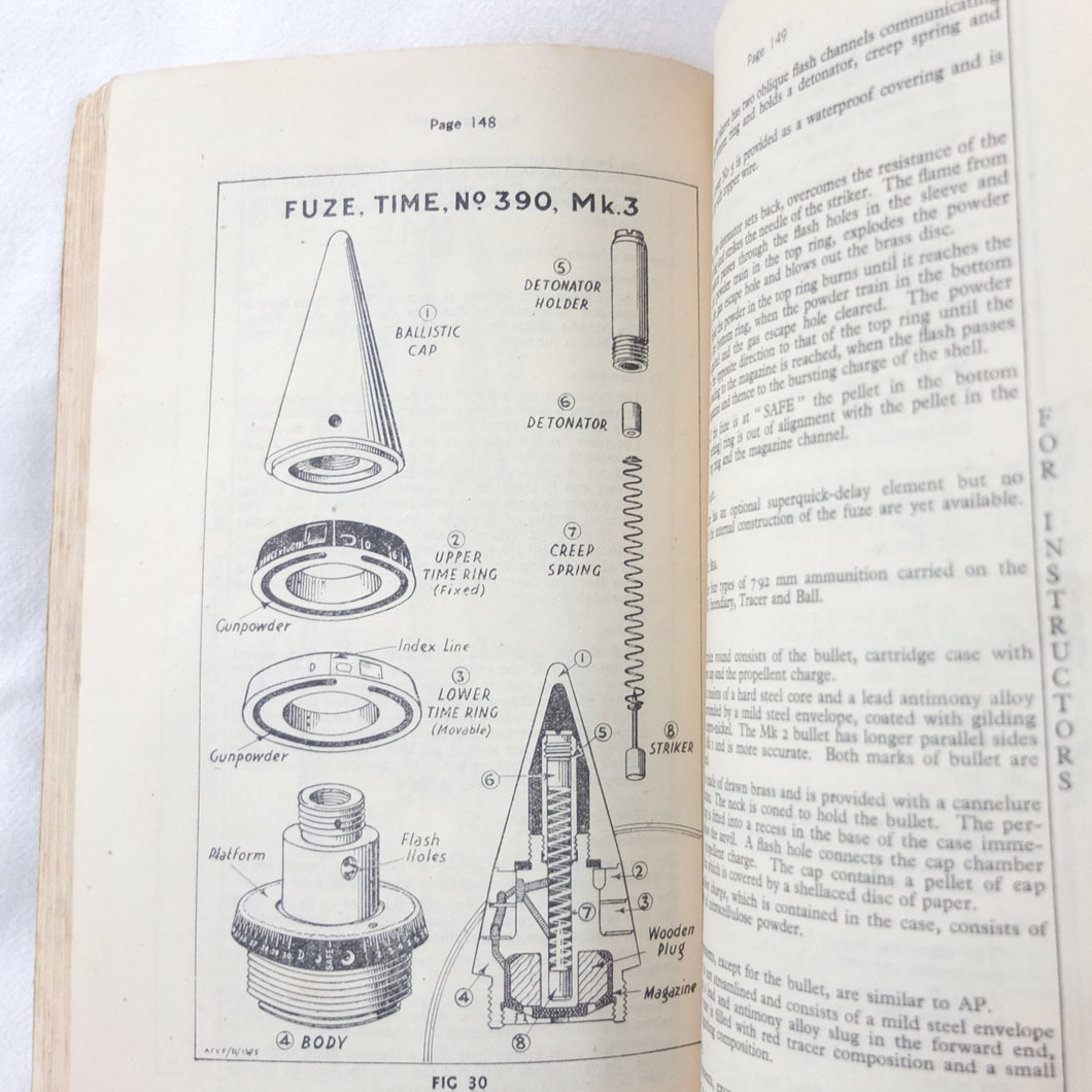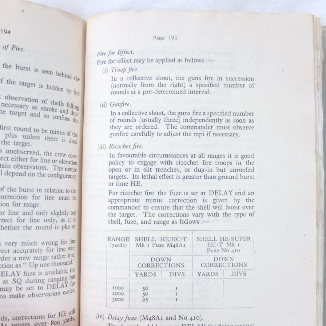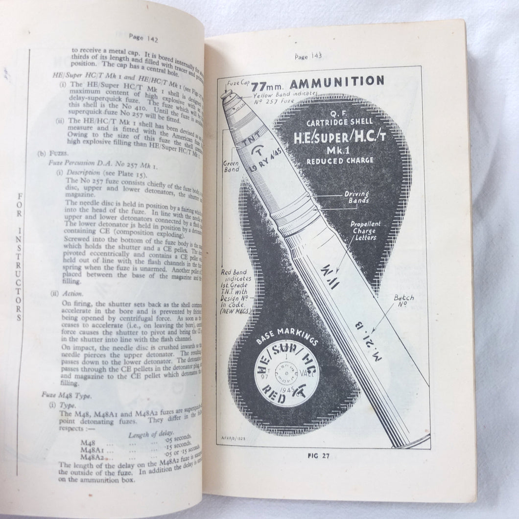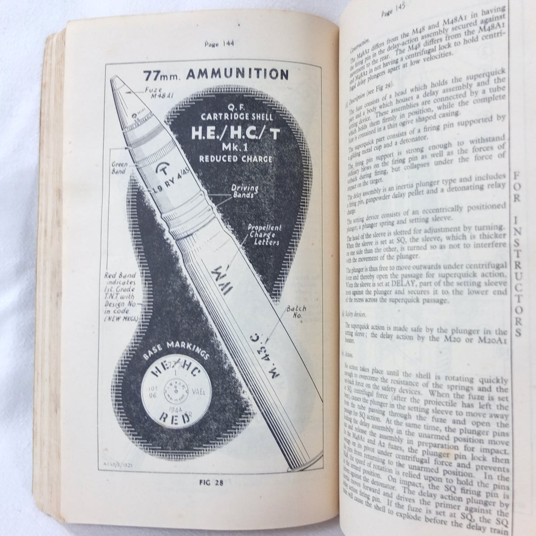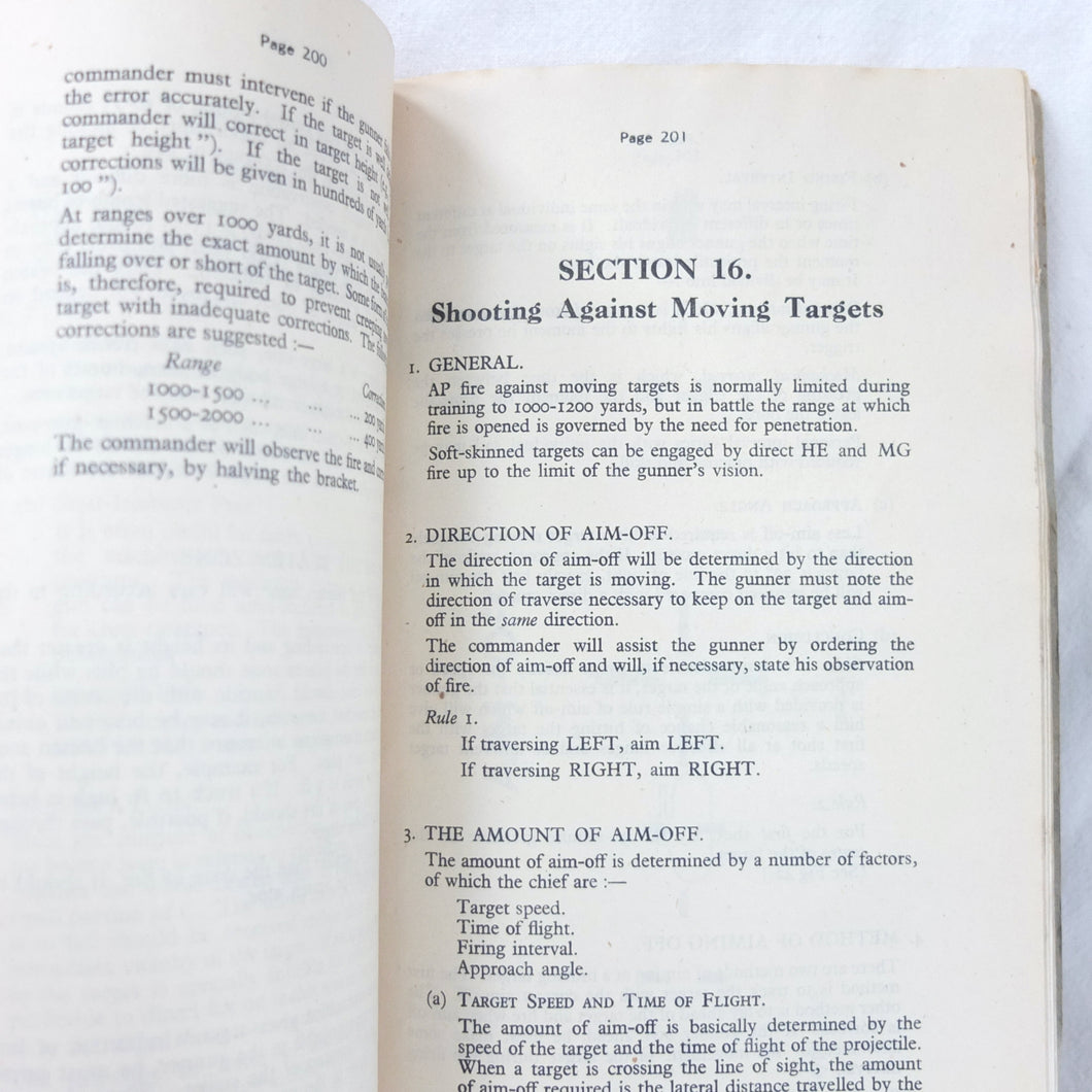 A rare original Royal Armoured Corps handbook for the Comet Tank, published in March 1946. Produced by the R.A.C., the handbook is a well illustrated guide to the use and maintenance of the armament and ammunition of Mk I Comet Tank. Subjects covered include: introduction to armament, 77mm gun, 7.92 BESA MG, smoke weapons, co-axial mountings, machine gun shooting, shooting at moving targets, shooting on the move, fire discipline, tools and spares, aiming, sighting equipment, ammunition, techniques of shooting, stationary targets, etc.