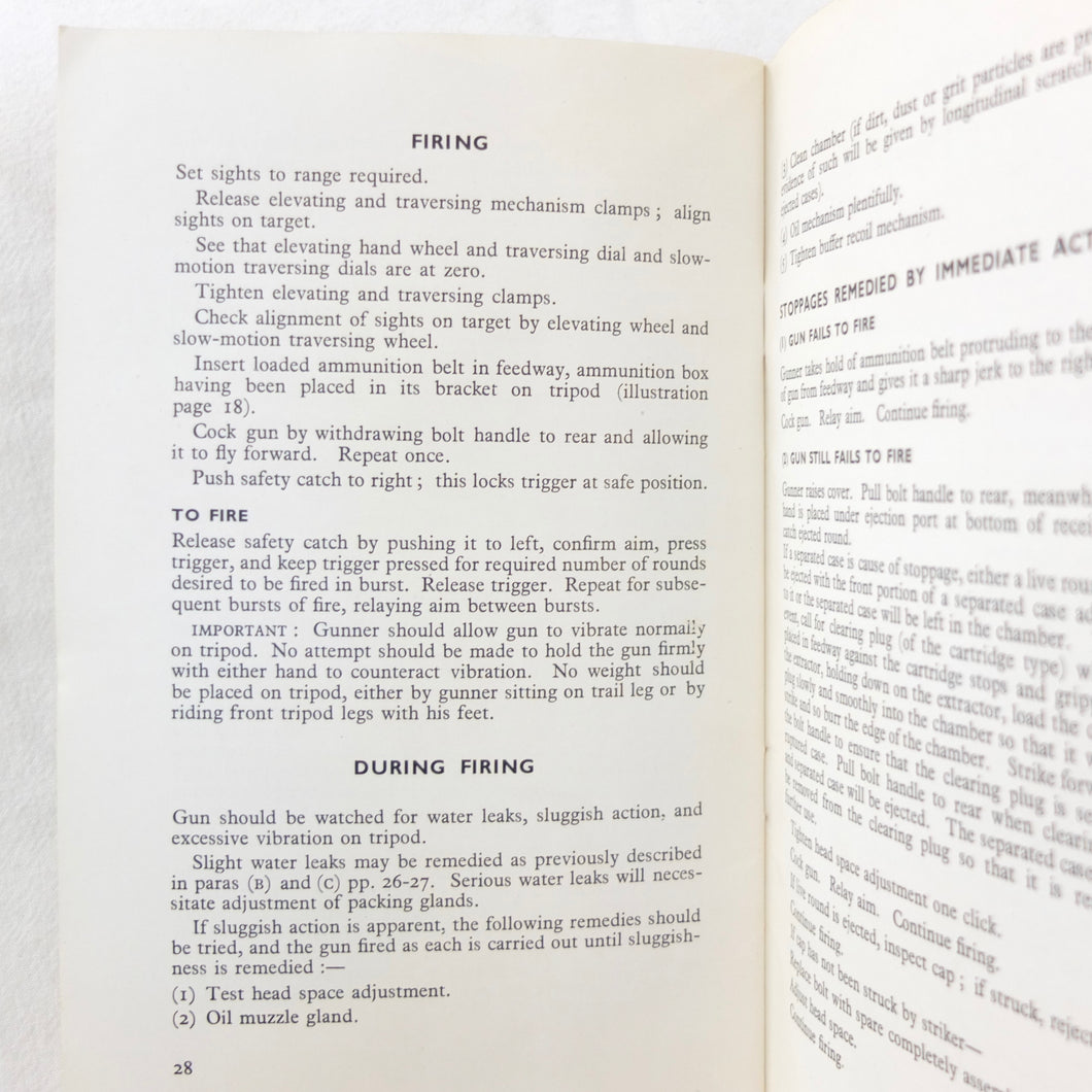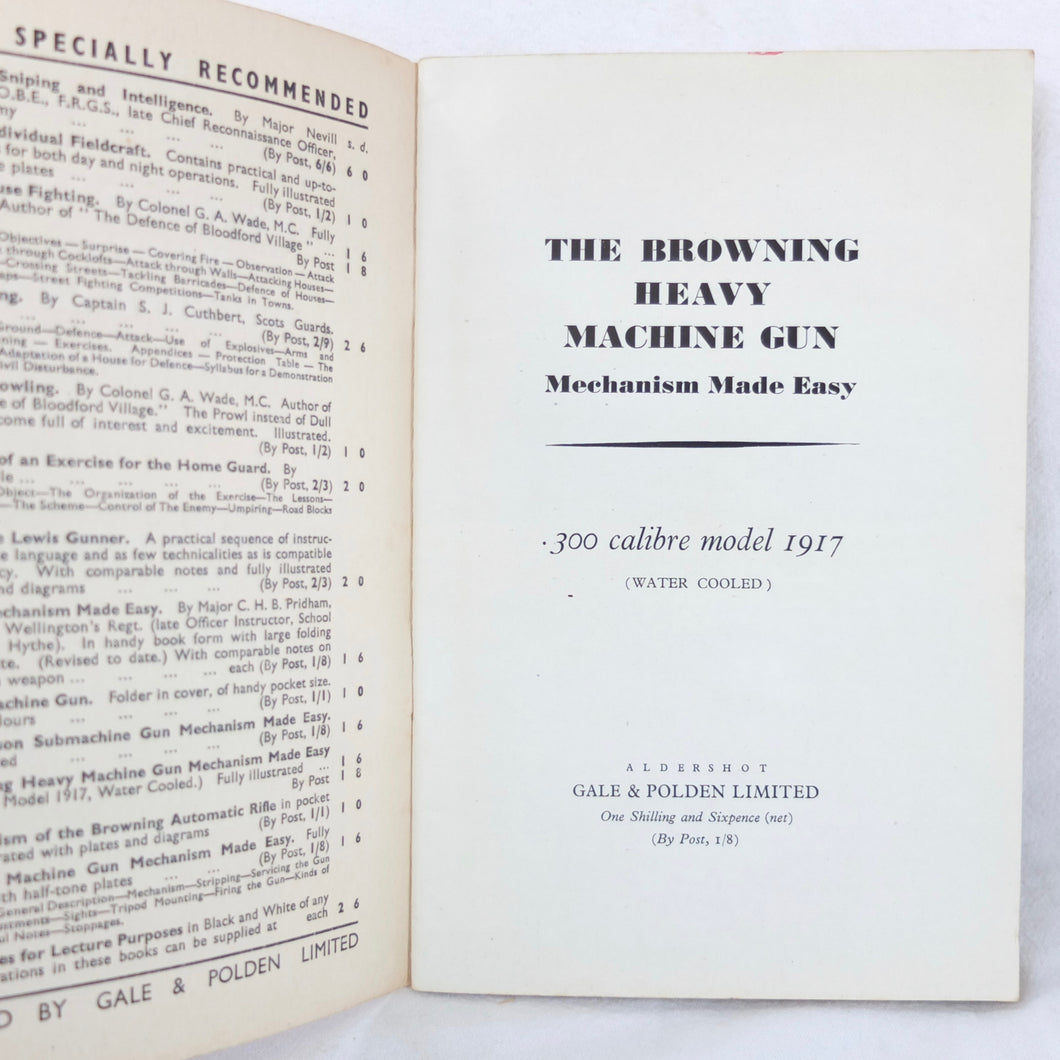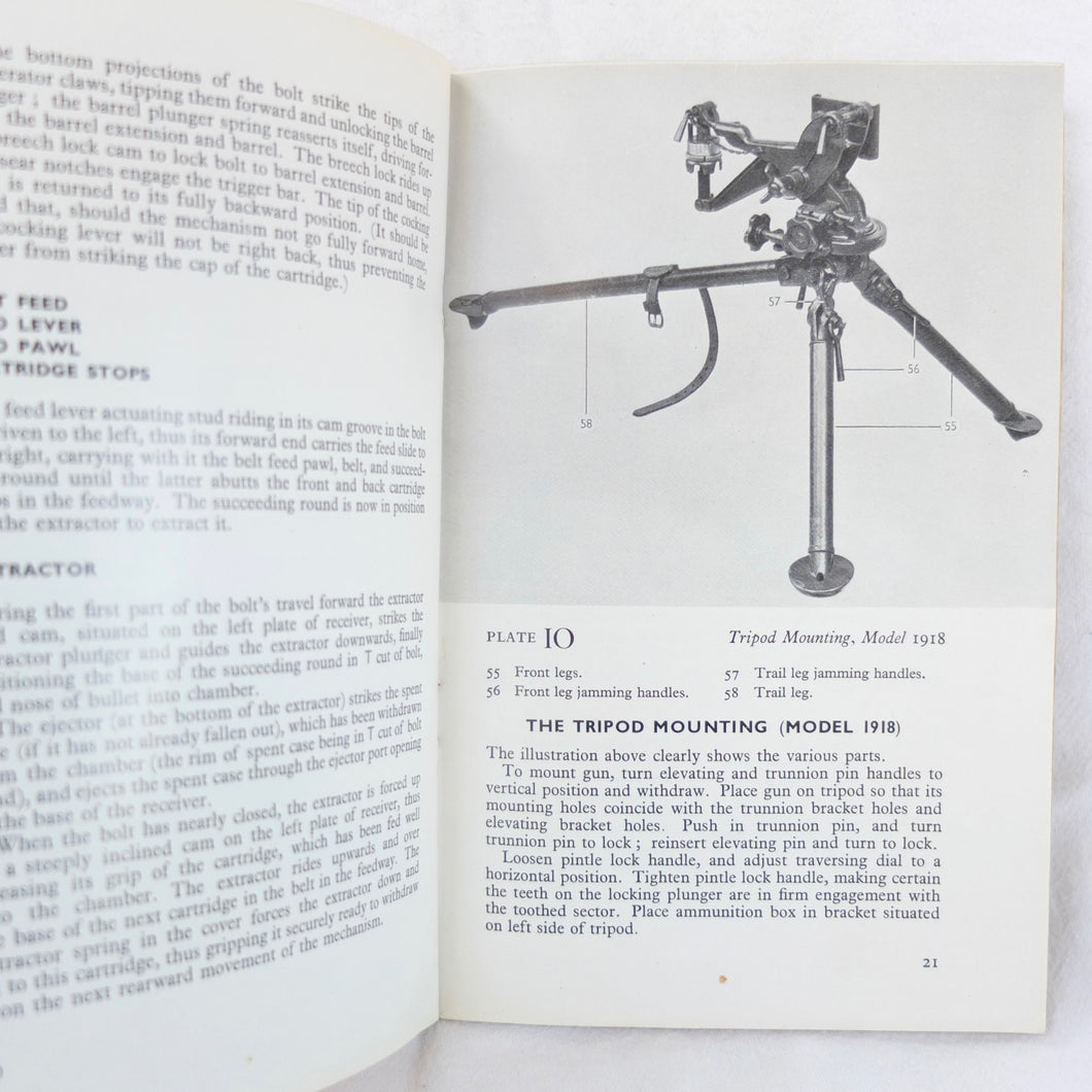 An original WW2 Browning Heavy Machine Gun handbook, published c.1942. Although undated, it was certainly published during WW2, as part of a series that also included the Vickers machine gun and the Thompson submachine gun. The book is a detailed guide to the mechanism, handling and maintenance of the Browning heavy machine gun as used by the allied armies during WW1 and WW2. Fully illustrated with photographs of the gun and its mechanism, this book will tell you all you need to know about the workings and use of the Model 1917 Browning Machine Gun