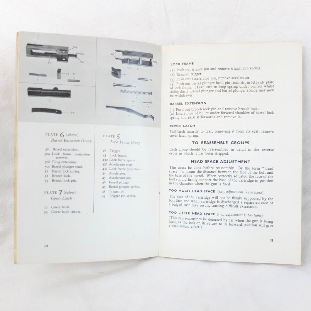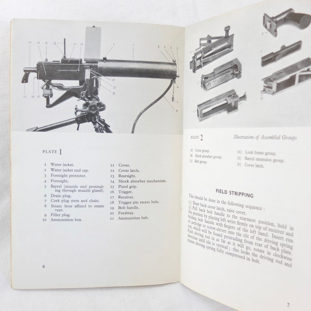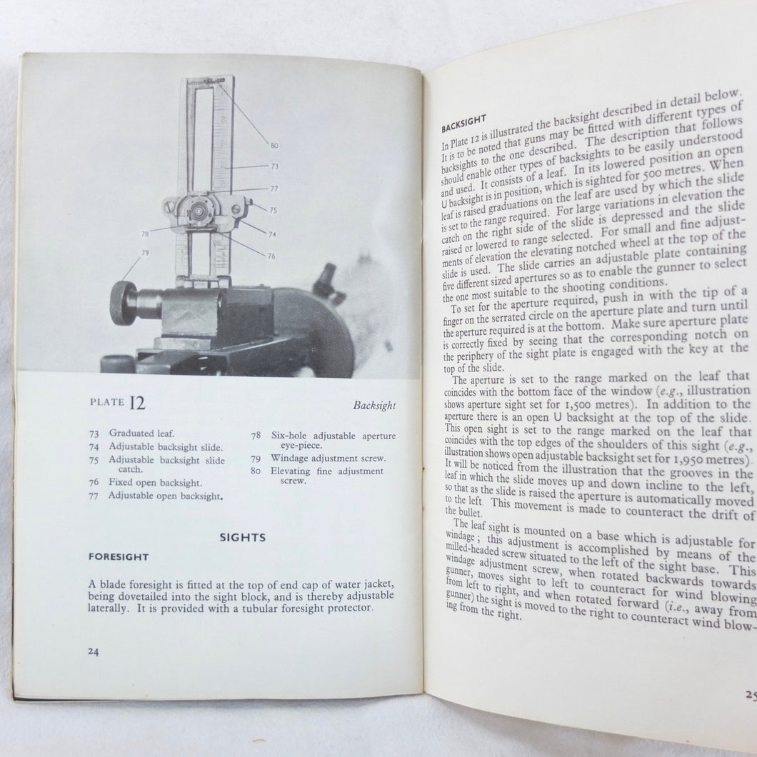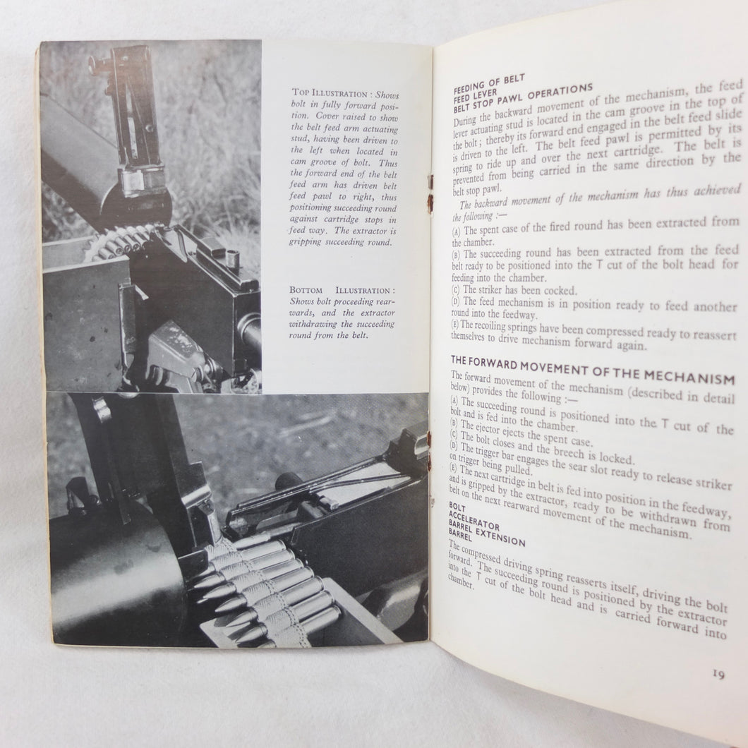 An original WW2 Browning Heavy Machine Gun handbook, published c.1942. Although undated, it was certainly published during WW2, as part of a series that also included the Vickers machine gun and the Thompson submachine gun. The book is a detailed guide to the mechanism, handling and maintenance of the Browning heavy machine gun as used by the allied armies during WW1 and WW2. Fully illustrated with photographs of the gun and its mechanism, this book will tell you all you need to know about the workings and use of the Model 1917 Browning Machine Gun
