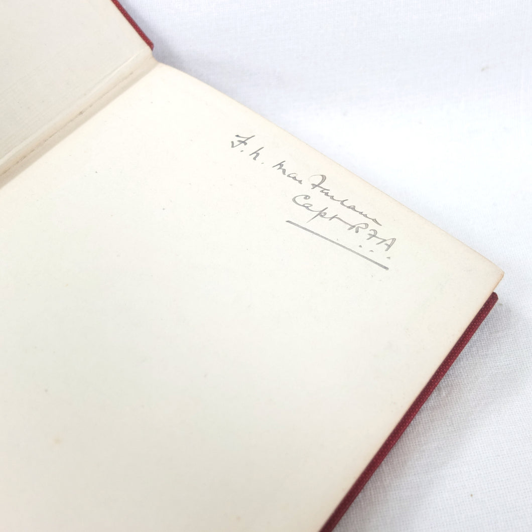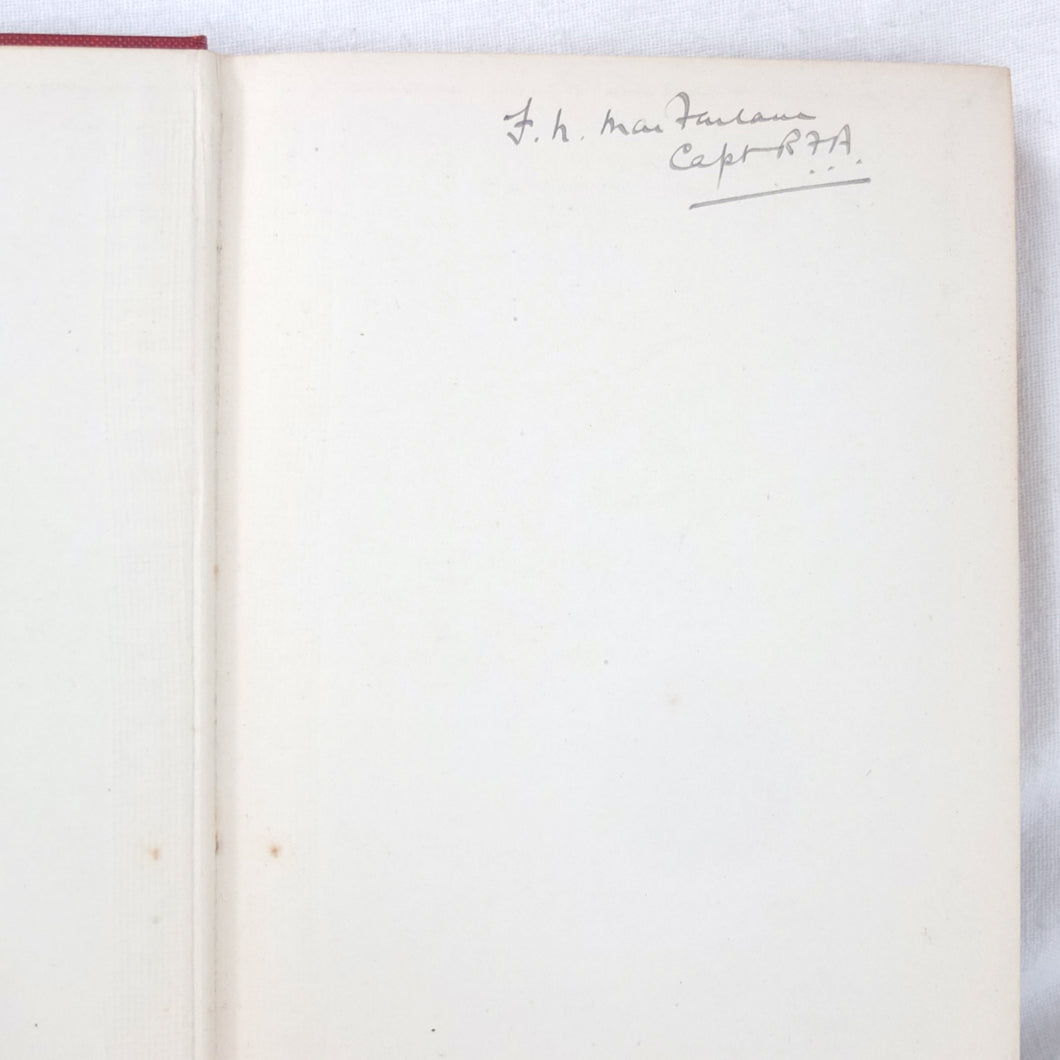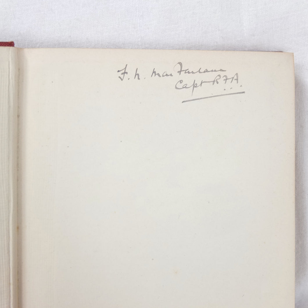The book is signed on the front endpapers by 'F. N. MacFarlane, Capt. R.F. A.' This is Frank Noel Mason Macfarlane - a British army officer, who would later be involved in a plot to assassinate Adolf Hitler in Berlin in April 1939.