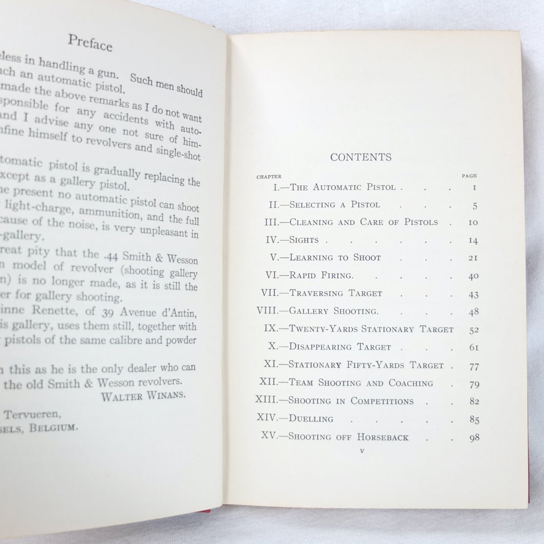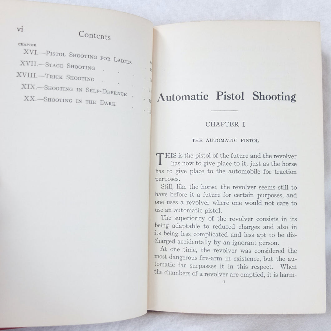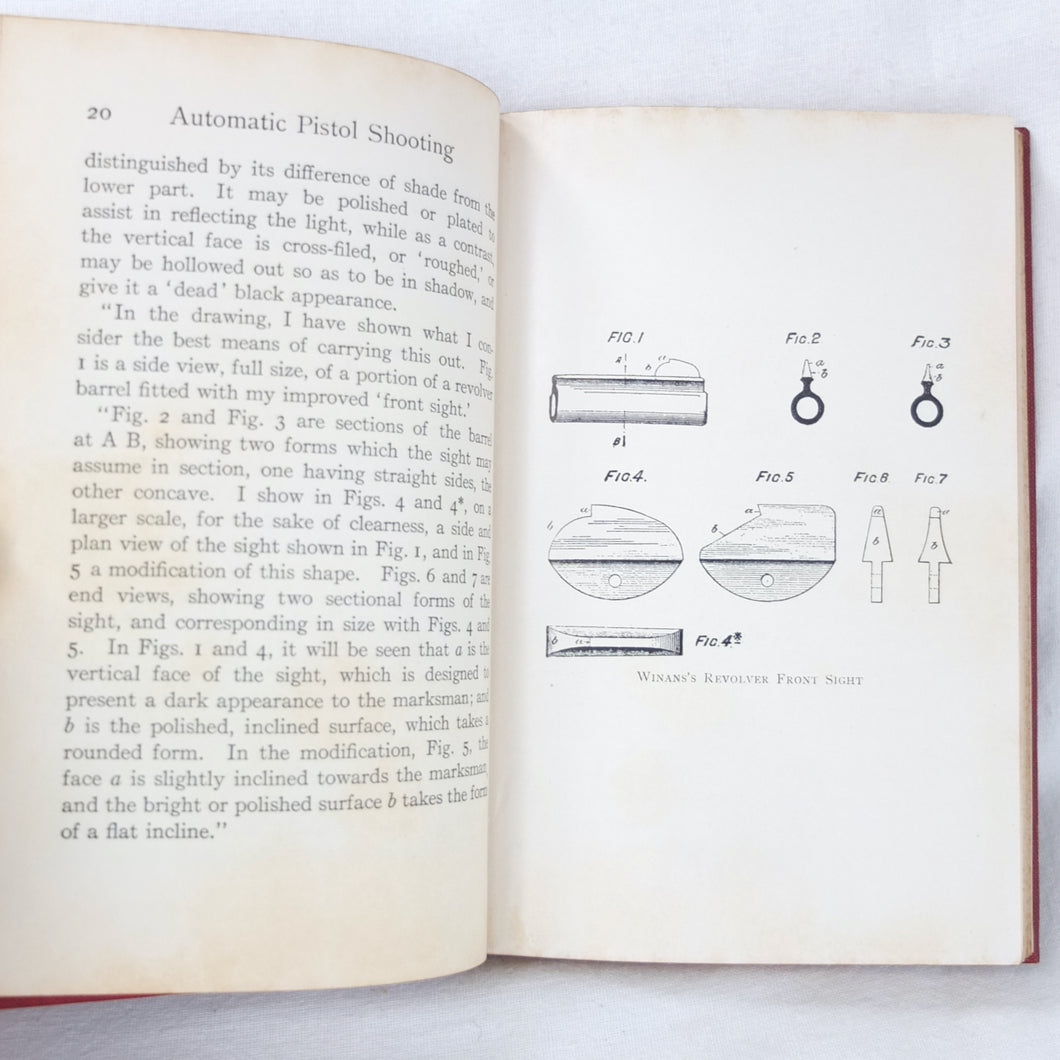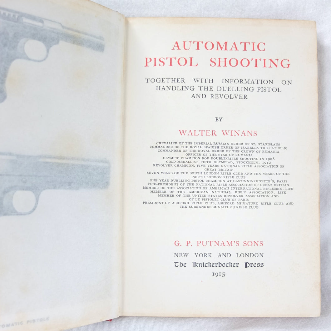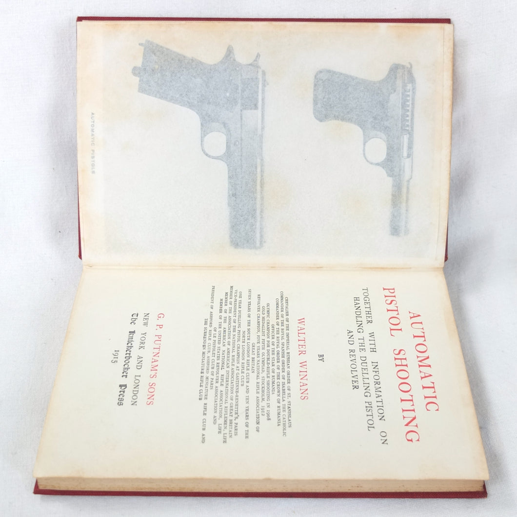 A classic automatic pistol manual published in 1915, written by the celebrated Olympic marksman, firearms expert and noted sculptor, Walter Winans. Automatic Pistol Shooting (1916) is a practical shooting manual covering the use of both the automatic pistol and the revolver. In Winan's opinion the automatic was the weapon of the future, although the revolver was by no means redundant in 1916. The book covers a wide range of topics, including selecting a pistol, cleaning, sights, rapid firing, target shooting, competion shooting, duelling and self defence. There are also sections on more unusual subjects such as stage shooting and trick shooting. The coverage of duelling now seems rather eccentric, at a time when the practice had been almost completely abandoned, and the automatic pistol was hardly a suitable weapon in such a contest. The pistols covered in the book include the 1911 Colt .45 Automatic, the Smith & Wesson revolver and the Savage .38 Automatic.