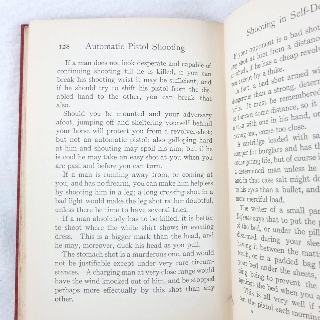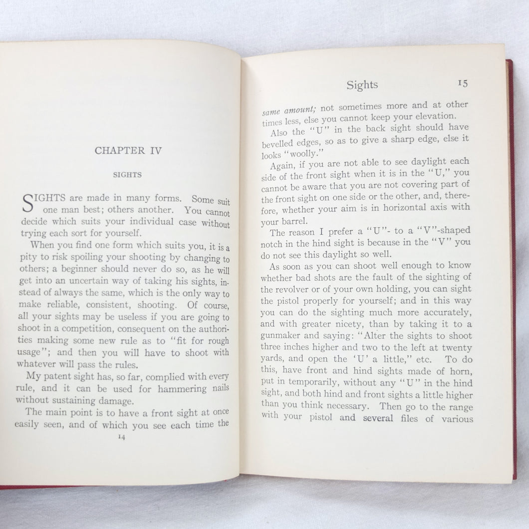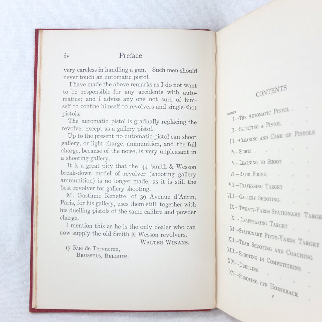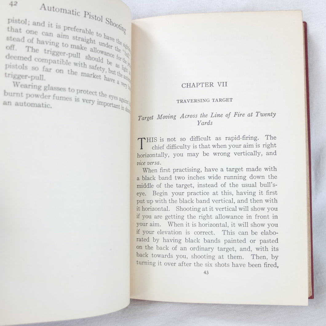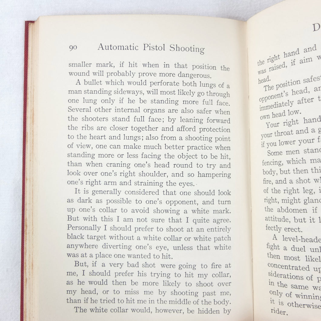 A classic automatic pistol manual published in 1915, written by the celebrated Olympic marksman, firearms expert and noted sculptor, Walter Winans. Automatic Pistol Shooting (1916) is a practical shooting manual covering the use of both the automatic pistol and the revolver. In Winan's opinion the automatic was the weapon of the future, although the revolver was by no means redundant in 1916. The book covers a wide range of topics, including selecting a pistol, cleaning, sights, rapid firing, target shooting, competion shooting, duelling and self defence. There are also sections on more unusual subjects such as stage shooting and trick shooting. The coverage of duelling now seems rather eccentric, at a time when the practice had been almost completely abandoned, and the automatic pistol was hardly a suitable weapon in such a contest. The pistols covered in the book include the 1911 Colt .45 Automatic, the Smith & Wesson revolver and the Savage .38 Automatic.