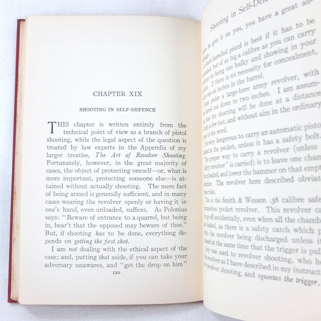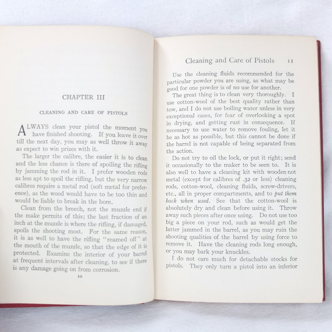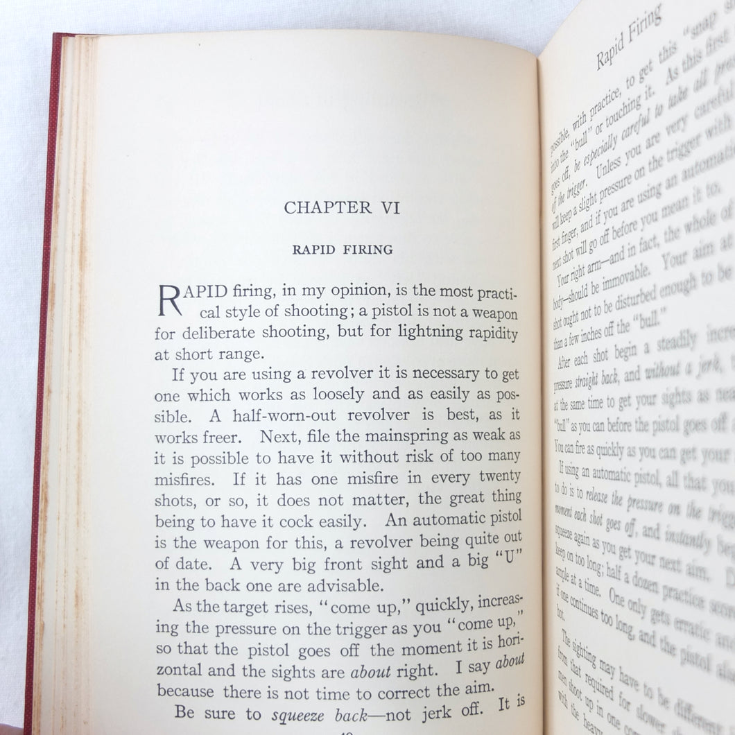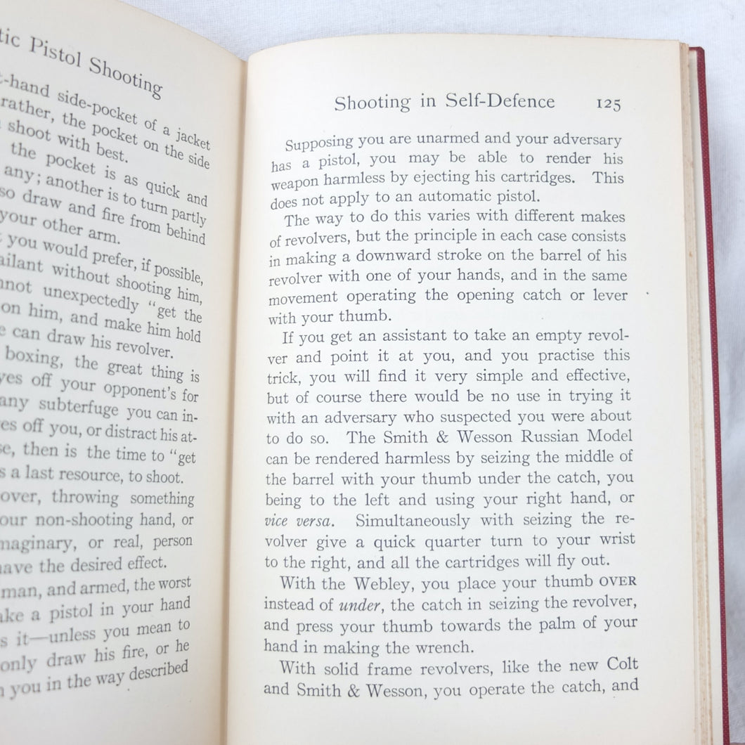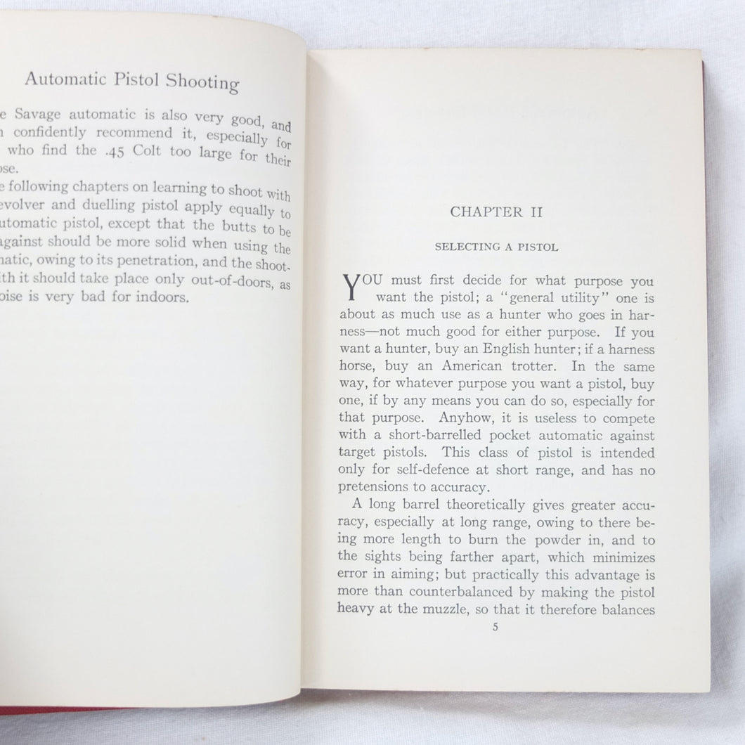 A classic automatic pistol manual published in 1915, written by the celebrated Olympic marksman, firearms expert and noted sculptor, Walter Winans. Automatic Pistol Shooting (1916) is a practical shooting manual covering the use of both the automatic pistol and the revolver. In Winan's opinion the automatic was the weapon of the future, although the revolver was by no means redundant in 1916. The book covers a wide range of topics, including selecting a pistol, cleaning, sights, rapid firing, target shooting, competion shooting, duelling and self defence. There are also sections on more unusual subjects such as stage shooting and trick shooting. The coverage of duelling now seems rather eccentric, at a time when the practice had been almost completely abandoned, and the automatic pistol was hardly a suitable weapon in such a contest. The pistols covered in the book include the 1911 Colt .45 Automatic, the Smith & Wesson revolver and the Savage .38 Automatic.