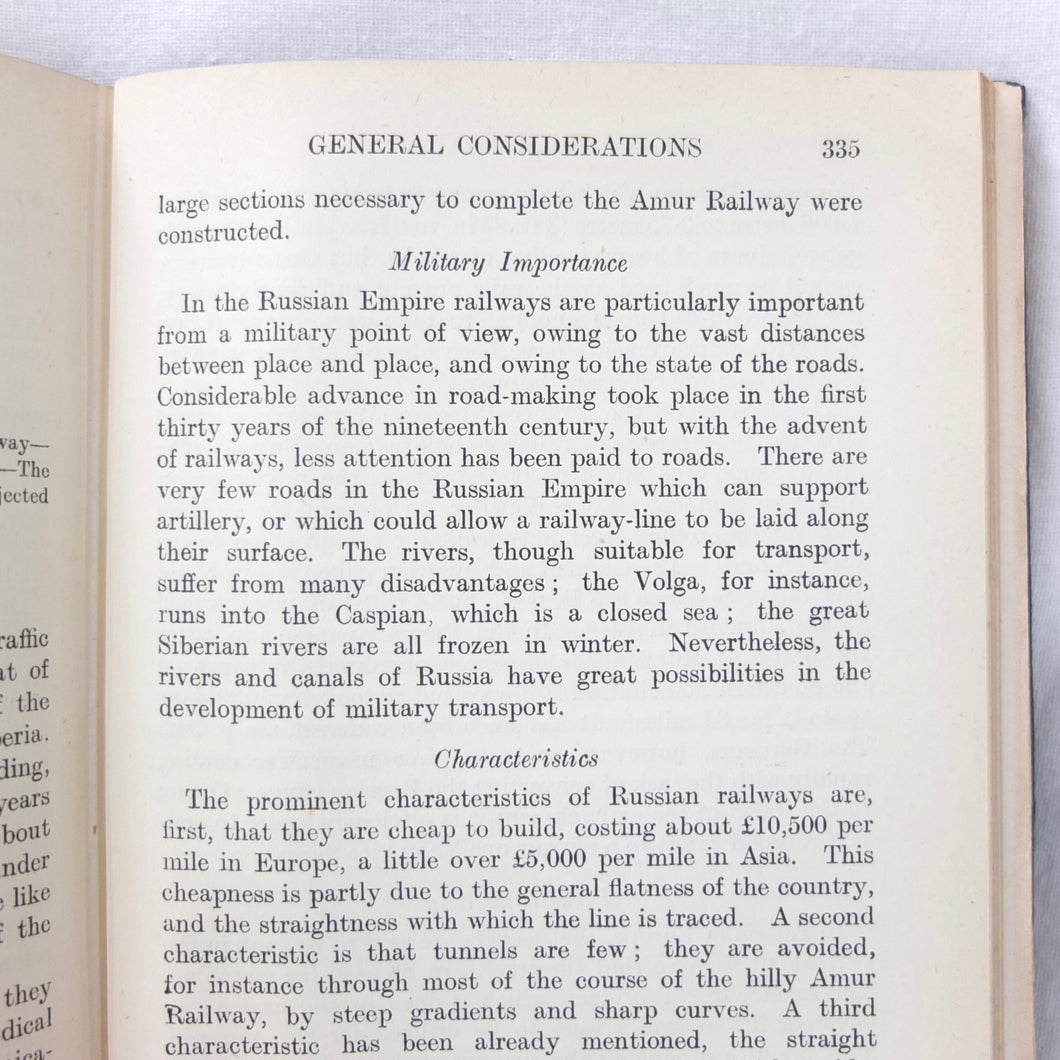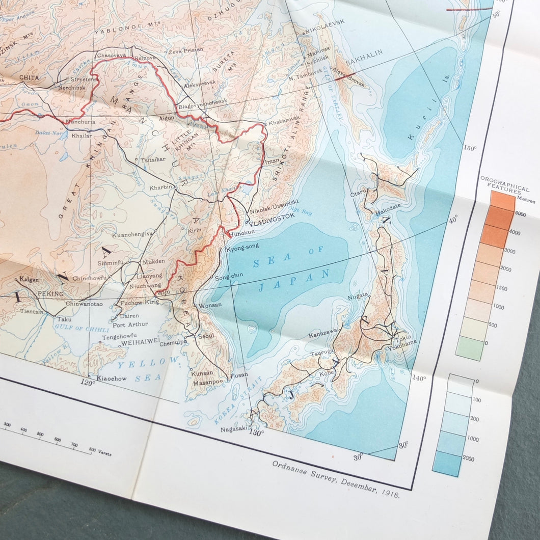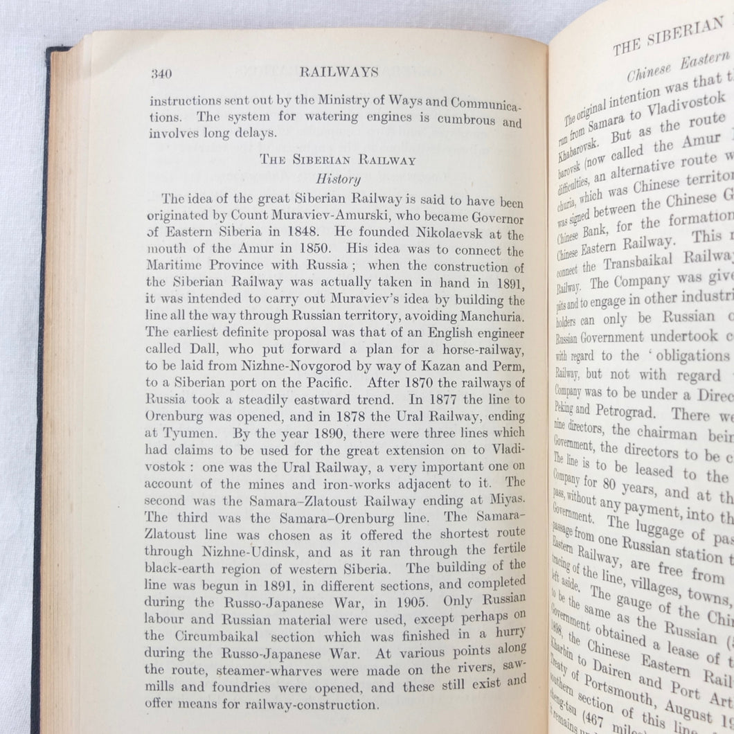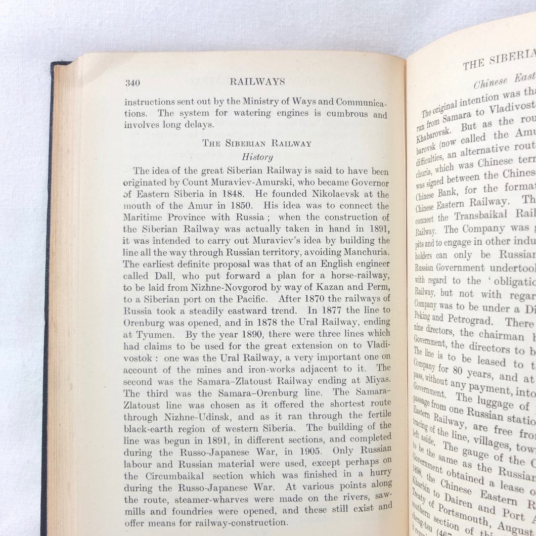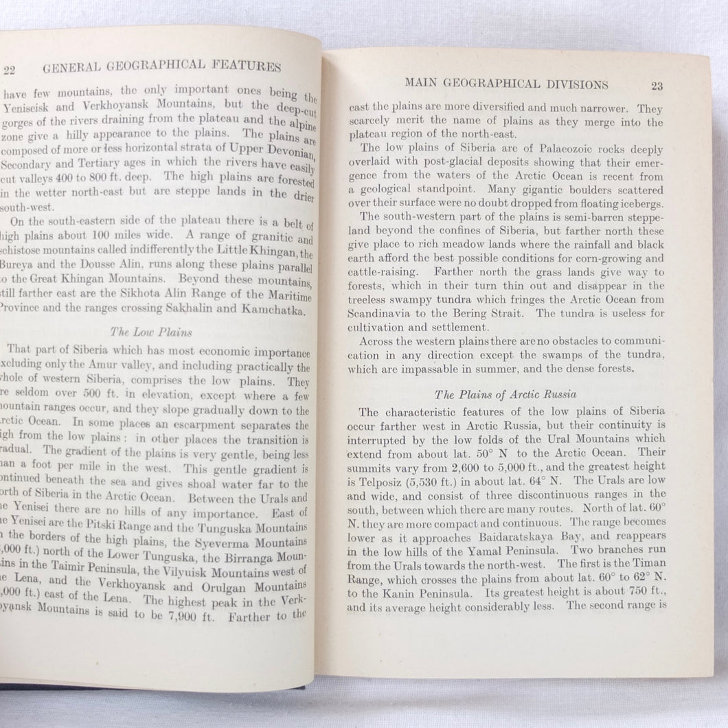 A very rare, original, 1918 edition of volume one of the British Naval Staff Intelligence Department Handbook of Siberia and Arctic Russia. Classified as secret, and with a very restricted circulation, this handbook was part of a three volume set produced during WW1 for official use only. Its use was covered by the Official Secrets Act. It is a very detailed and comprehensive survey of all that was known at the time about the topography, peoples, customs, climate, religions, railways, transport, agriculture, natural resources, and industry of Siberia and Arctic Russia in 1918. It comes complete with the large coloured folding map of Siberia (53cm x 66cm) in a pocket at the rear. An invaluable reference work for anyone interested in this region during the First World War.