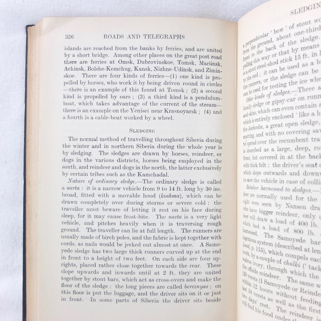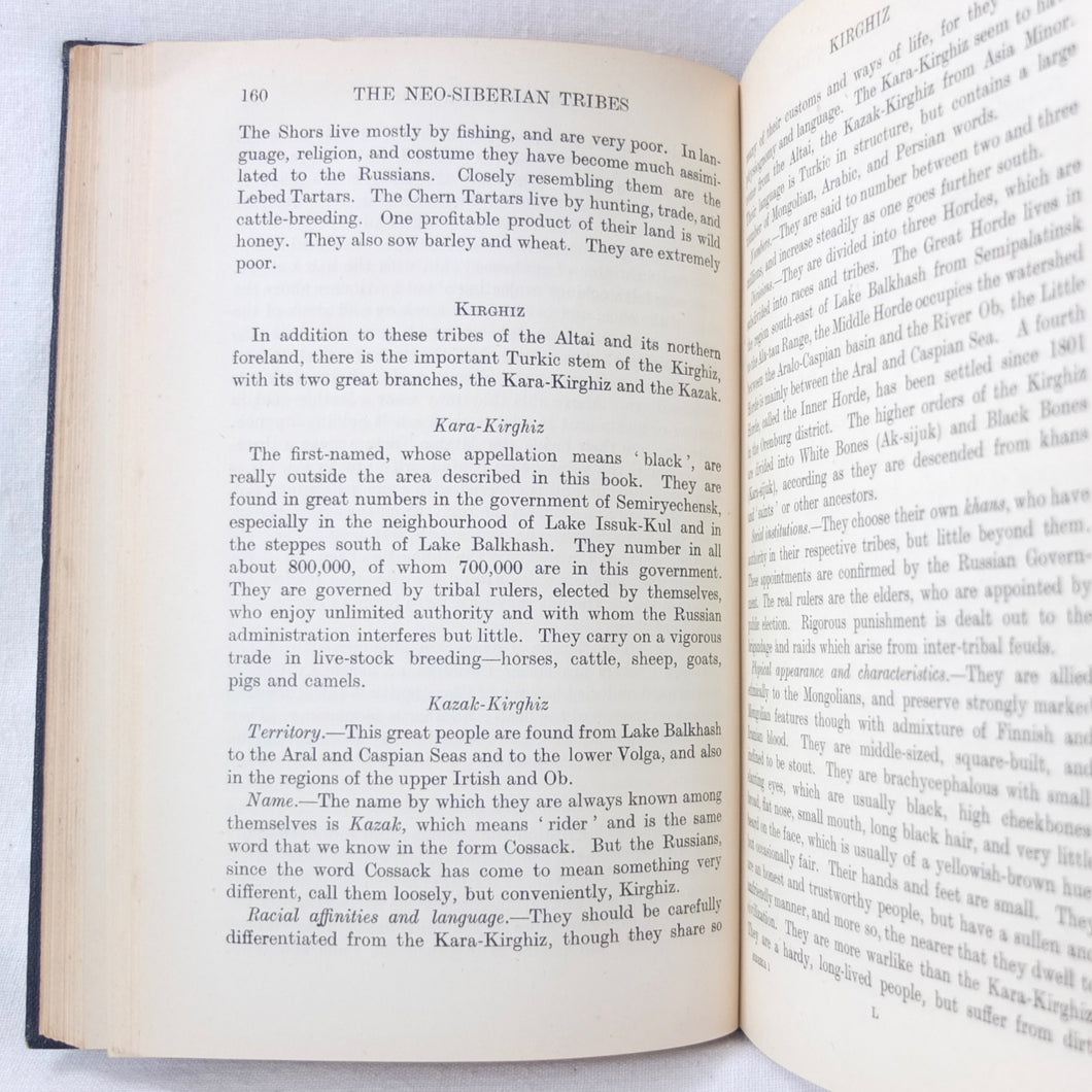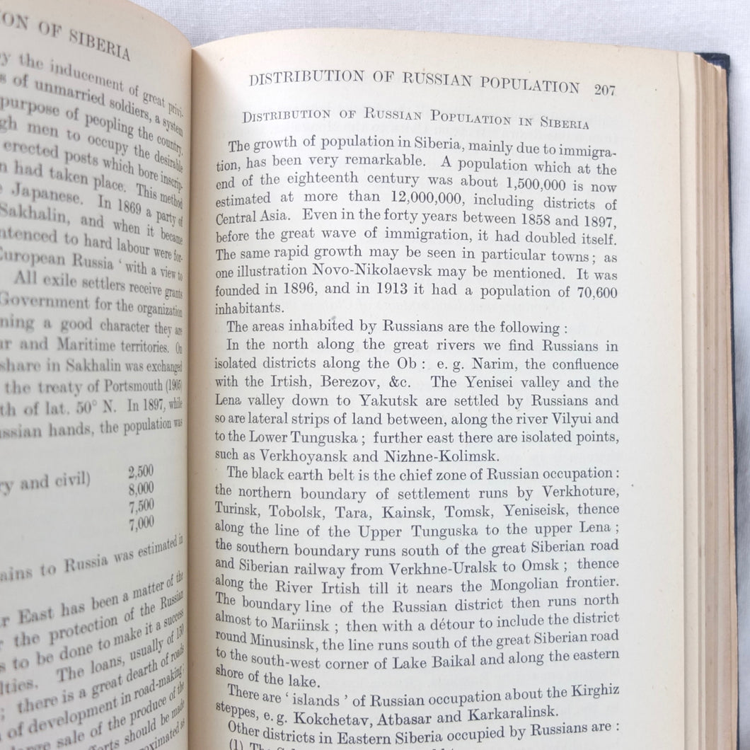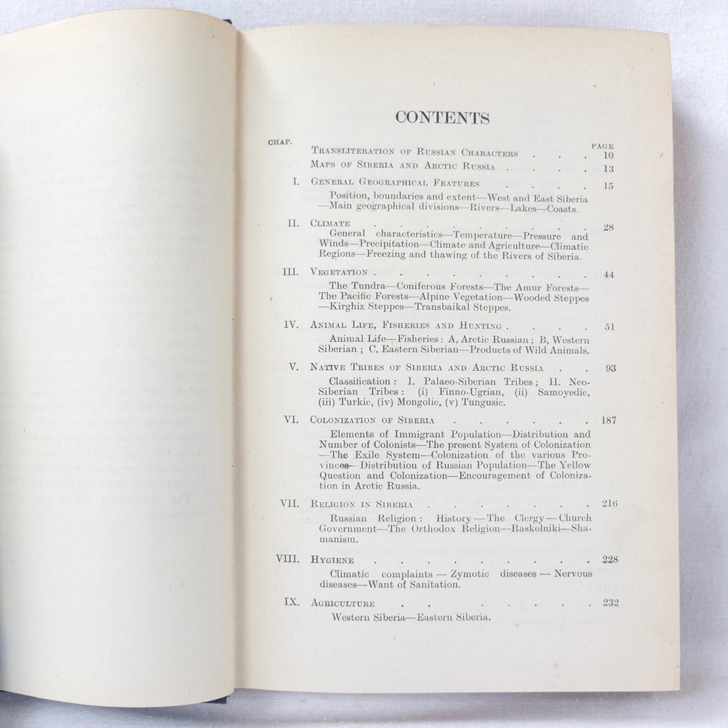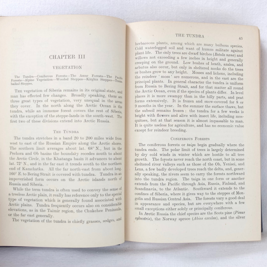 In very good condition. The boards are in very good condition, with minor signs of wear, the remains of an index number at the bottom of the spine, and a small gilt library stamp to the front board. The binding and hinges are very good and secure. The text is in very good condition, with university library ‘Withdrawn’ ink stamps and labels to the front endpapers and title page. The map of Siberia in the pocket at the rear is in excellent condition.