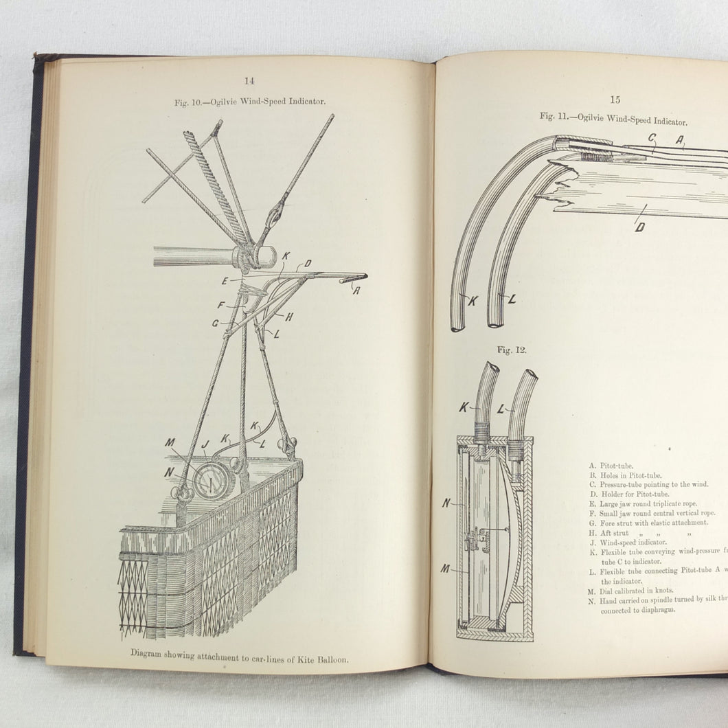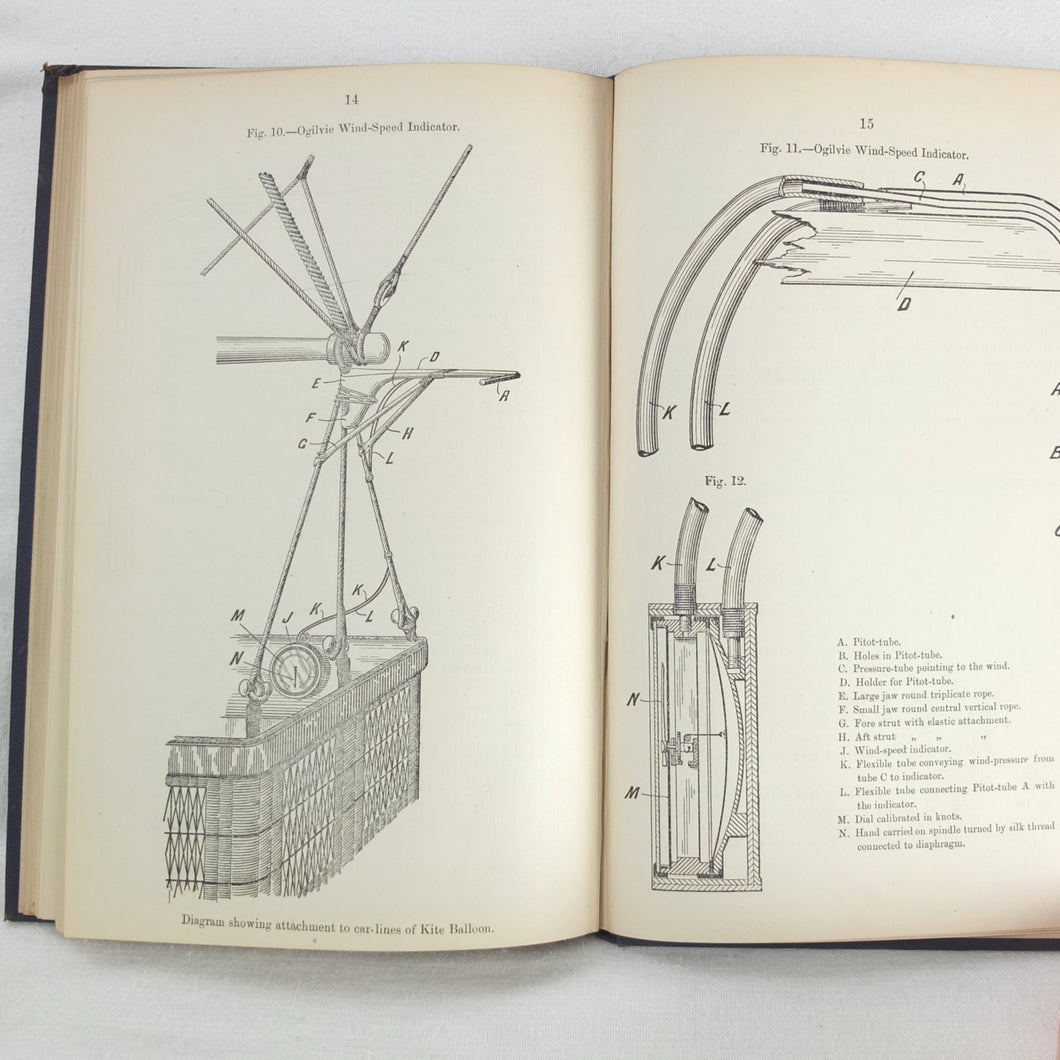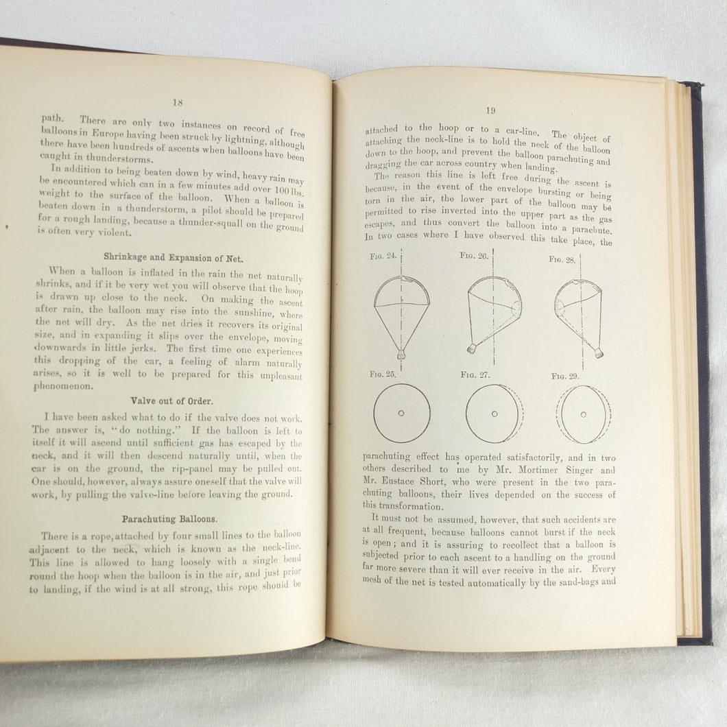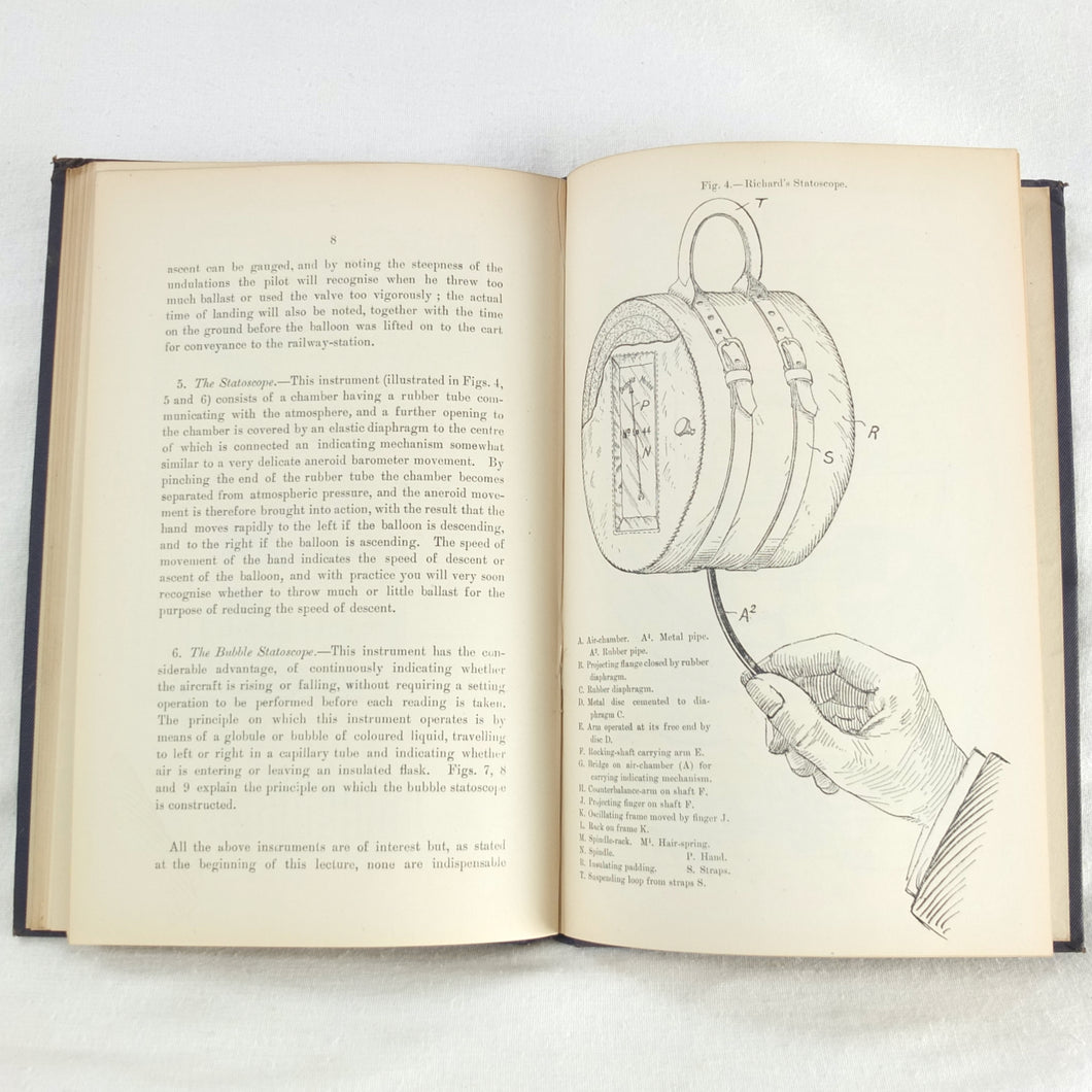 Theory of Ballooning (1918) is a collection of lectures on military ballooning which were delivered to R.N.A.S. and R.A.F. officers at Roehampton Royal Naval Air Service (later R.A.F.) Station between January 1916 and October 1918. The book was reprinted several times during WW1 - this is the 8th edition. It includes details of the principles and practice of ballooning, military Kite-Balloons, and ballooning & aviation instruments, including air speed indicators, barometers, barographs and statoscopes. Well illustrated with line drawings and diagrams, this is an important and very early work on the military use of balloons.