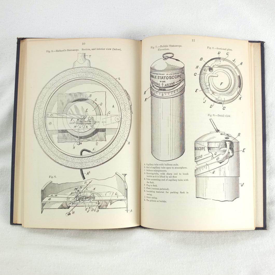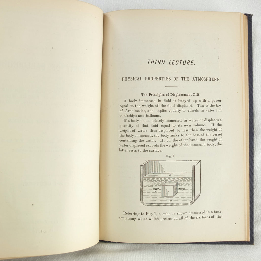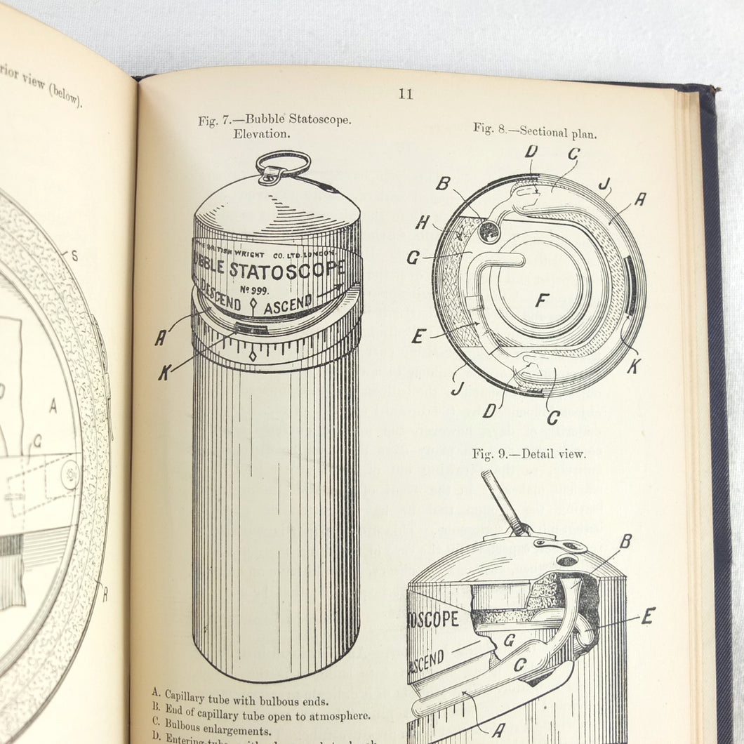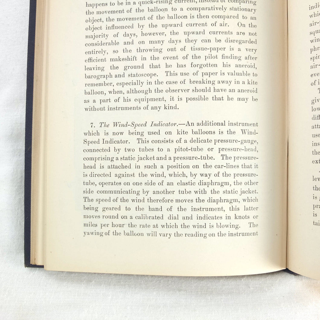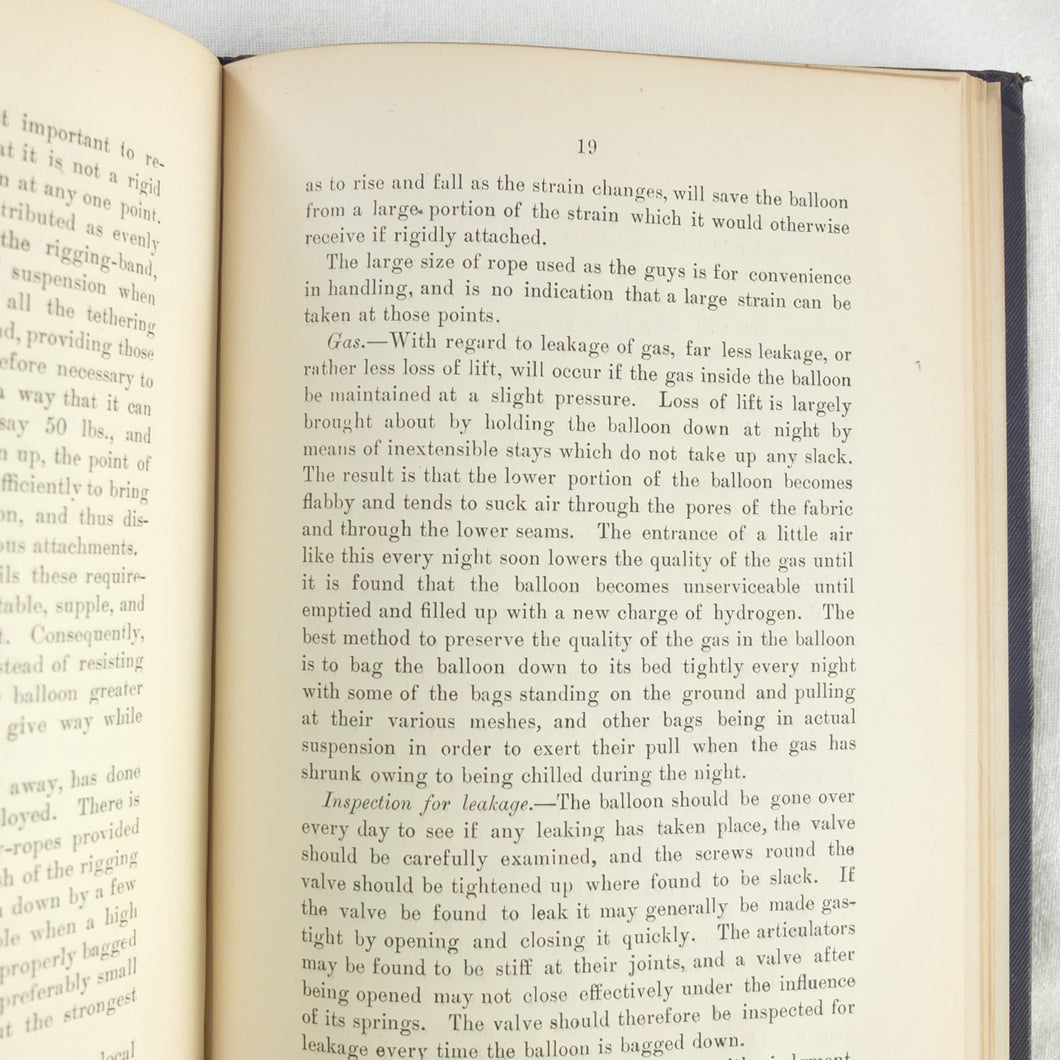 Theory of Ballooning (1918) is a collection of lectures on military ballooning which were delivered to R.N.A.S. and R.A.F. officers at Roehampton Royal Naval Air Service (later R.A.F.) Station between January 1916 and October 1918. The book was reprinted several times during WW1 - this is the 8th edition. It includes details of the principles and practice of ballooning, military Kite-Balloons, and ballooning & aviation instruments, including air speed indicators, barometers, barographs and statoscopes. Well illustrated with line drawings and diagrams, this is an important and very early work on the military use of balloons.