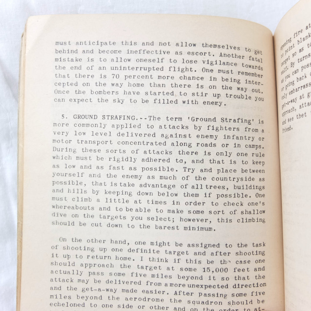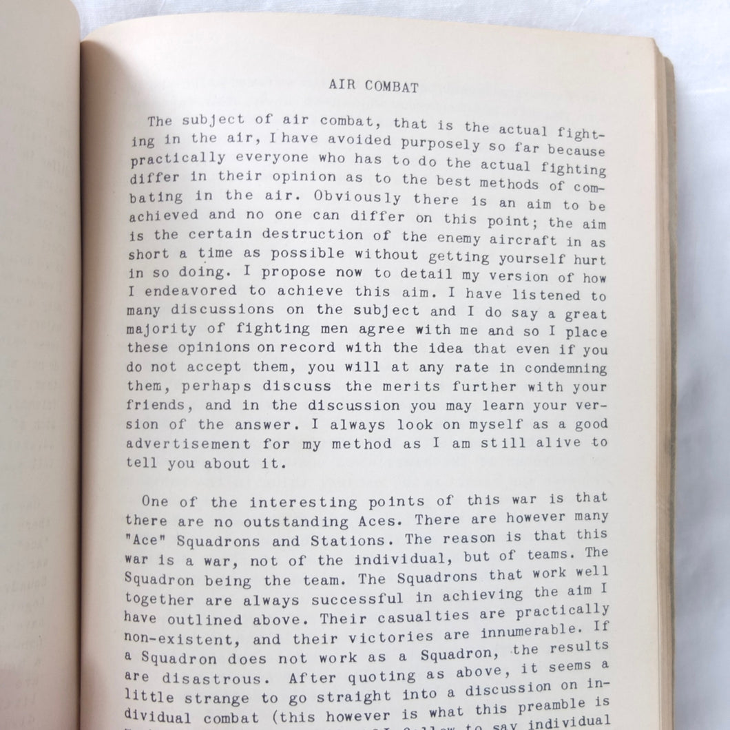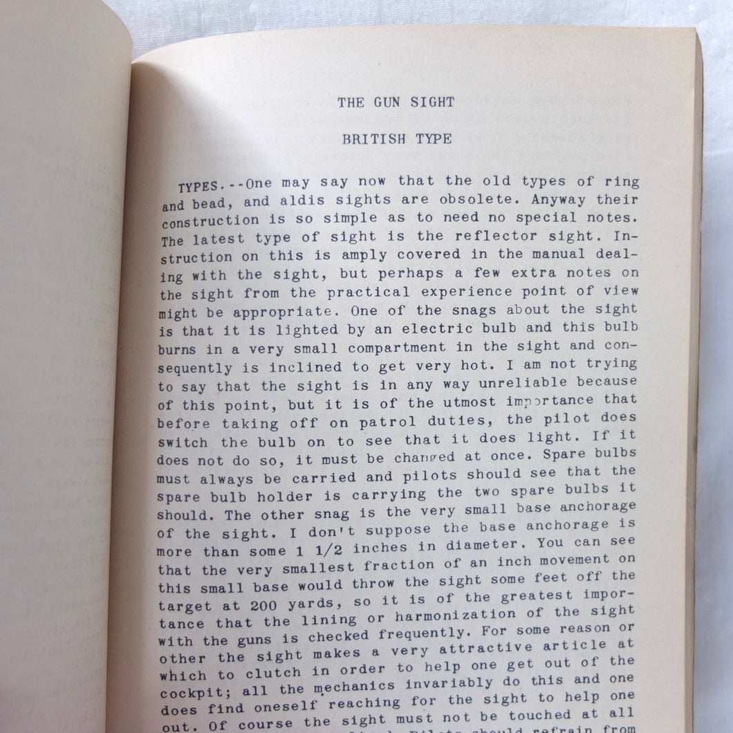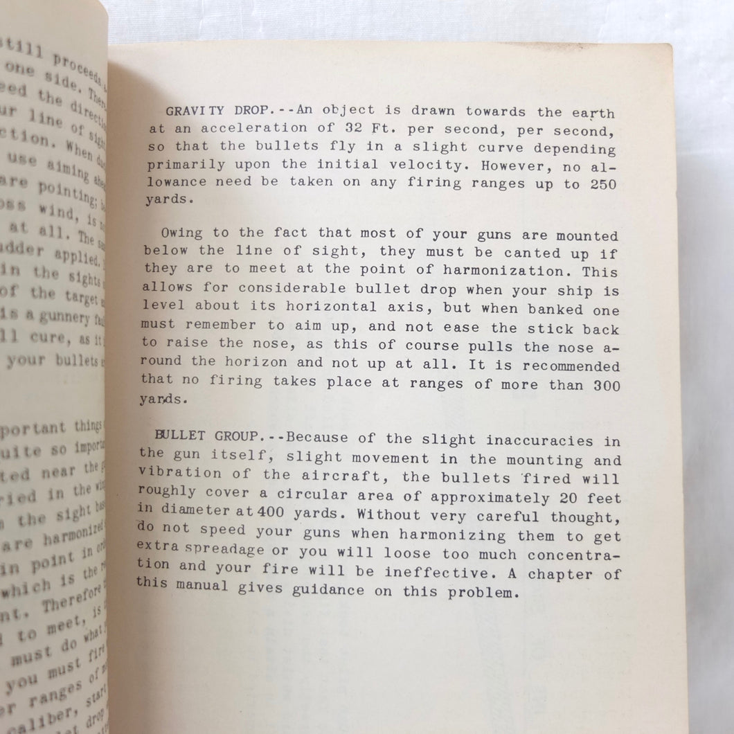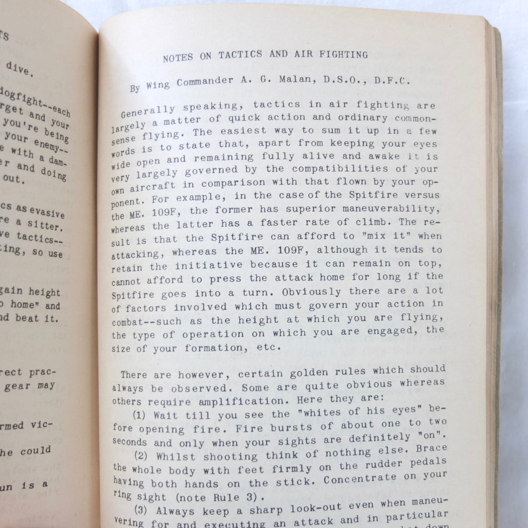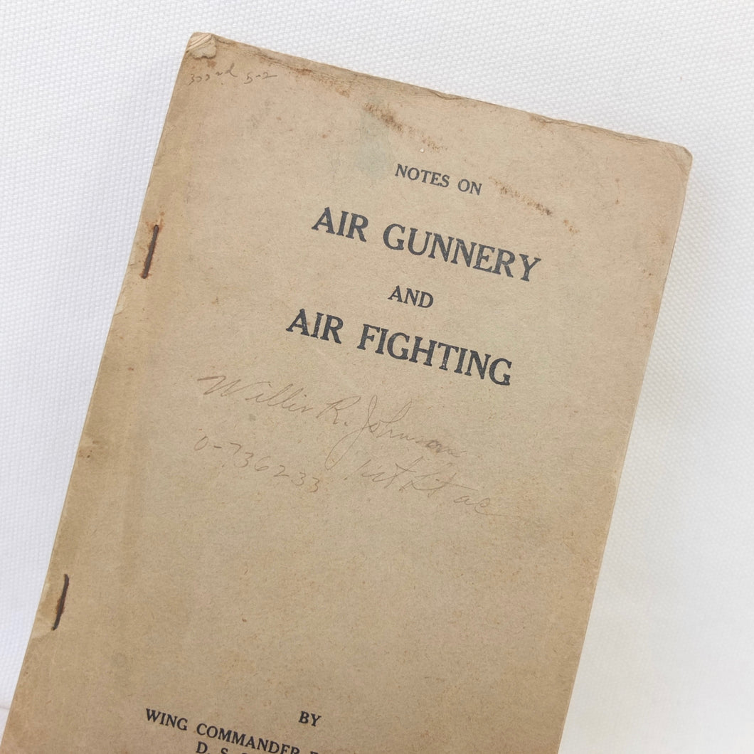 A very rare original WW2 Air Gunnery manual, published in 1943. Written by RAF Wing Commander E. M. Donaldson, a battle of Britain fighter ace, this is a detailed, practical guide to aerial gunnery and air combat for RAF and Allied air forces fighter pilots. It was produced while Donaldson was working with the USAAF as a senior instructor in air combat flying. The book includes instructions on fighter squadron deployment, escort of bombers, ground strafing, night operations, firepower, anti-aircraft fire, sighting, estimating range, angles of attack, and deflection shooting. The book also includes 'Sailor' Malan's famous 'Golden Rules' on air fighting, and much other very useful advice on all aspects of aerial combat.