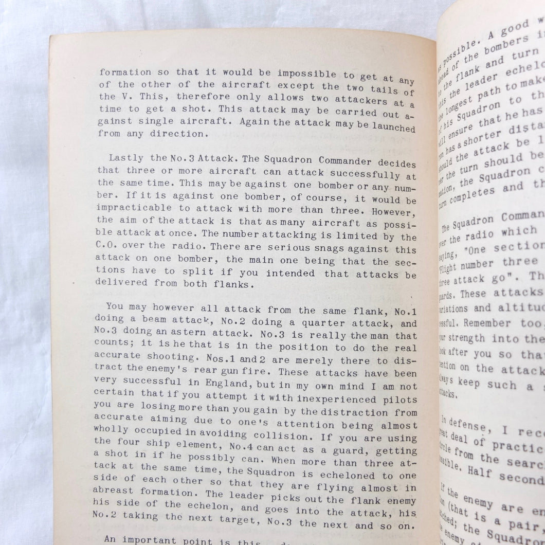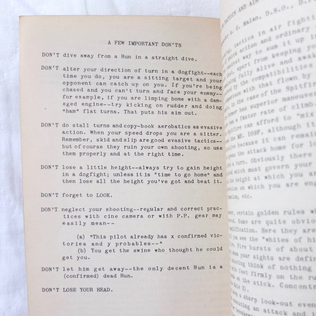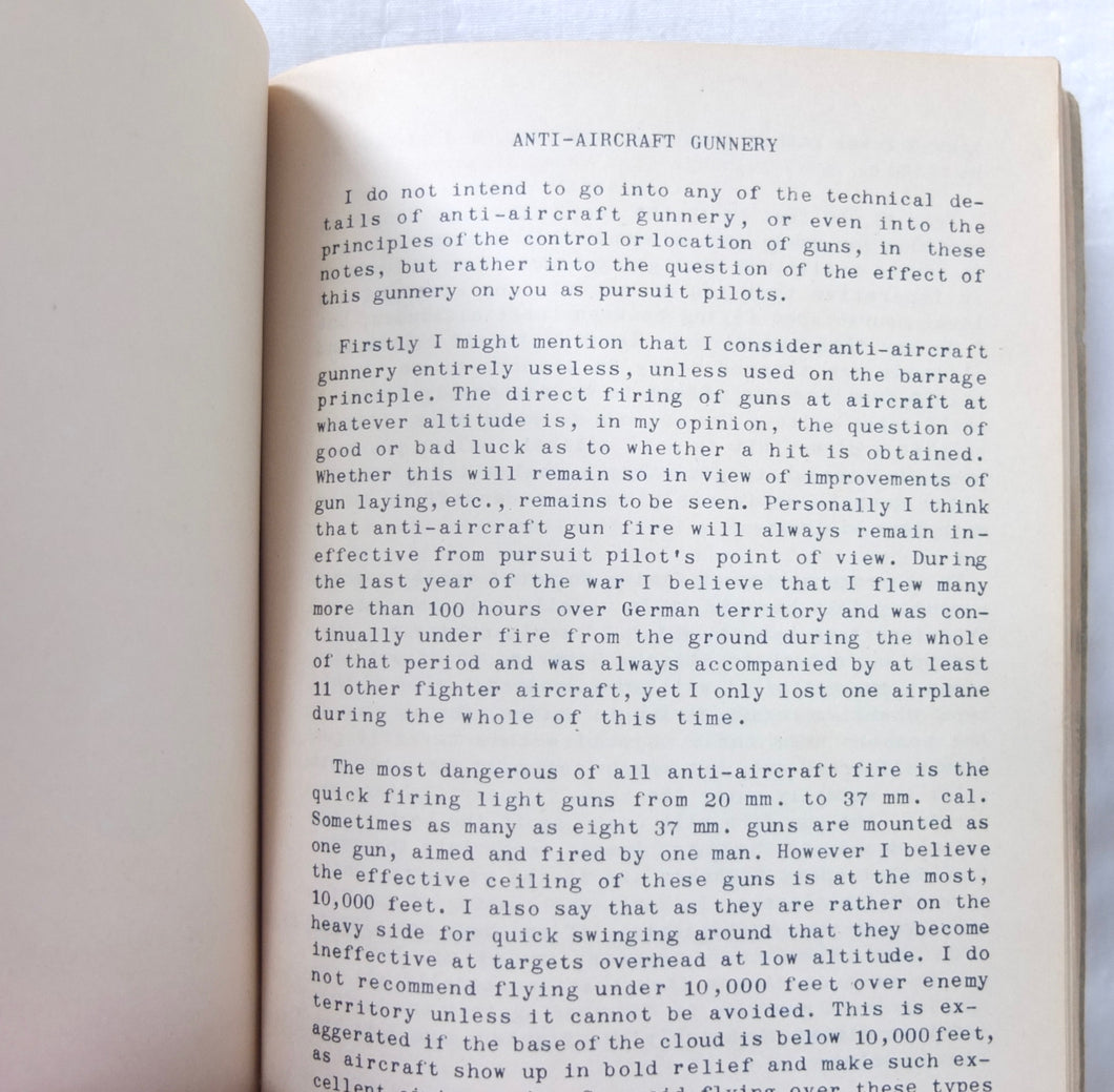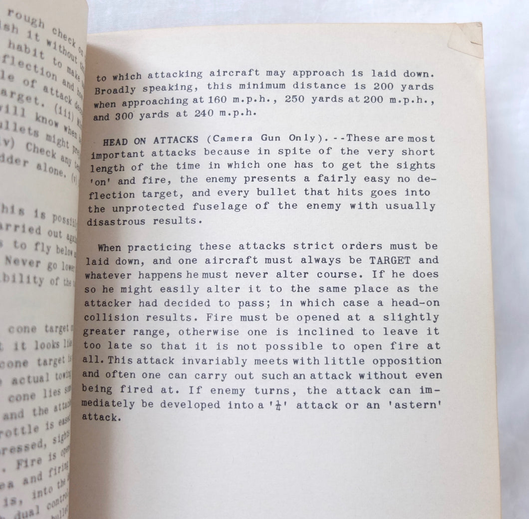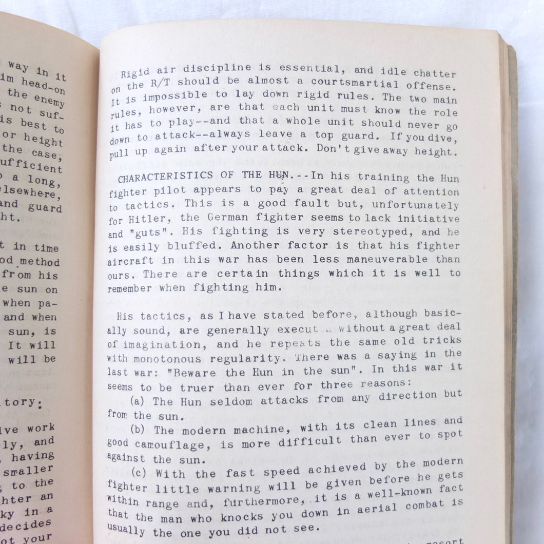 A very rare original WW2 Air Gunnery manual, published in 1943. Written by RAF Wing Commander E. M. Donaldson, a battle of Britain fighter ace, this is a detailed, practical guide to aerial gunnery and air combat for RAF and Allied air forces fighter pilots. It was produced while Donaldson was working with the USAAF as a senior instructor in air combat flying. The book includes instructions on fighter squadron deployment, escort of bombers, ground strafing, night operations, firepower, anti-aircraft fire, sighting, estimating range, angles of attack, and deflection shooting. The book also includes 'Sailor' Malan's famous 'Golden Rules' on air fighting, and much other very useful advice on all aspects of aerial combat.