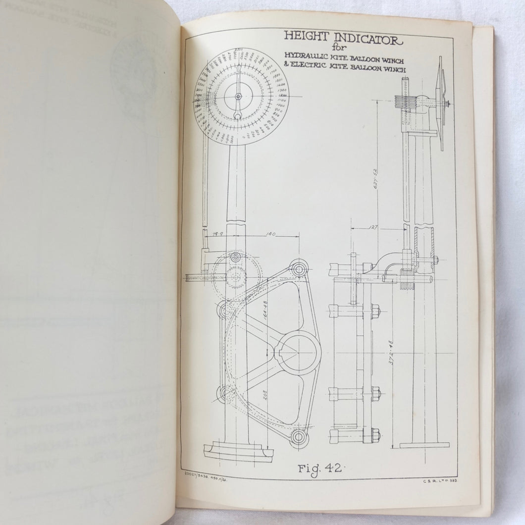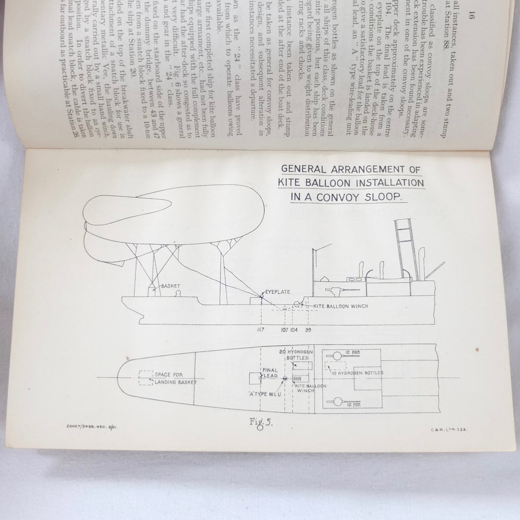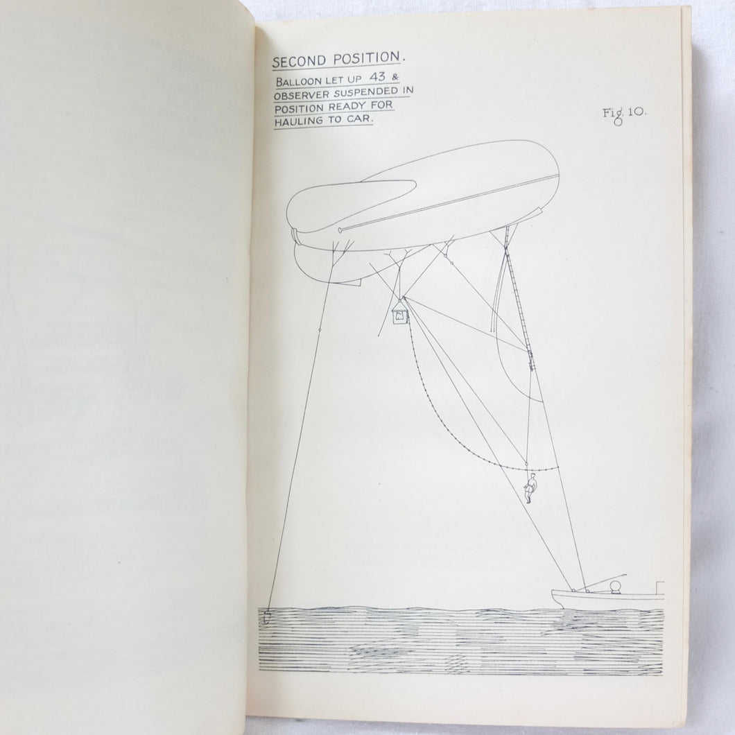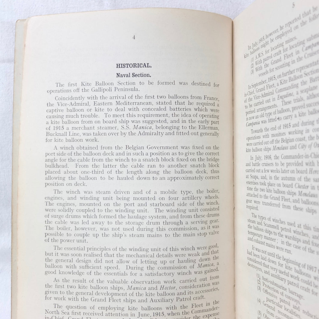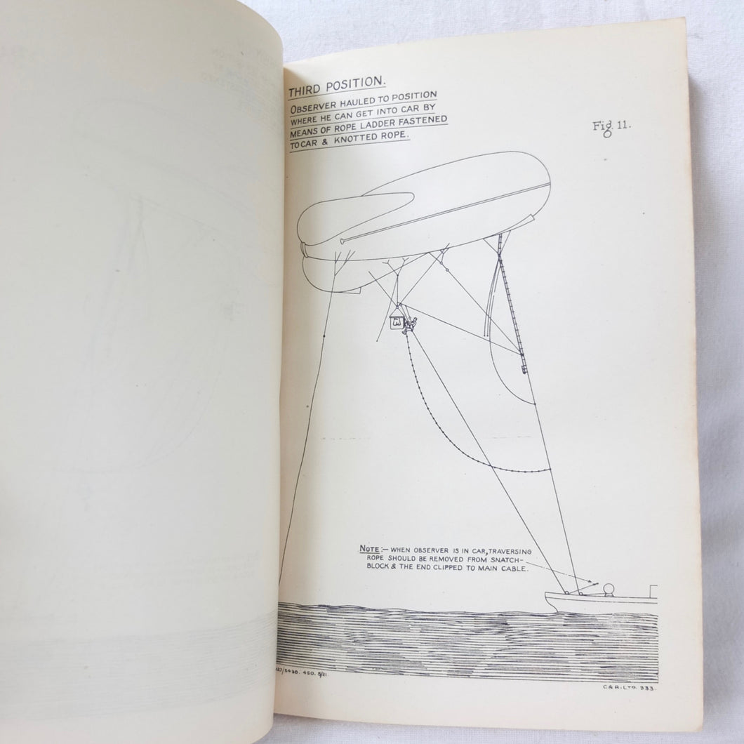 A very rare original WW1-era Air Ministry Kite Balloon Winch Manual, covering the various different winches and associated equipment used by the RAF at the end of WW1. The manual covers the use and maintenance of RAF winches, for both land based and naval operations. Subjects covered include: the history of naval and military kite balloons, kite balloon installation in H. M. Ships, hydraulic wincjes, winding units, standard steam engines, transferring winch, electric winch, gears, wire-leading units, snatch blocks, instruments, Royal Air Force Balloon winches: Scammell and Caquot types. The book is well illustrated with 48 photographs and diagrams of RAF kite balloons, winches and engines. There is an ink stamp of 'No. 901 Squadron, A.A.F., Kidbrooke' on the front cover