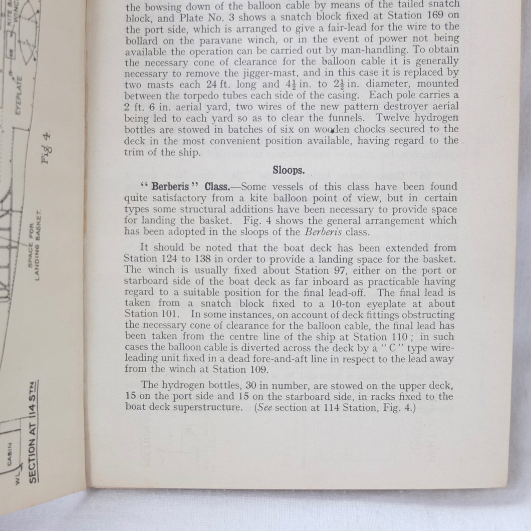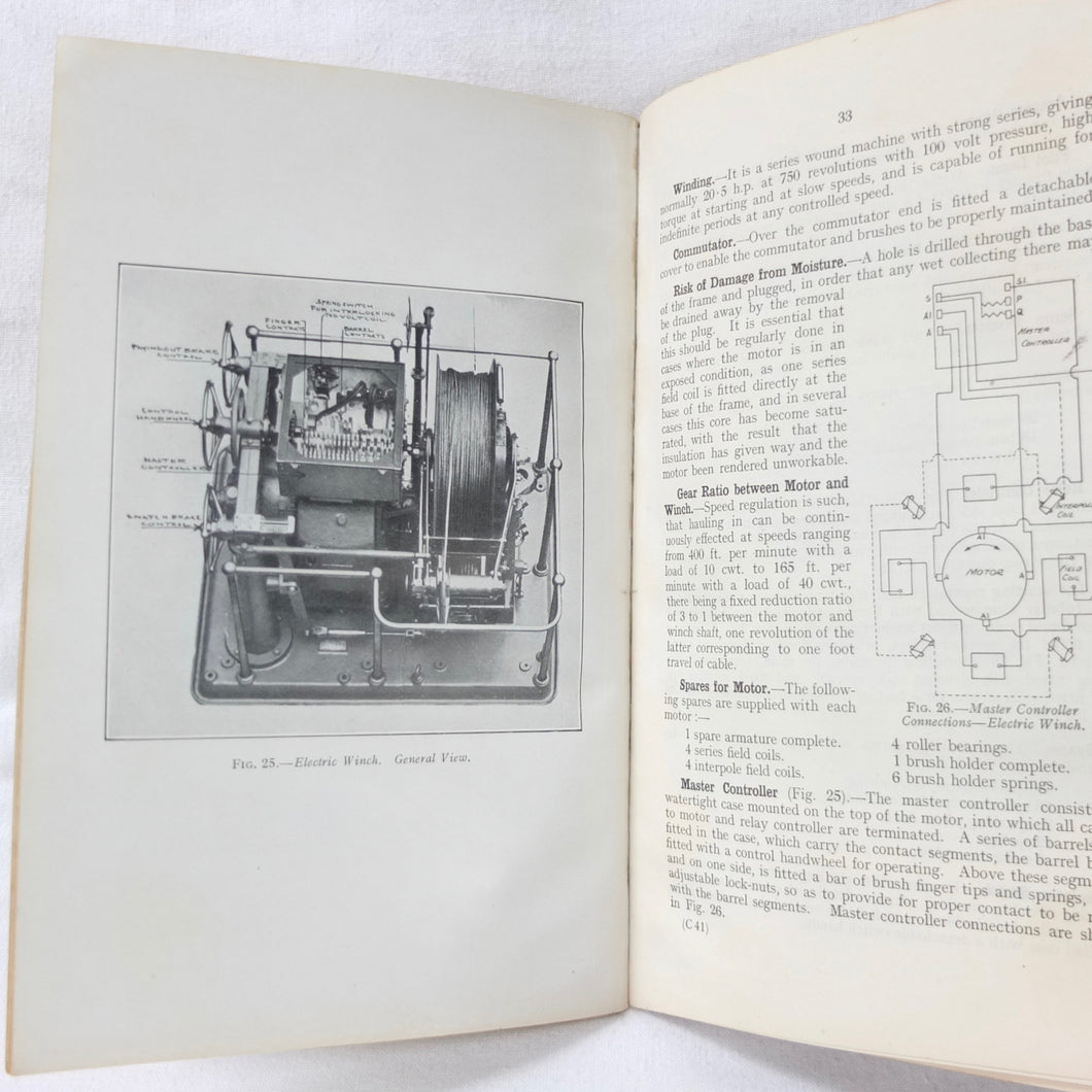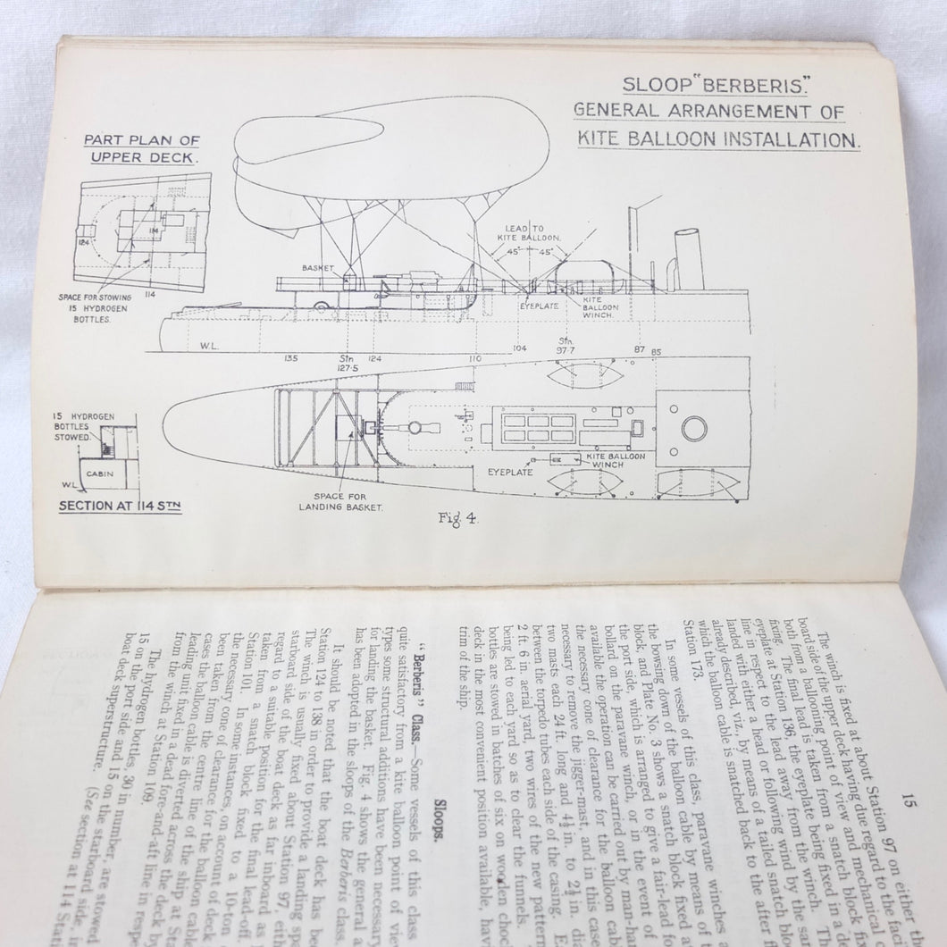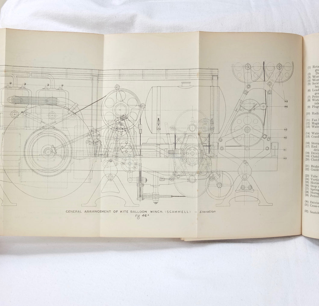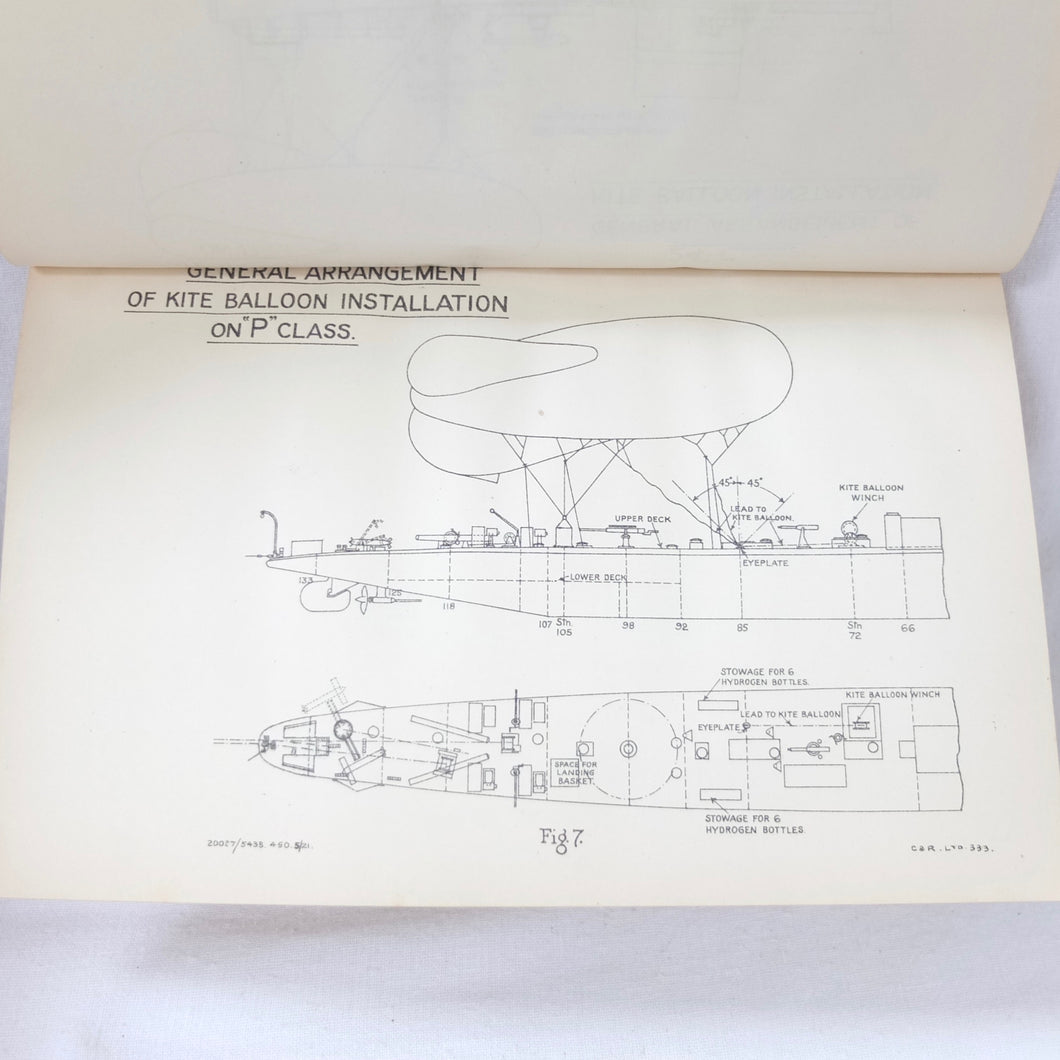 A very rare original WW1-era Air Ministry Kite Balloon Winch Manual, covering the various different winches and associated equipment used by the RAF at the end of WW1. The manual covers the use and maintenance of RAF winches, for both land based and naval operations. Subjects covered include: the history of naval and military kite balloons, kite balloon installation in H. M. Ships, hydraulic wincjes, winding units, standard steam engines, transferring winch, electric winch, gears, wire-leading units, snatch blocks, instruments, Royal Air Force Balloon winches: Scammell and Caquot types. The book is well illustrated with 48 photographs and diagrams of RAF kite balloons, winches and engines. There is an ink stamp of 'No. 901 Squadron, A.A.F., Kidbrooke' on the front cover