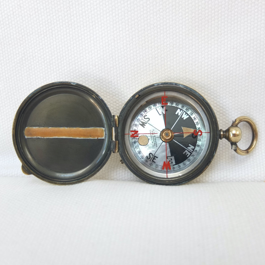 In very good condition and full working order. The compass finds North well and the transit lock is working, locking the card when the lid is closed. The compass card and glass are in very good condition. The brass case is in very good condition, with some minor signs of wear.