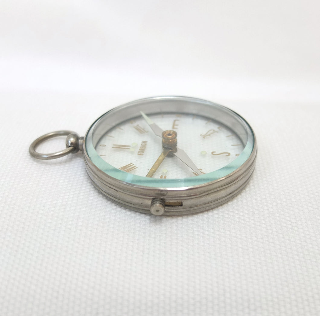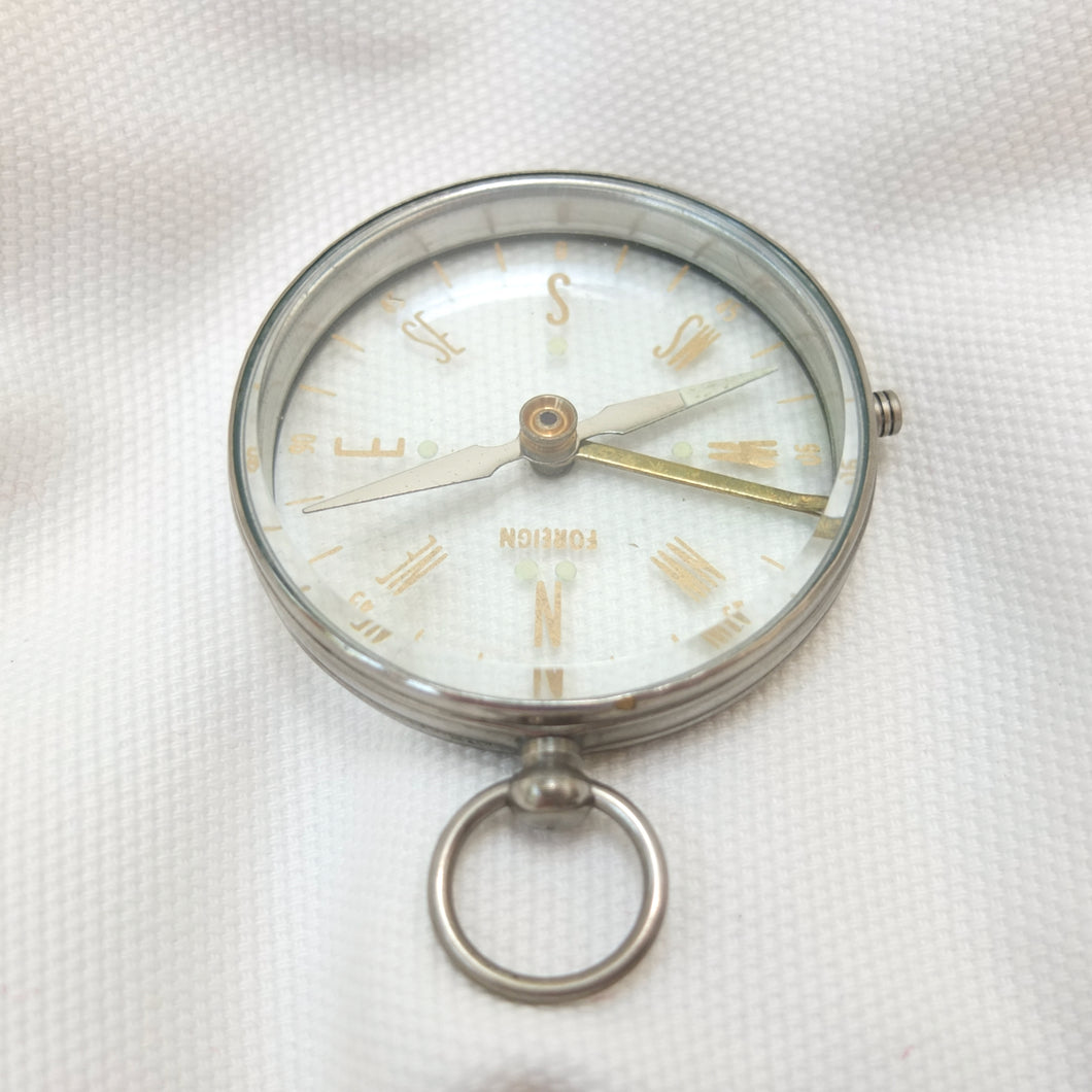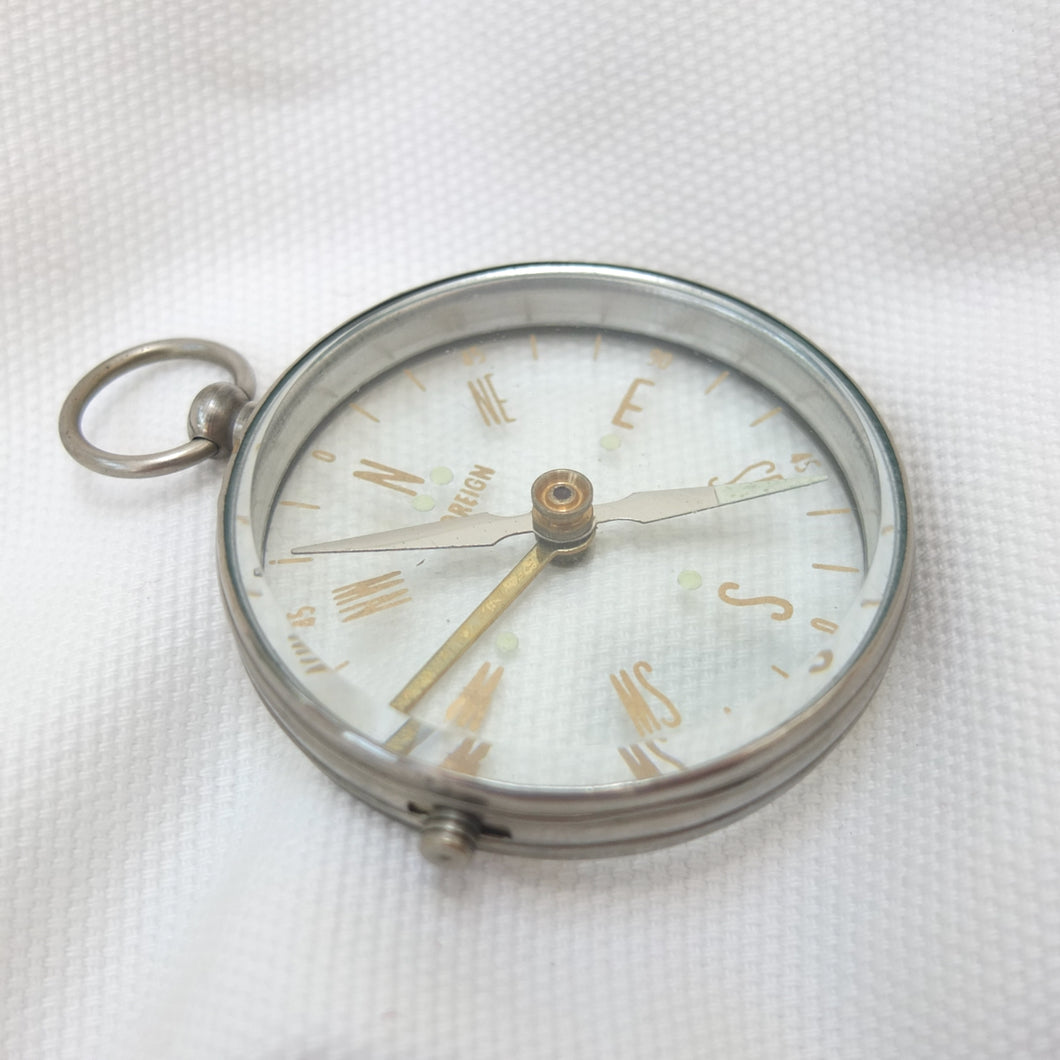 A vintage Japanese transparent compass, dating from the mid 20th century. Although there are no maker's marks, this compass is identical to one that featured in Mitsui & Co. Ltd, Tokyo, catalogues in the early 1960s. Mitsui and other Japanese manufacturers produced large numbers of pocket compasses for export in the 1950s and 1960s. These were often simply marked 'Foreign', on the dial or compass card.