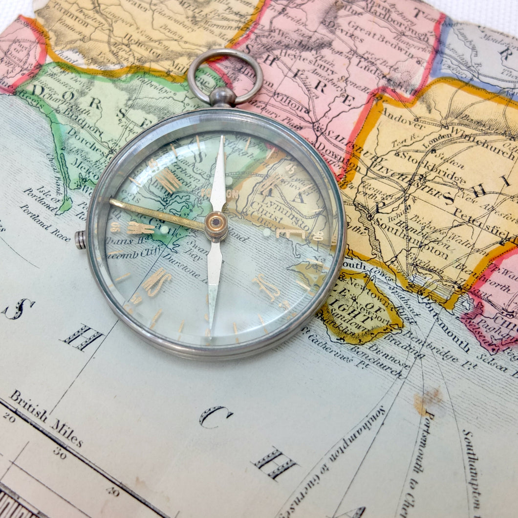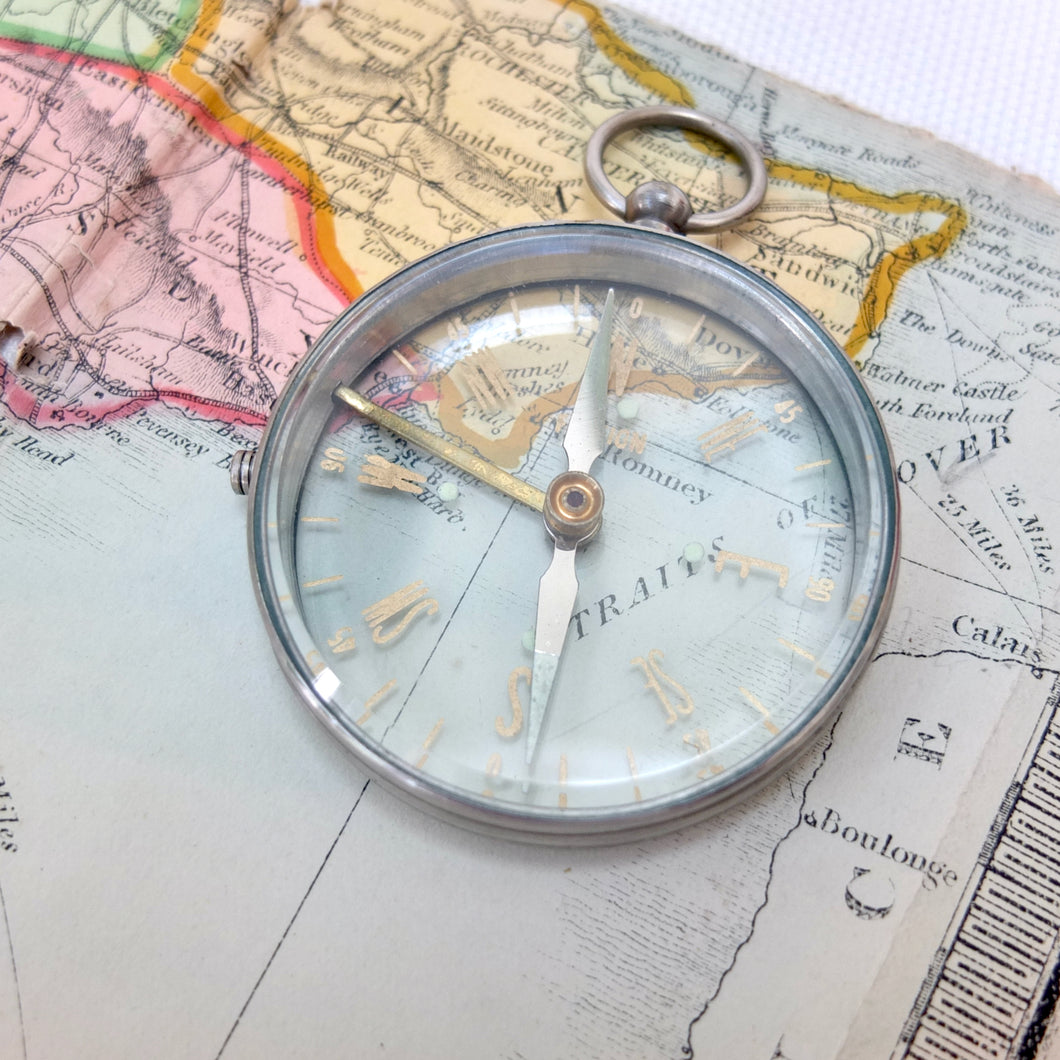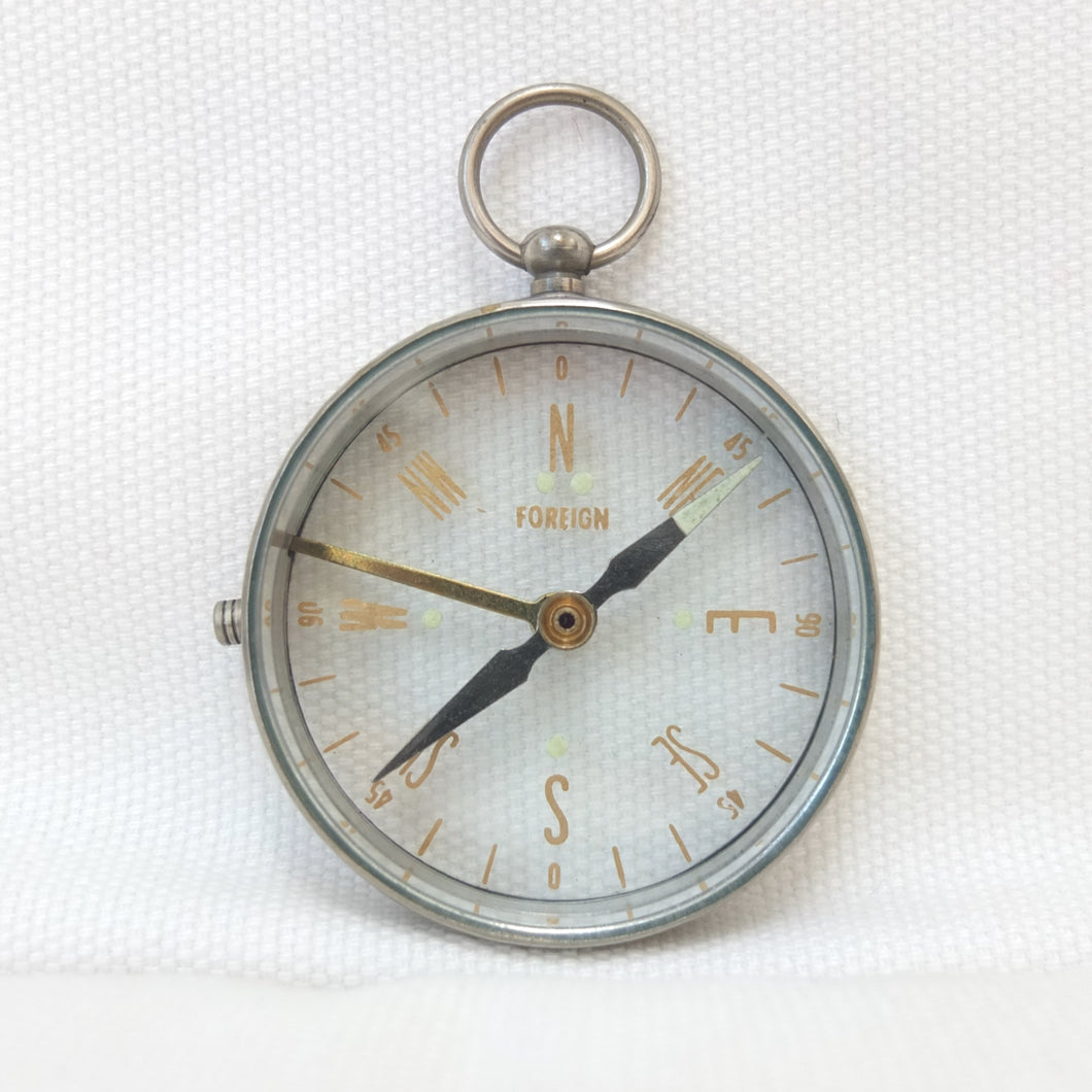 A vintage Japanese transparent compass, dating from the mid 20th century. Although there are no maker's marks, this compass is identical to one that featured in Mitsui & Co. Ltd, Tokyo, catalogues in the early 1960s. Mitsui and other Japanese manufacturers produced large numbers of pocket compasses for export in the 1950s and 1960s. These were often simply marked 'Foreign', on the dial or compass card.